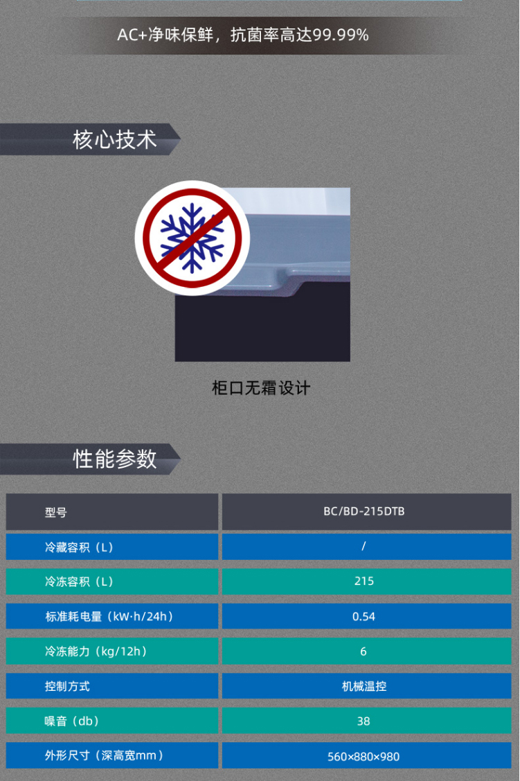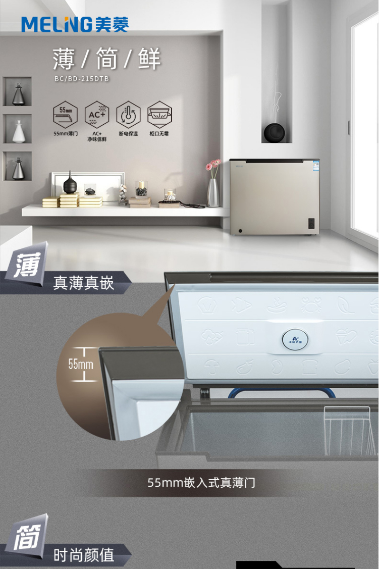 美菱(MELING)215升家用冷藏冷冻转换冰柜 节能单温母乳冷柜小冰箱BC/BD-215DTB
