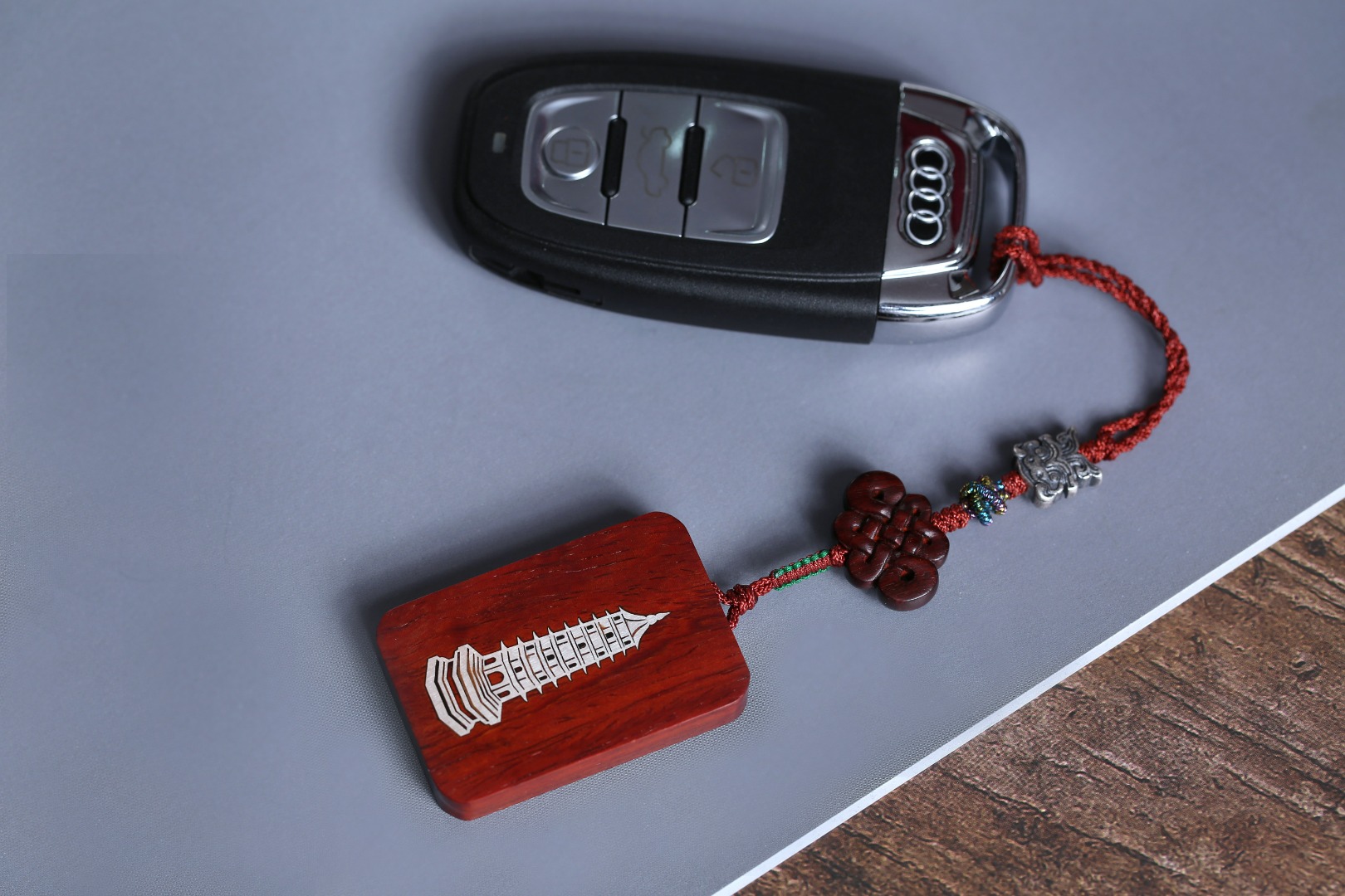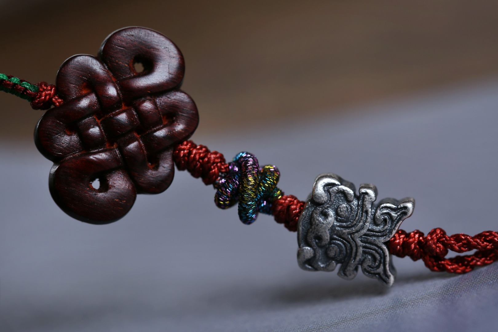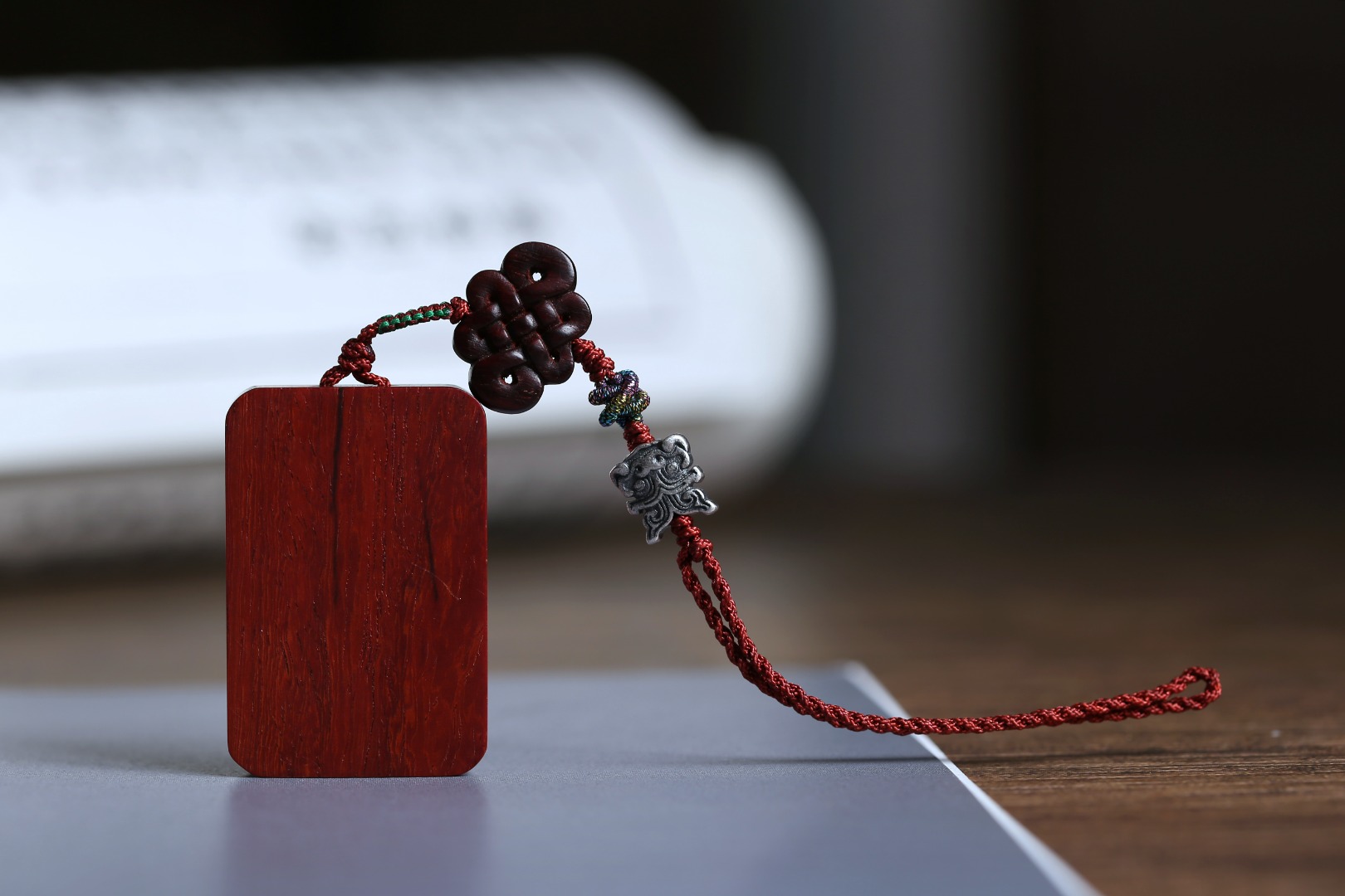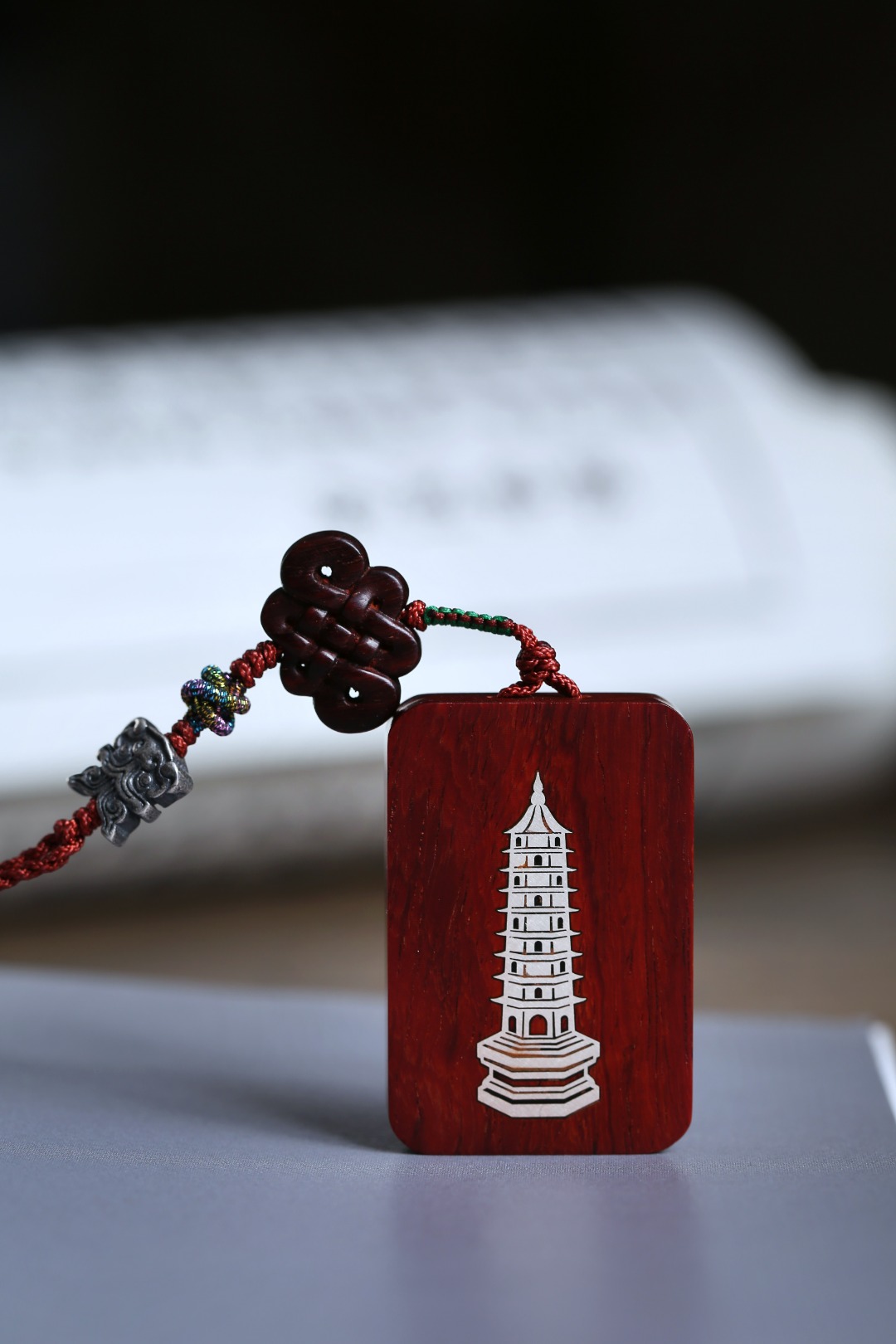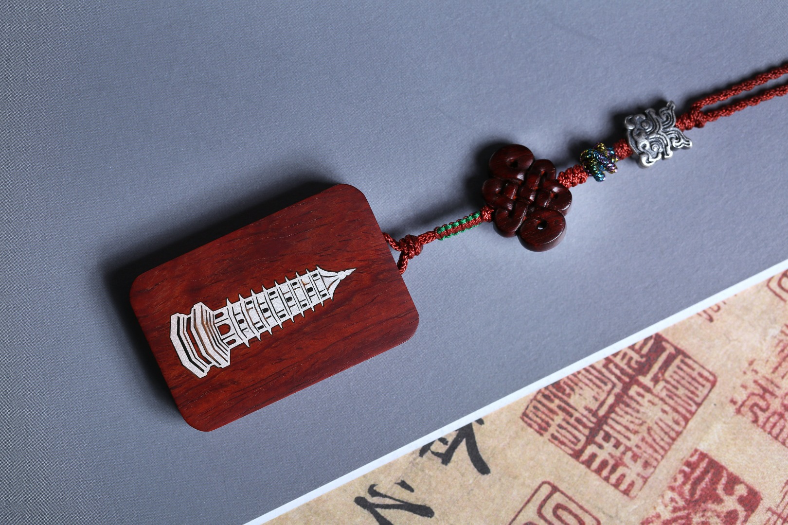 紫檀镶银“文昌塔”/紫檀中国结(小)/复古925银醒狮头