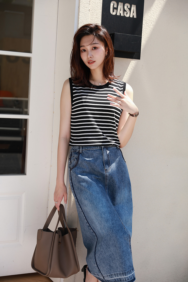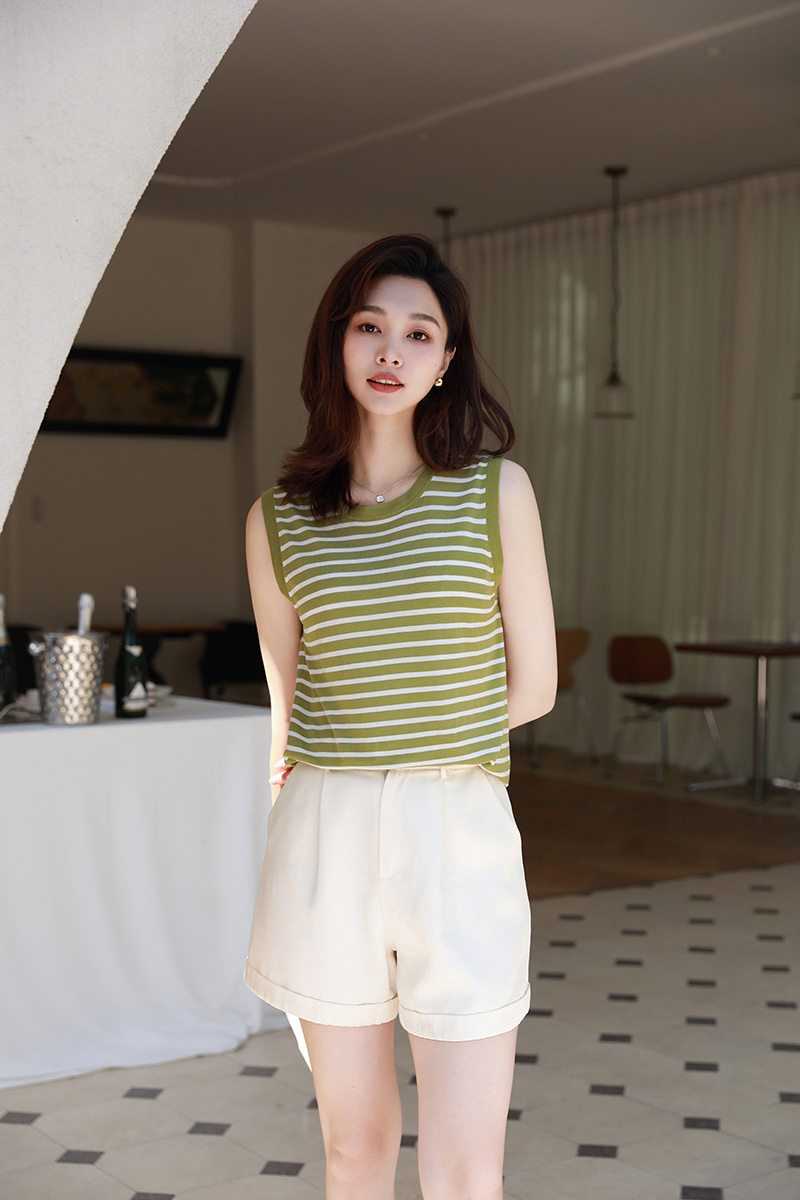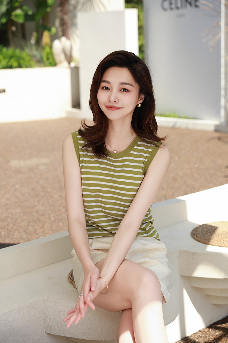 火桐hooton撞色条纹无袖背心