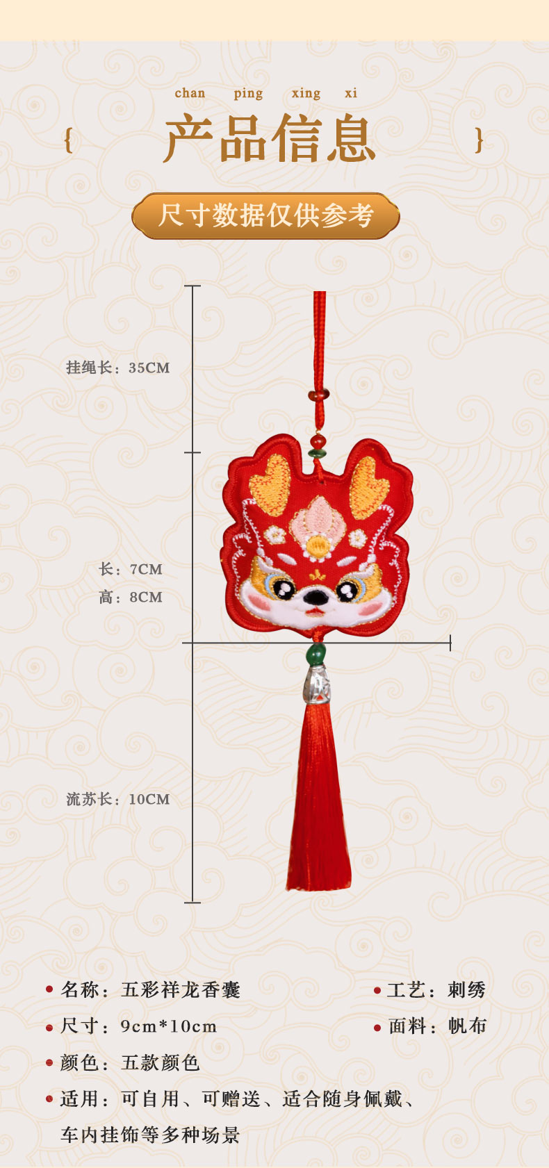 坤宁和堂五彩祥龙香囊单个