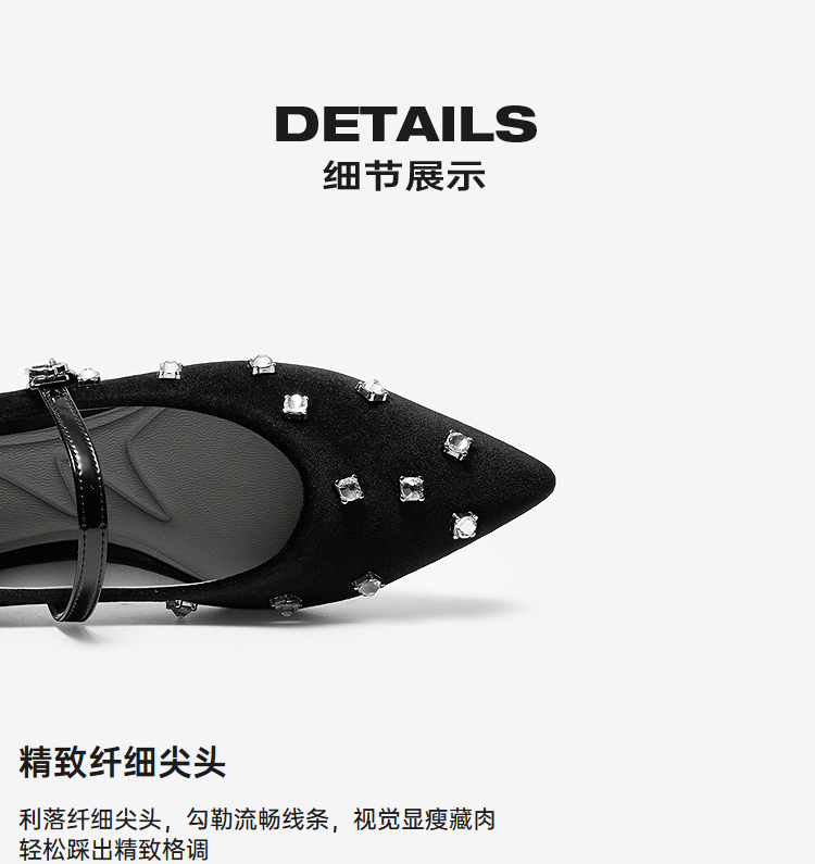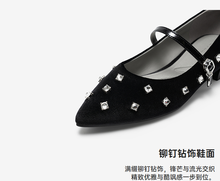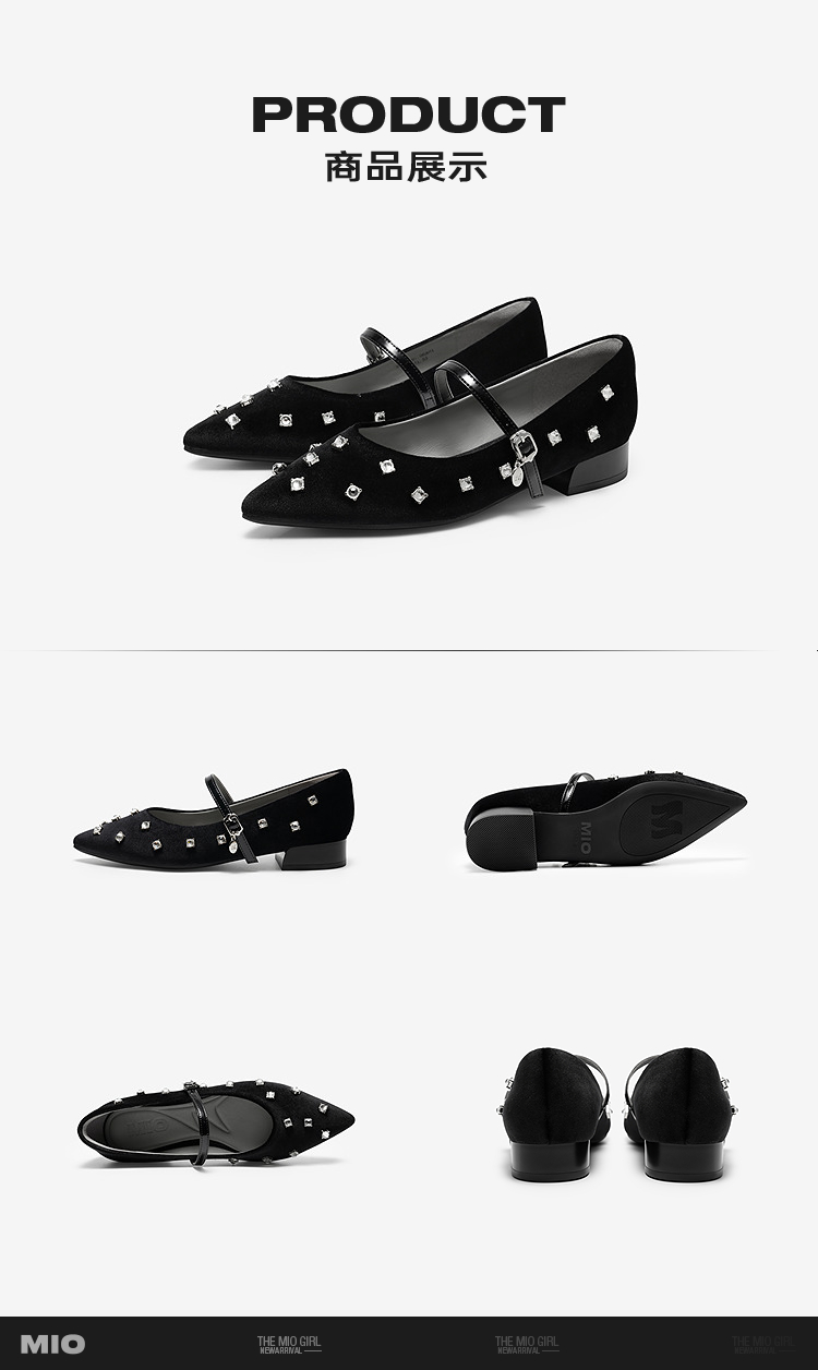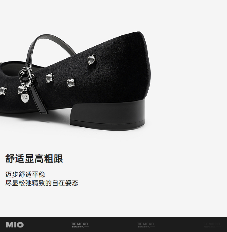 【cf】MIO米奥2026春季新款尖头低跟一字式扣带浅口单鞋水钻玛丽珍女鞋M261460106