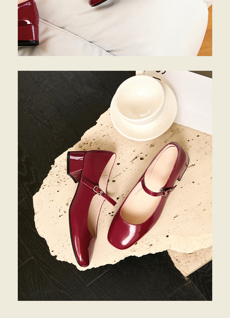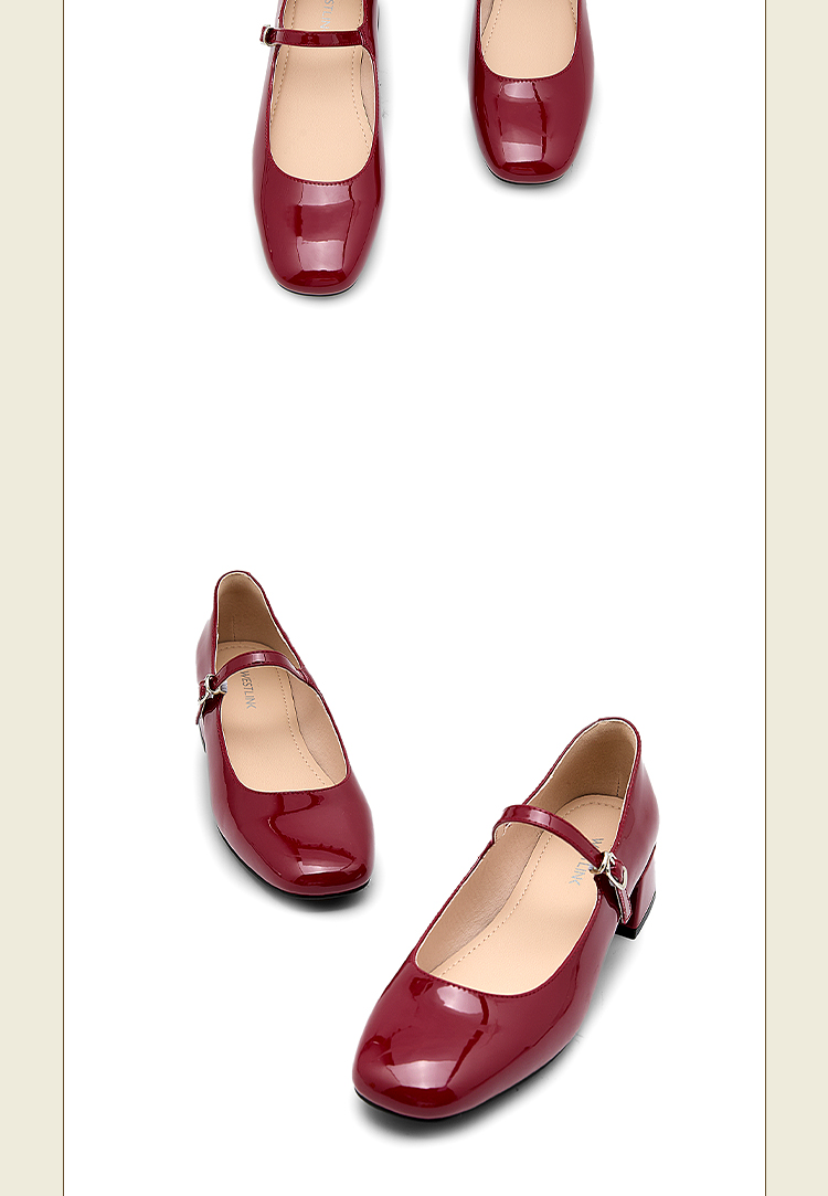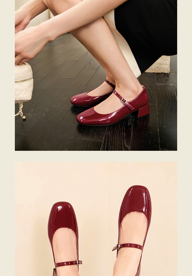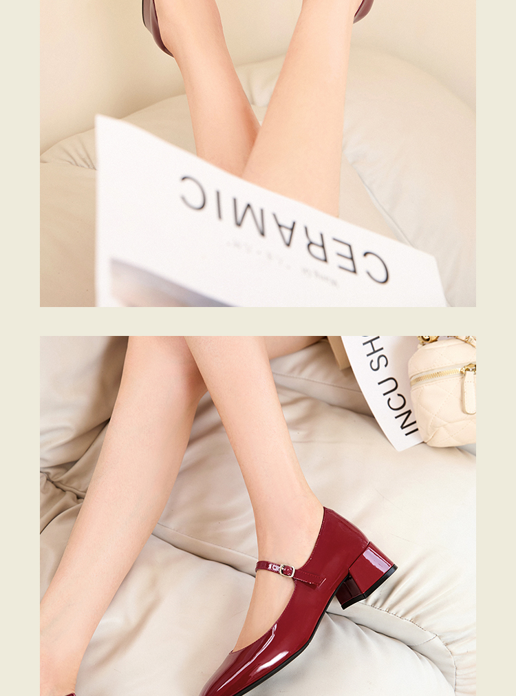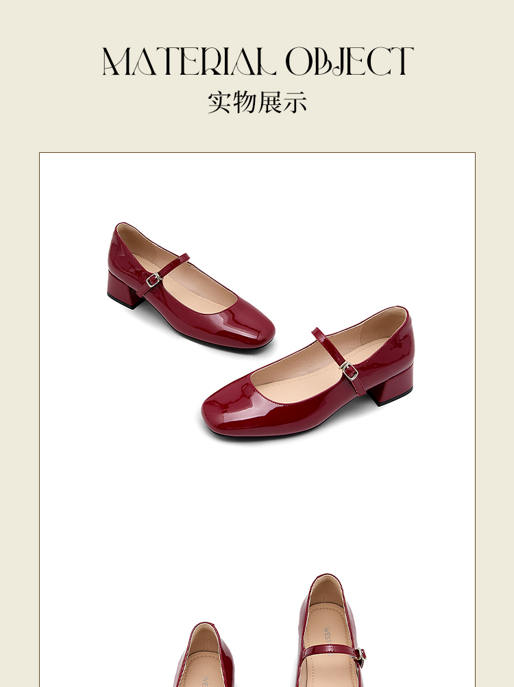 西遇法式玛丽珍鞋女新款早春百搭方头一字带中跟粗跟银色单鞋V2547246