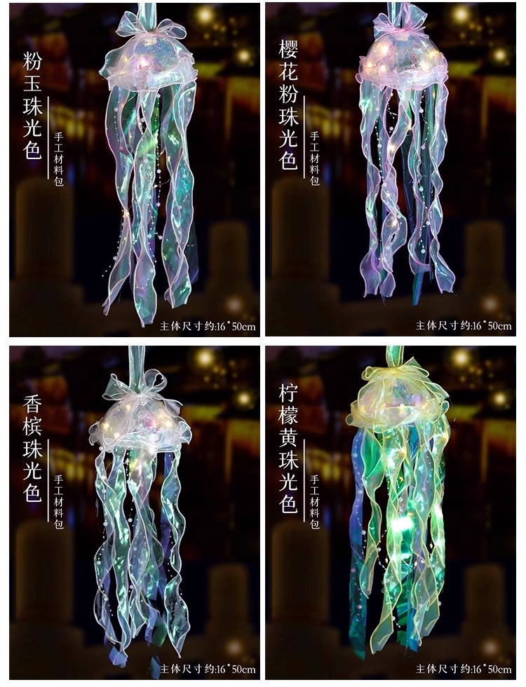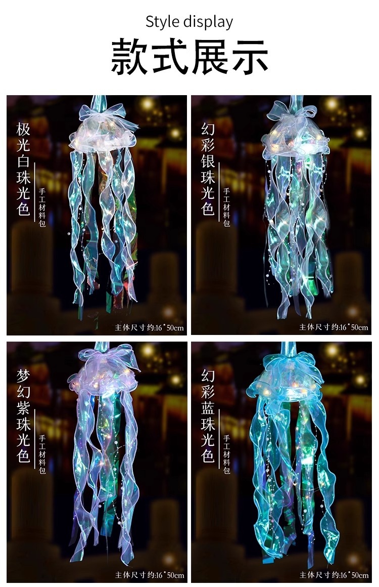 【中秋国庆新款夜间炫彩发光水母灯 水母DIY材料包】 🌙仙气满满的夜间炫彩水母灯✨手提一盏,点亮孩子的梦幻童年💡