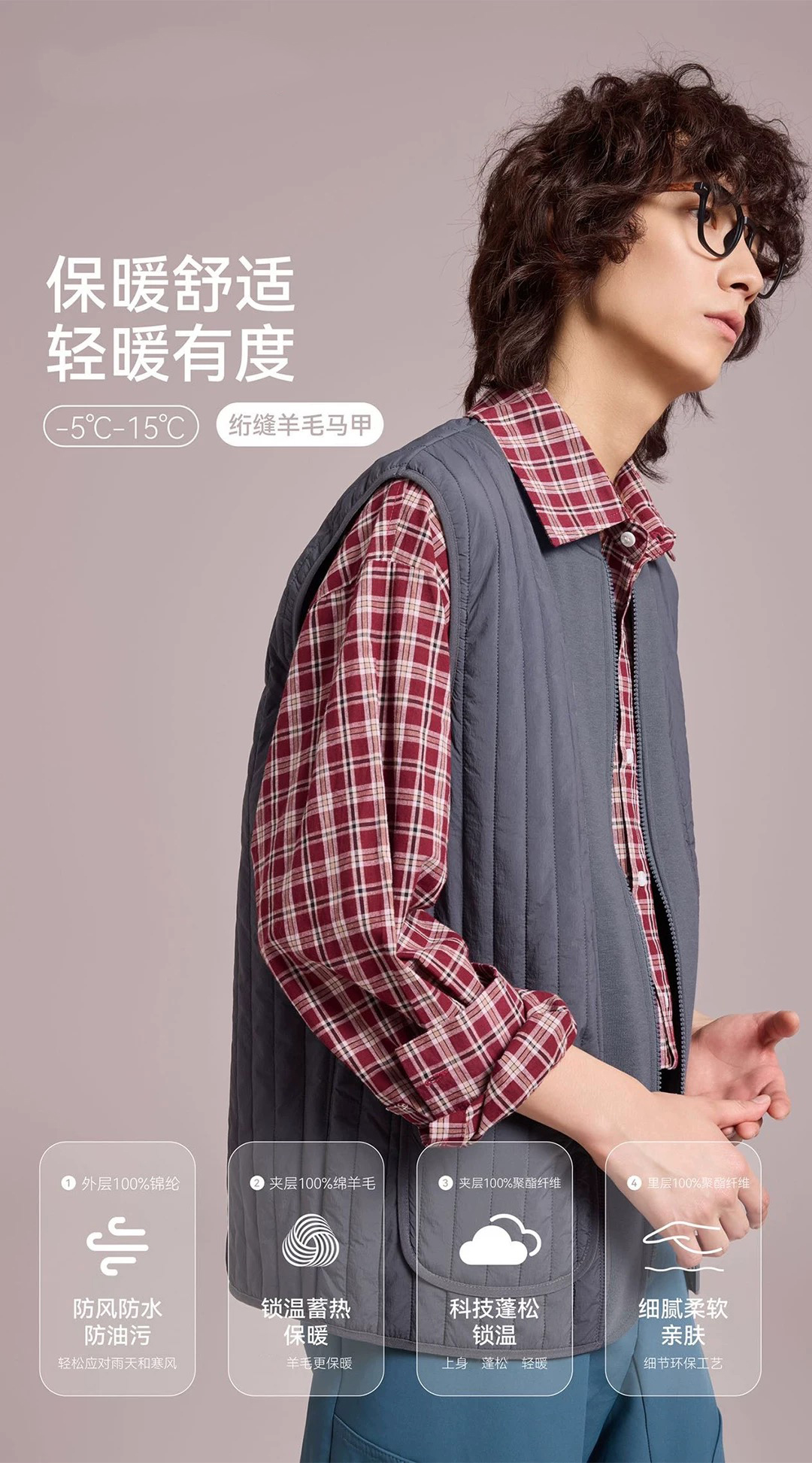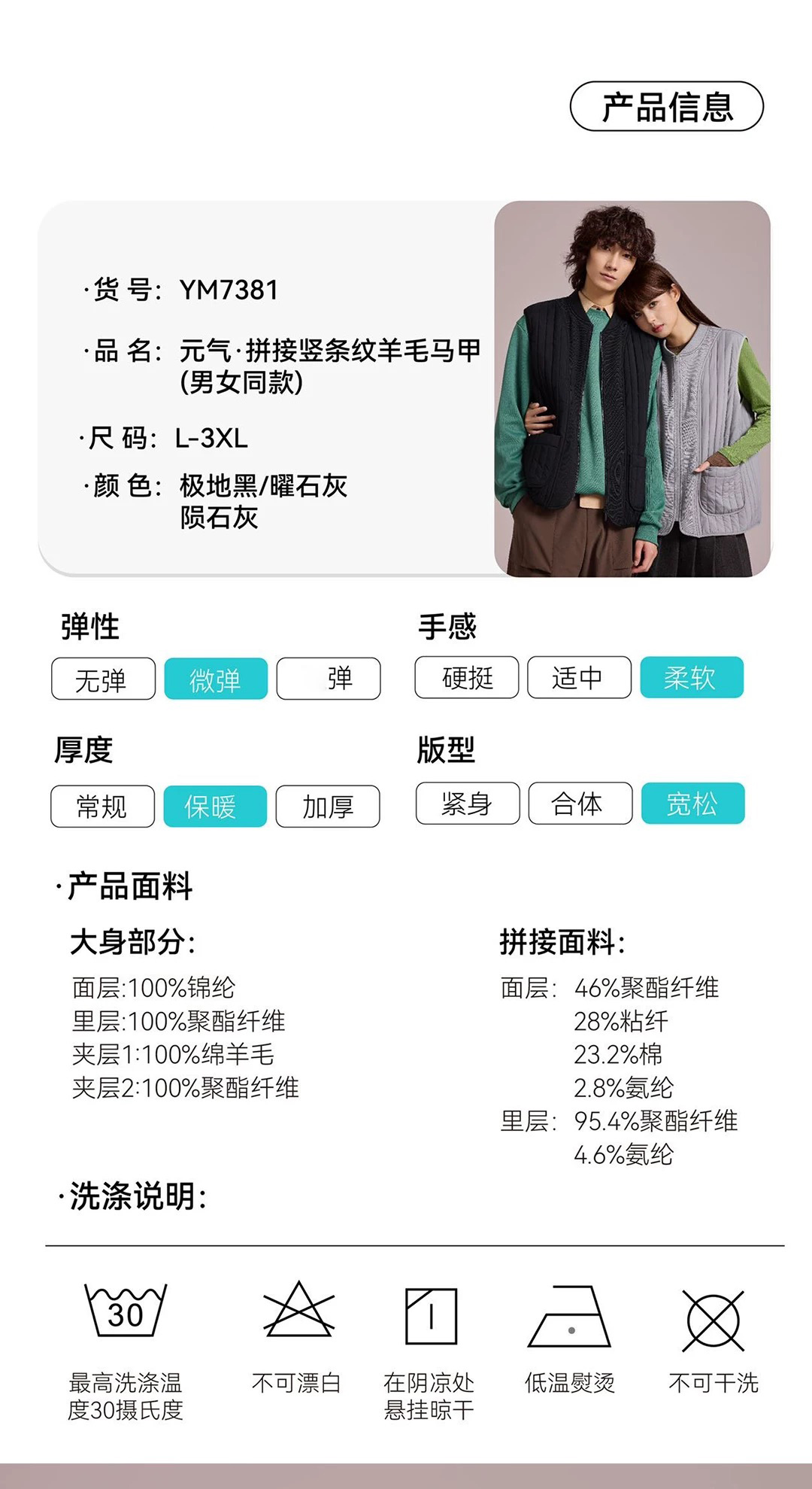 男士竖条纹拼接羊毛马甲冬季男背心【YM7381】