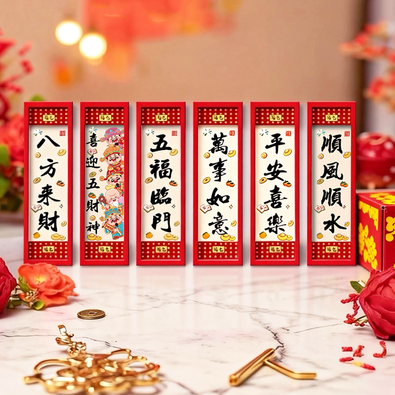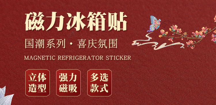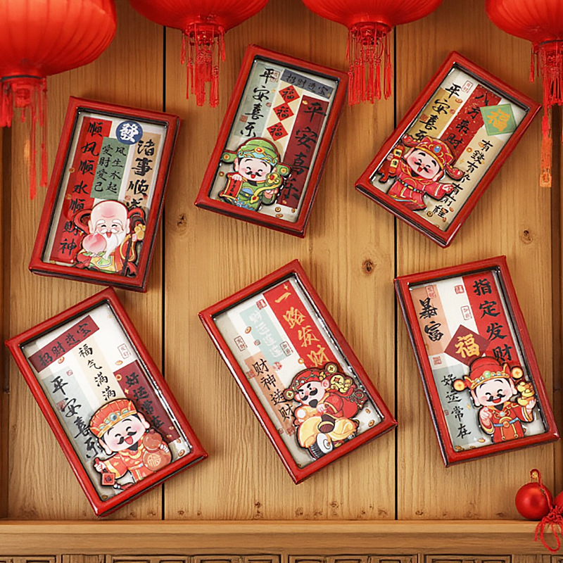 「几十款可选!磁性冰箱贴」2026马年创意五个财神冰箱贴卡通相框背面磁吸居家饰品福字喜庆寓意磁力贴