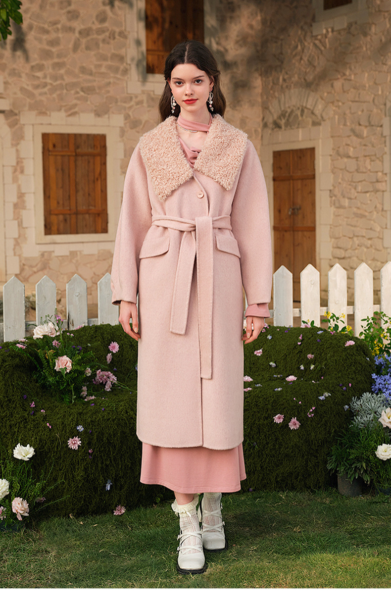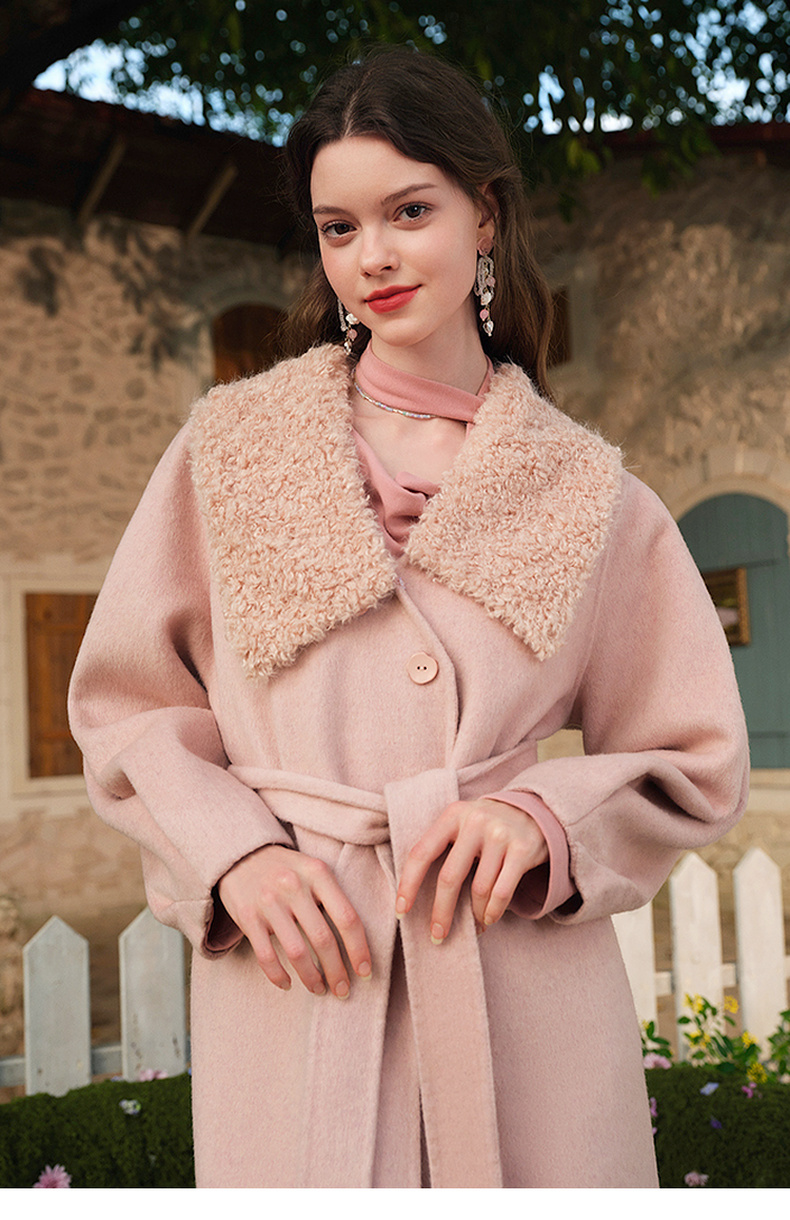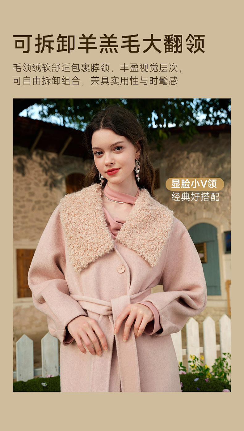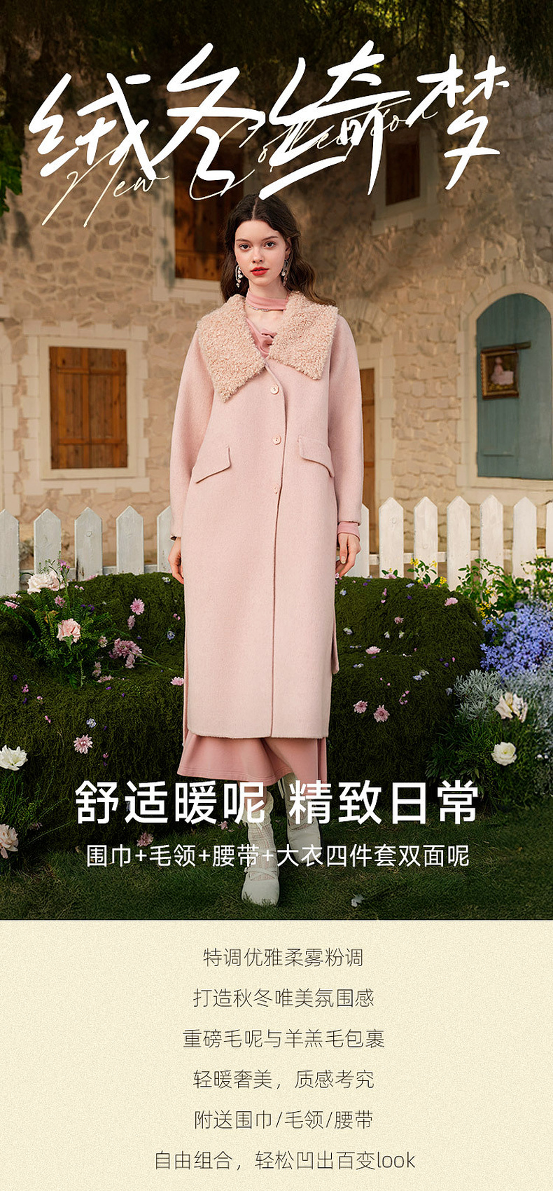 【暖冬内购】两三事 绒冬绮梦 2024冬季新款甜美羊羔毛领绑带毛呢外套女配围脖