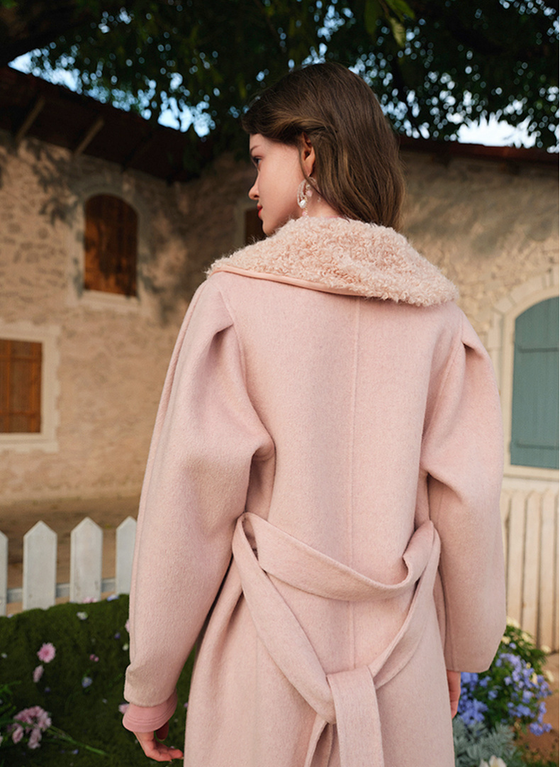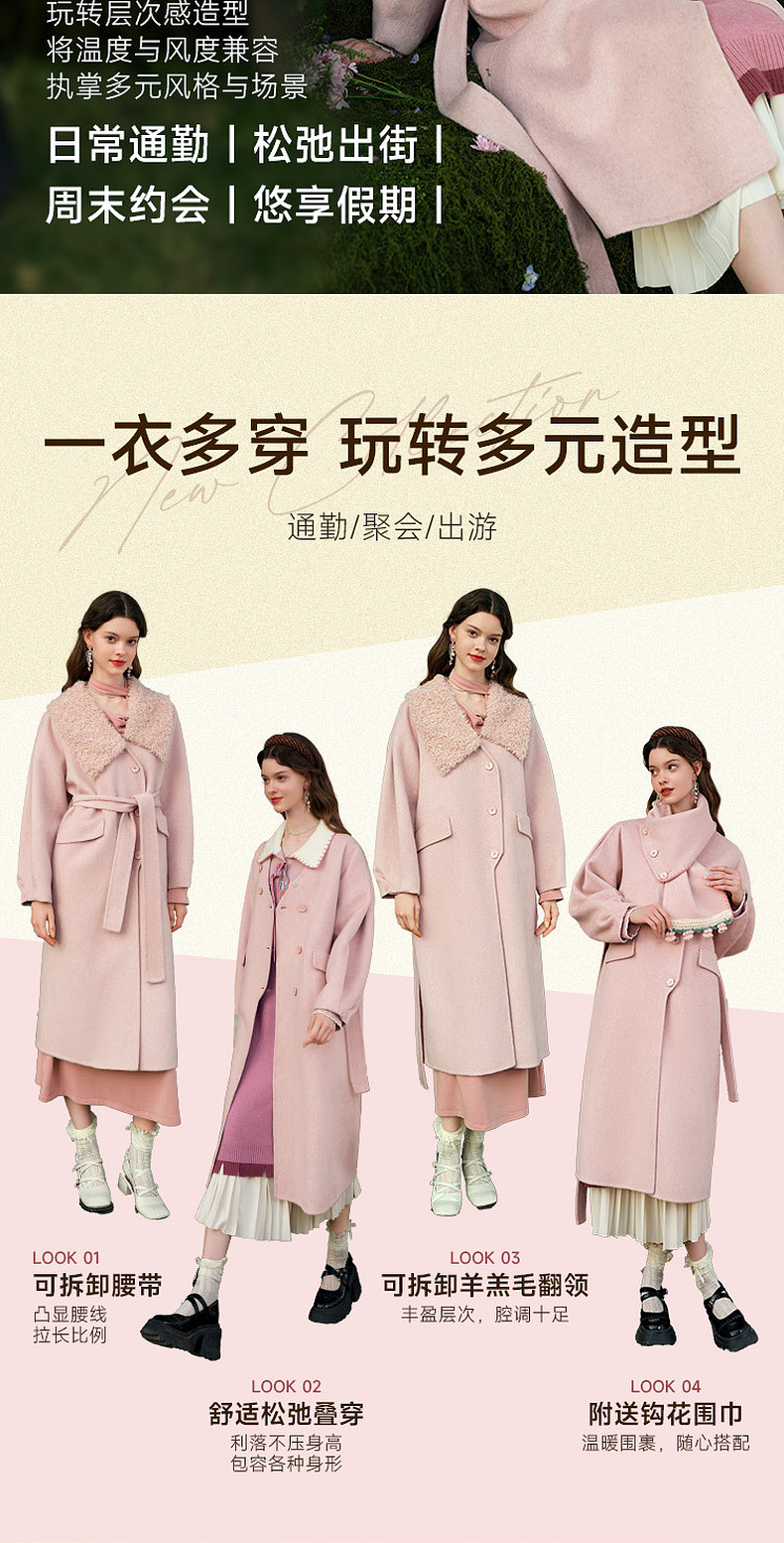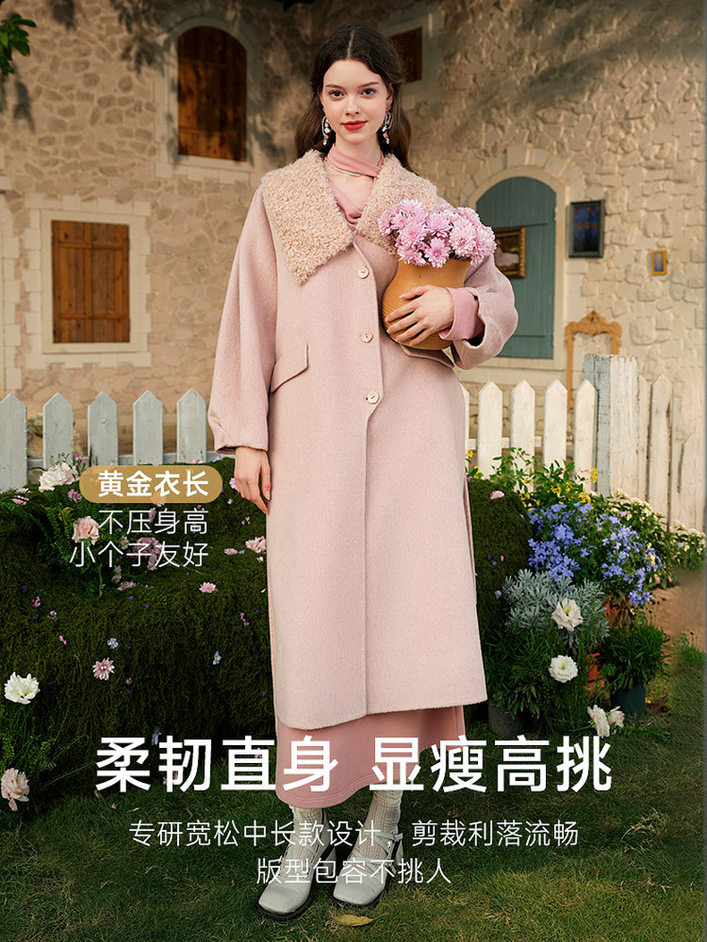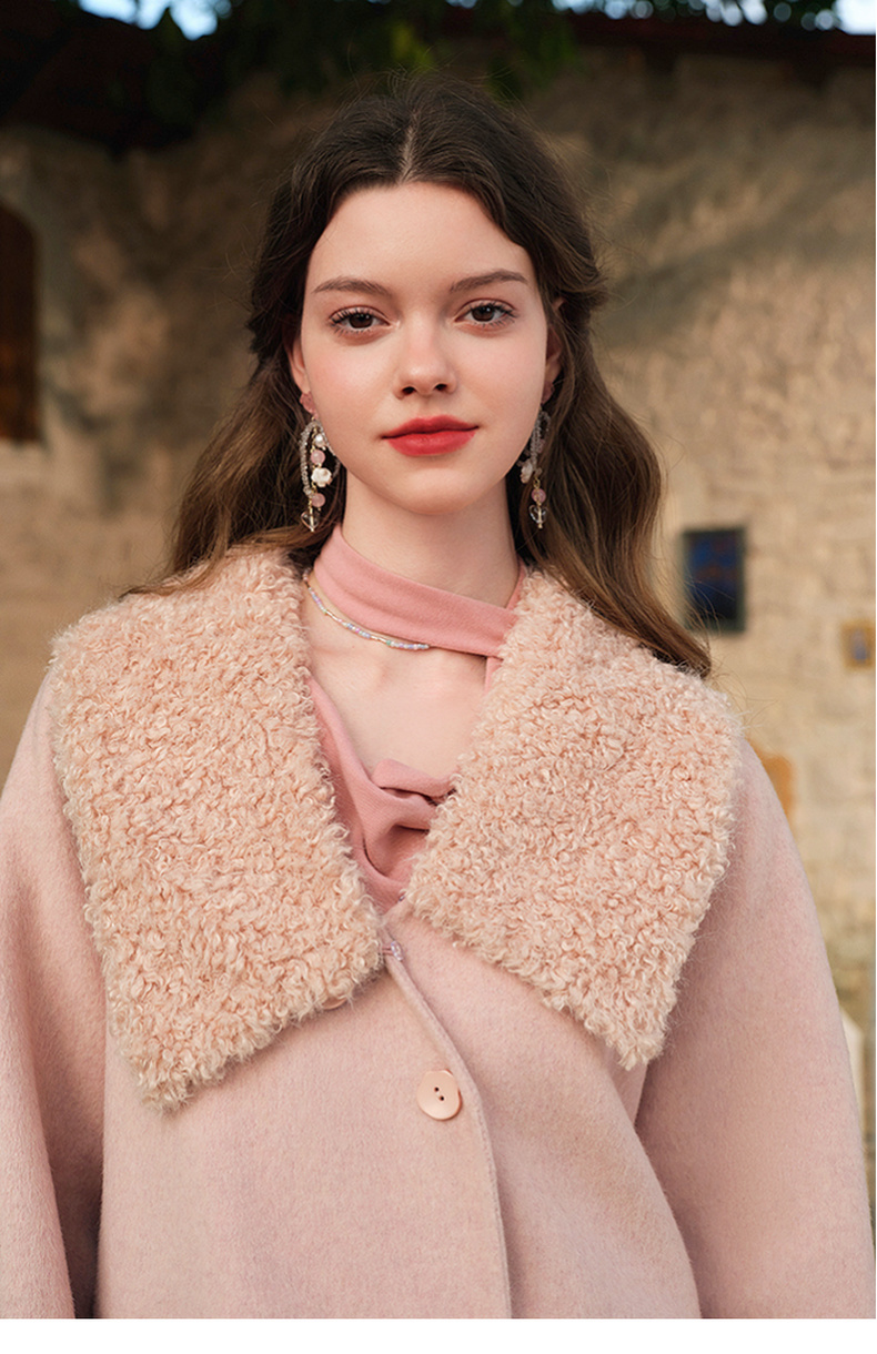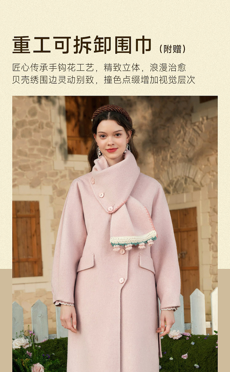 【暖冬内购】两三事 绒冬绮梦 2024冬季新款甜美羊羔毛领绑带毛呢外套女配围脖