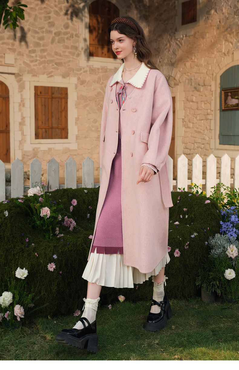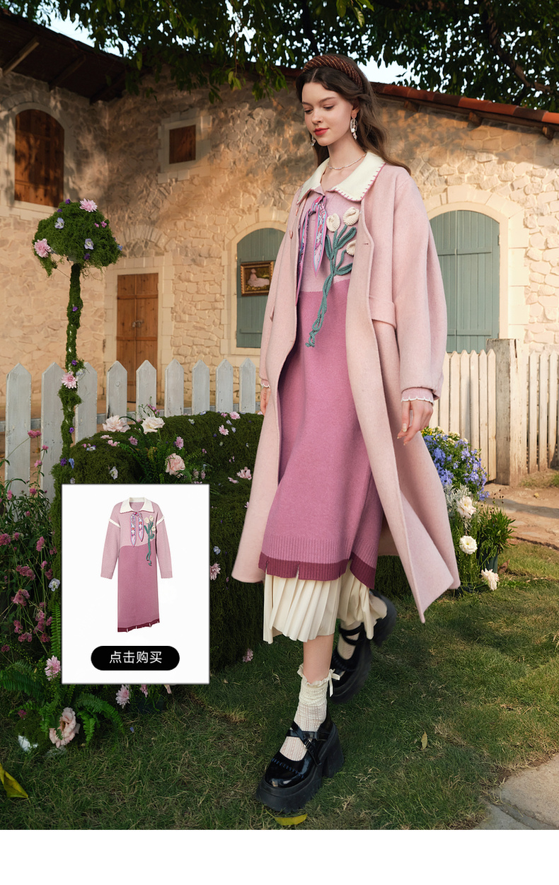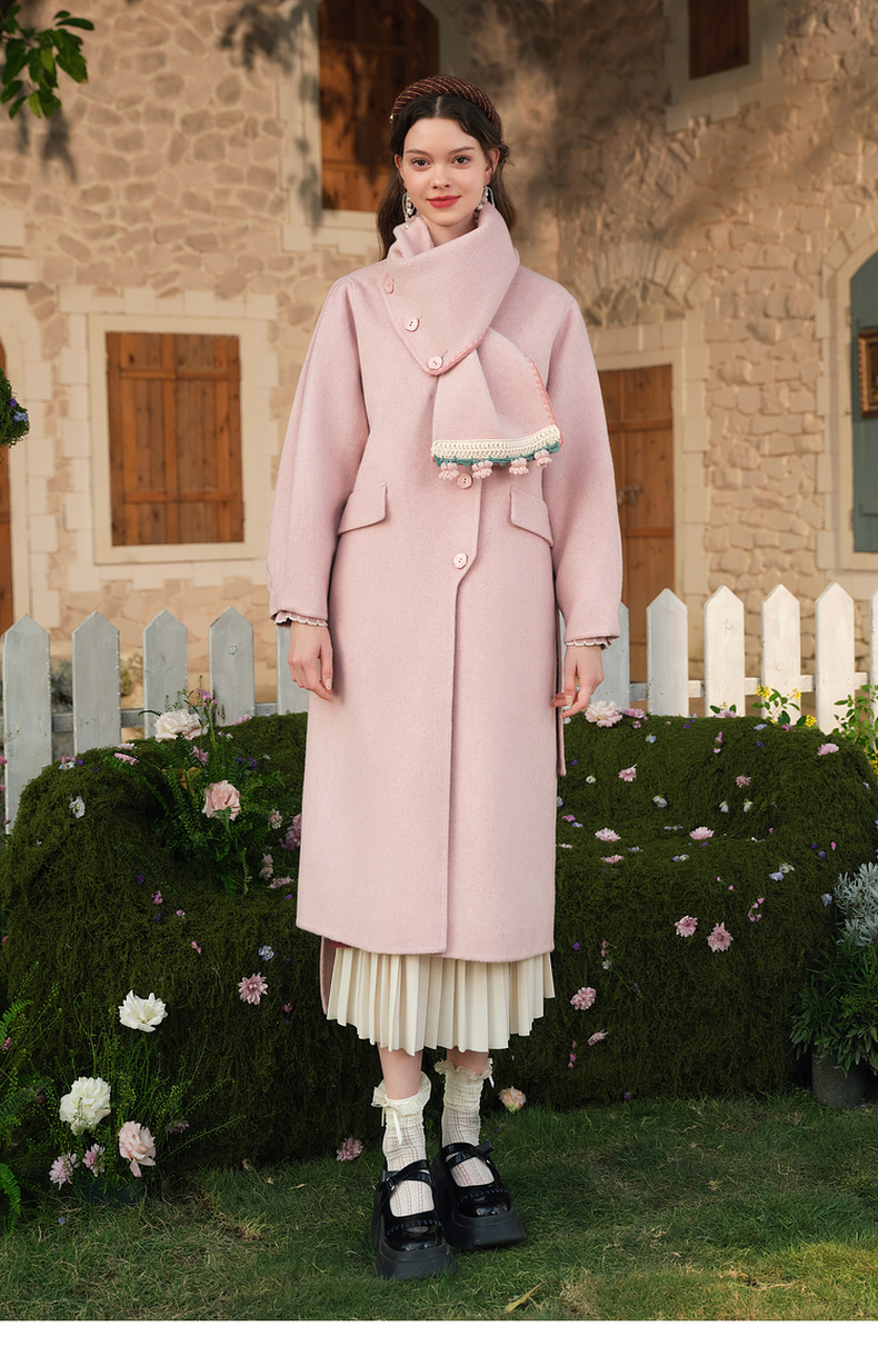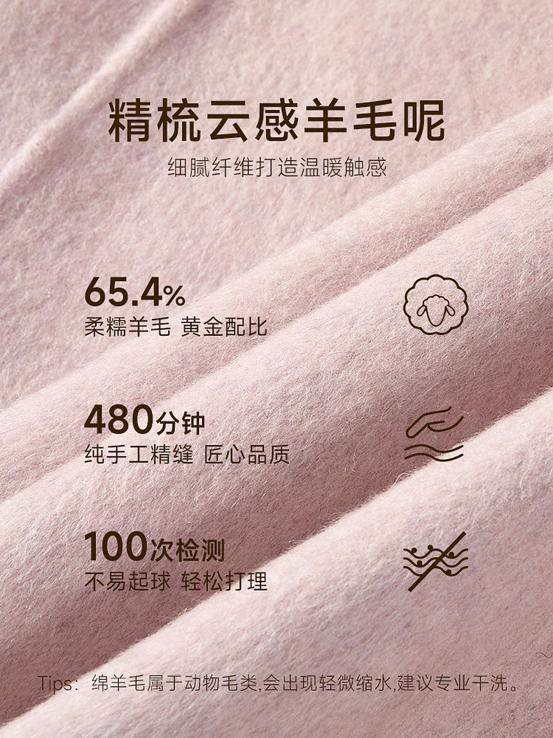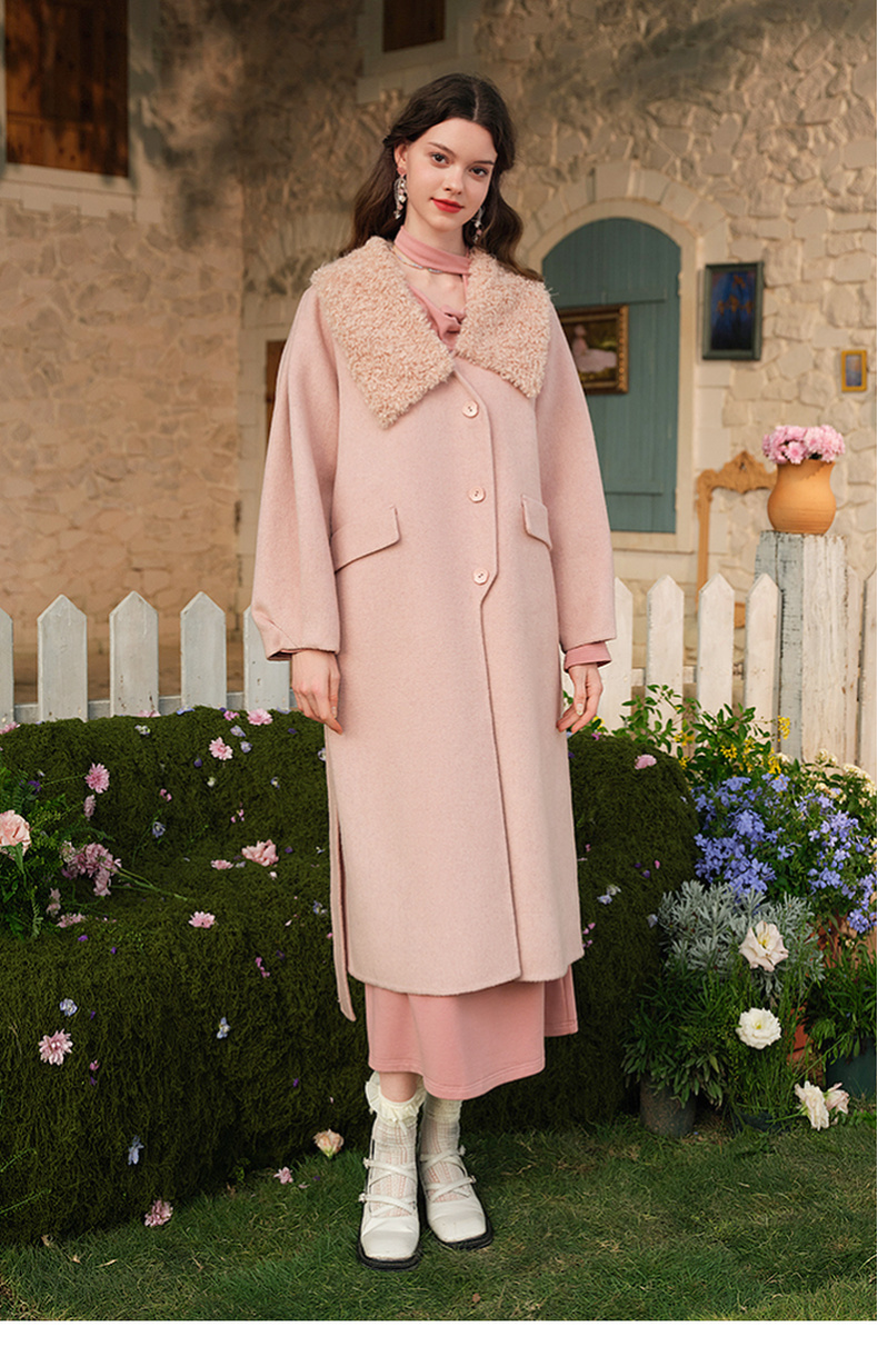 【暖冬内购】两三事 绒冬绮梦 2024冬季新款甜美羊羔毛领绑带毛呢外套女配围脖