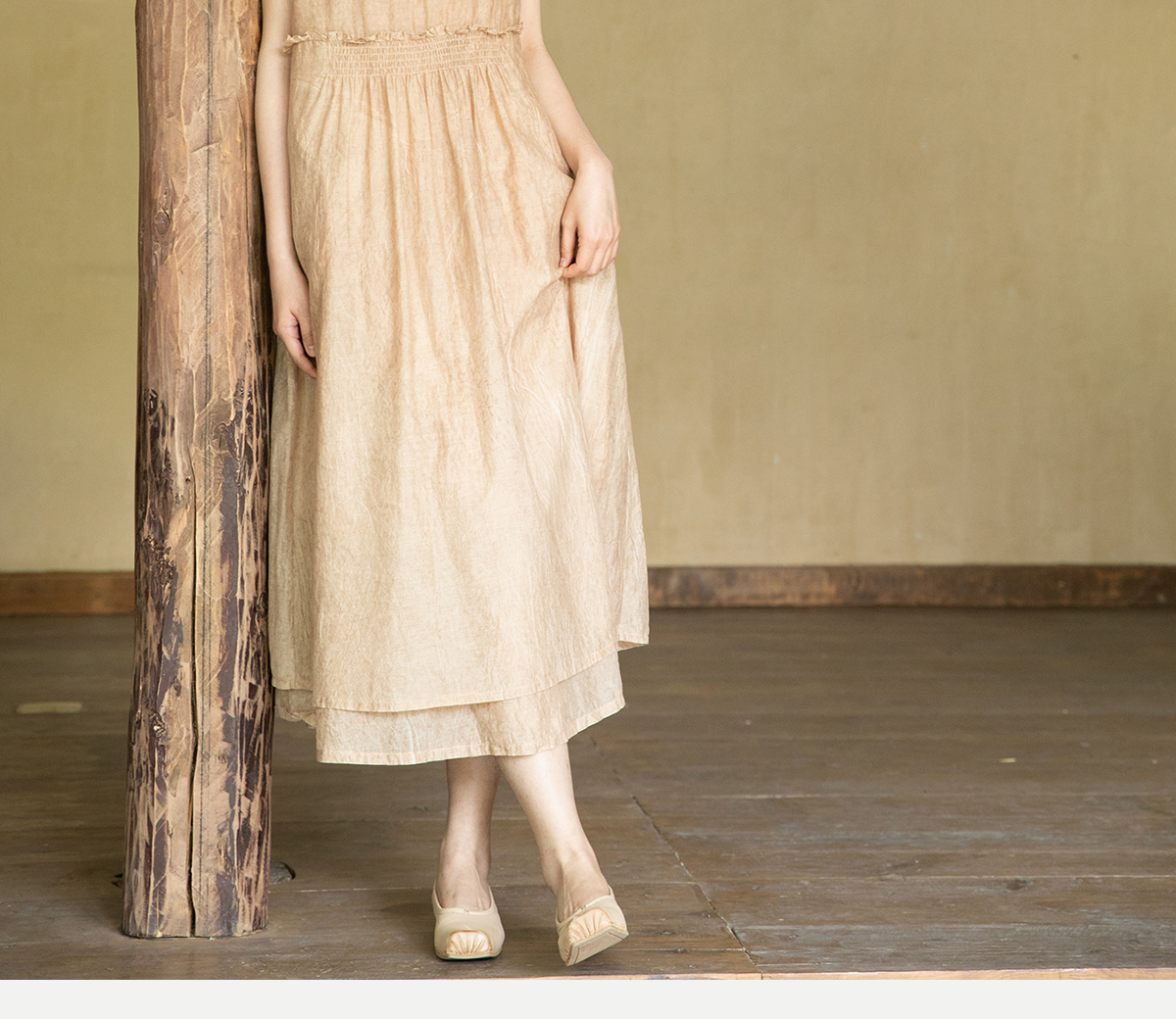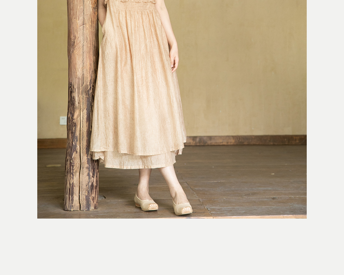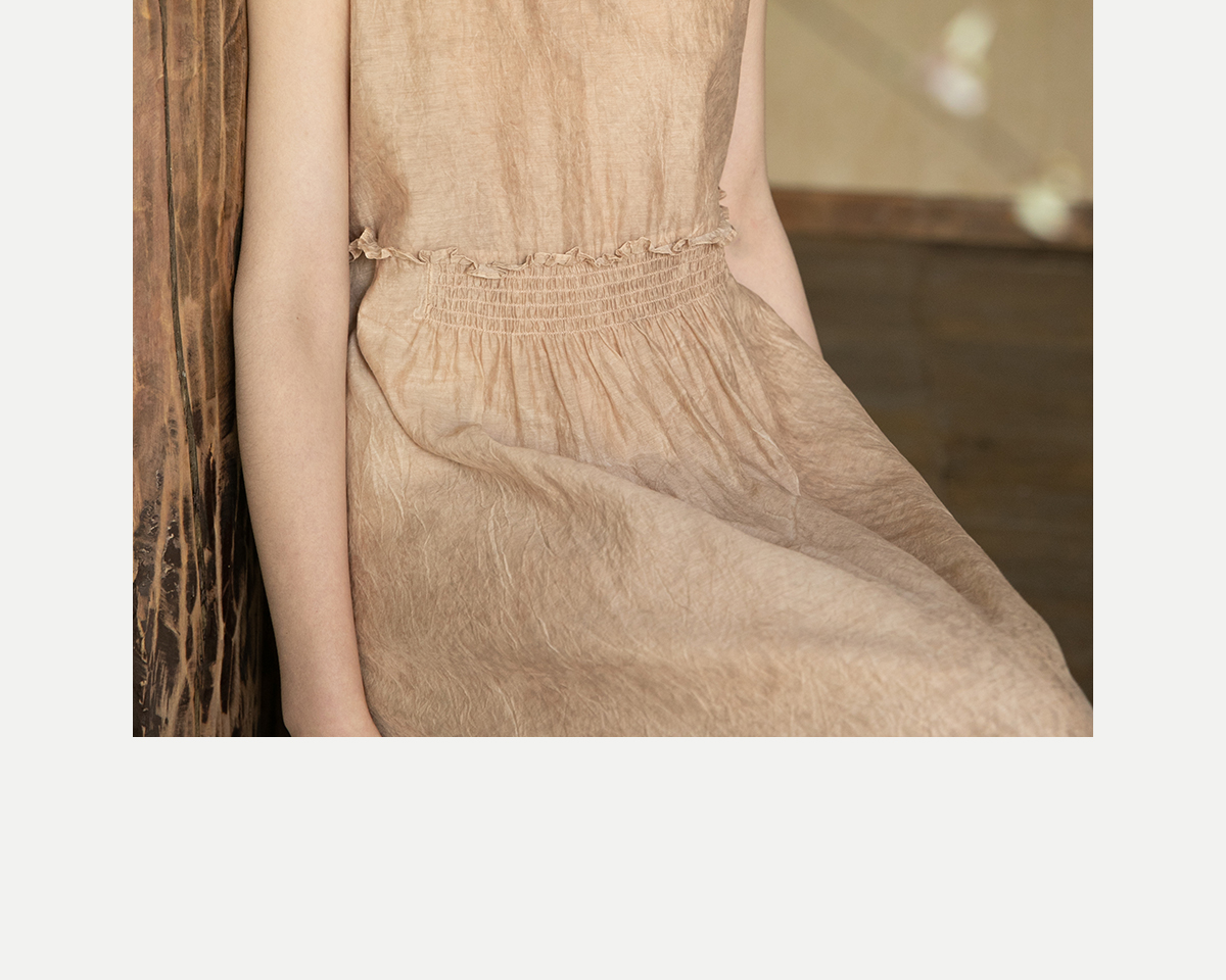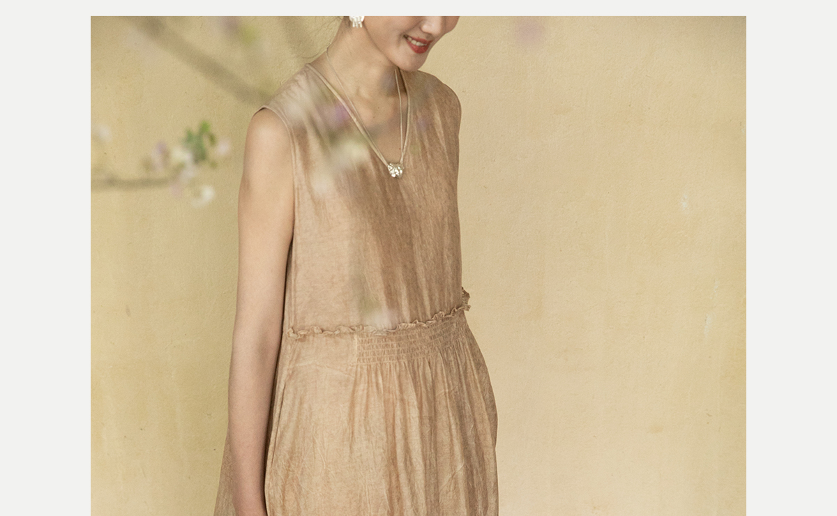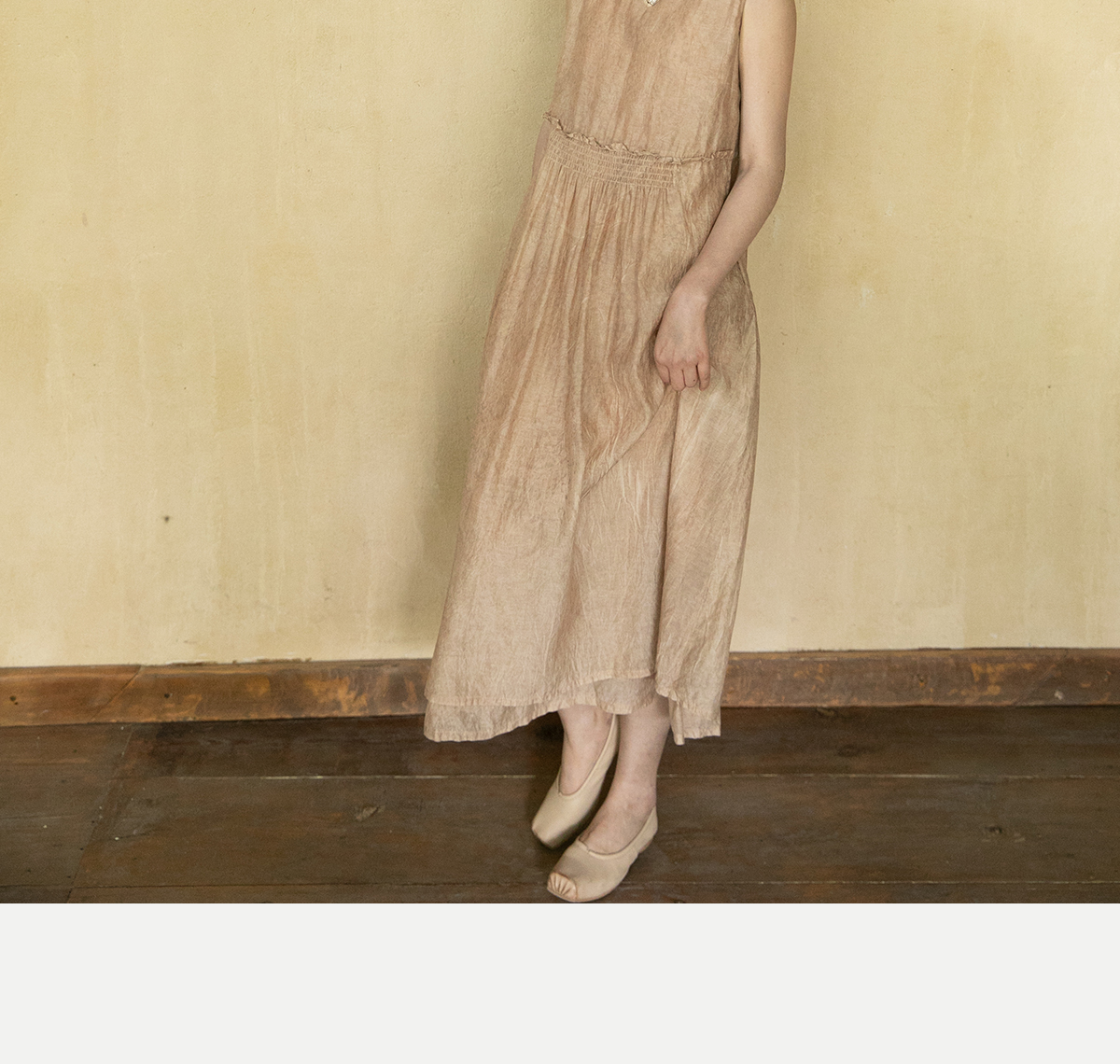 牧衣游原创 炒色丝棉无袖连衣裙女夏层次感显瘦气质宽松长裙 云净