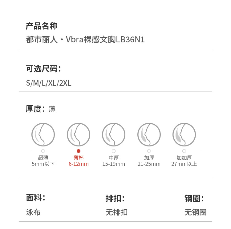 都市丽人Vbra泳布零感内衣薄款背心式无钢圈无排扣新年本命年红品LB36N1