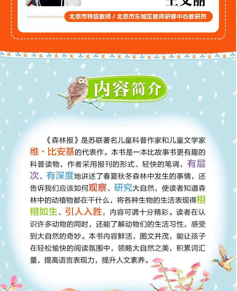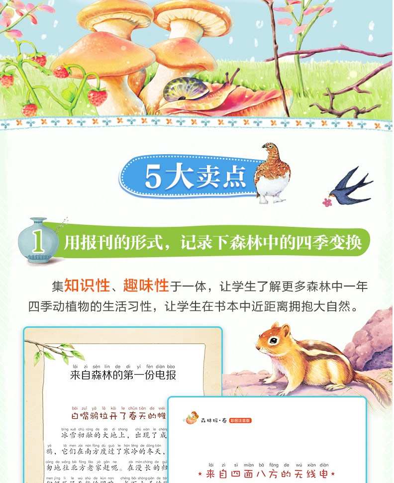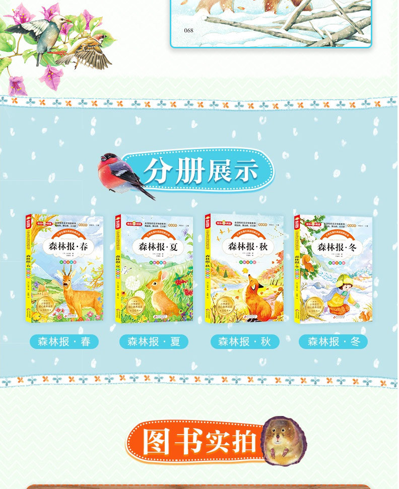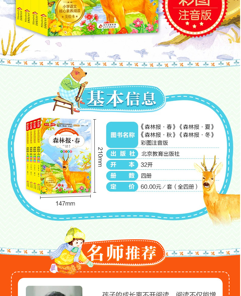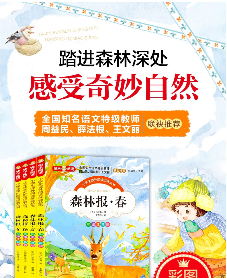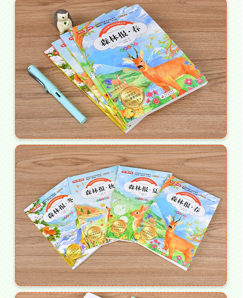 森林报春夏秋冬全四册彩图注音版故事绘本全集 小学生课外阅读书籍一二三四年级老师推荐必读经典书目儿童课外读物图书故事书 全套