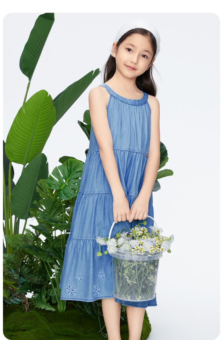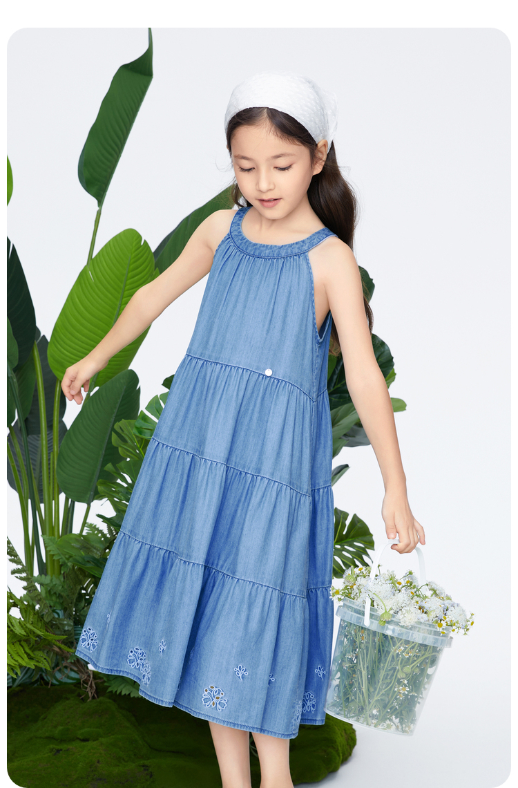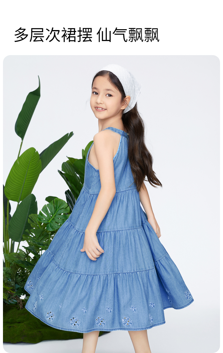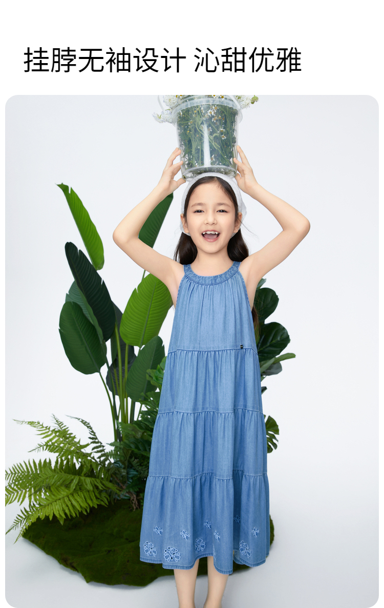 安奈儿女童天丝薄款牛仔无袖连衣裙 ag423812