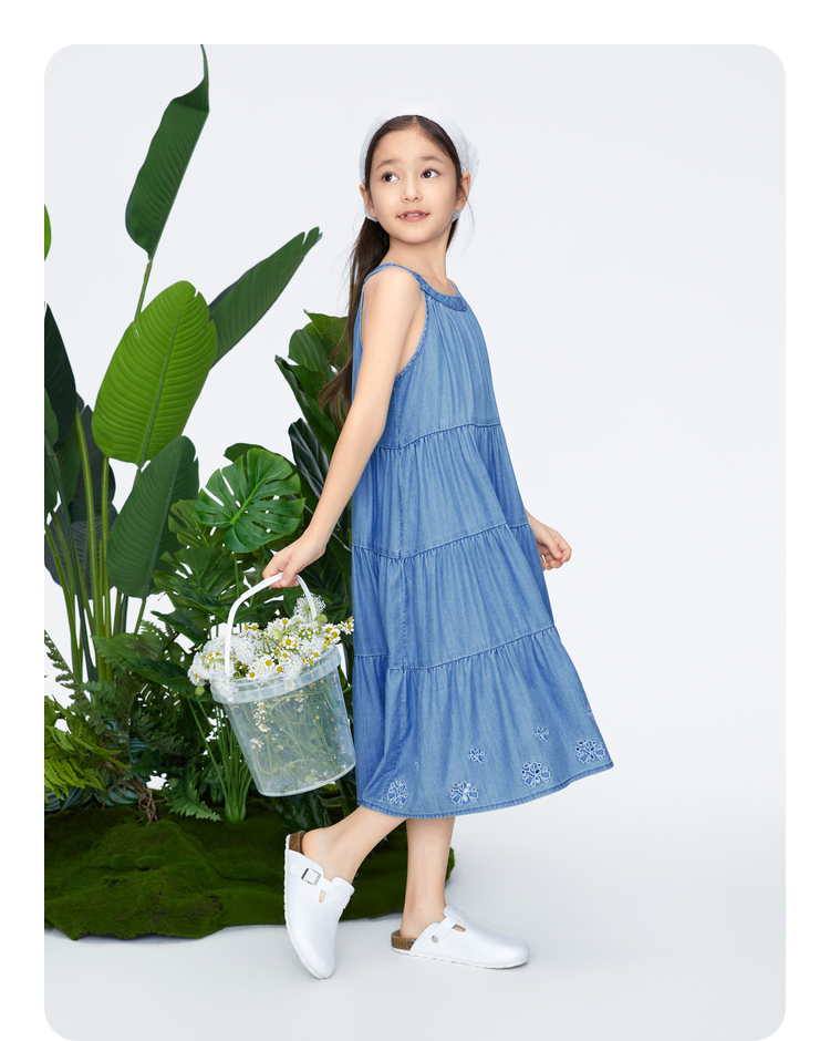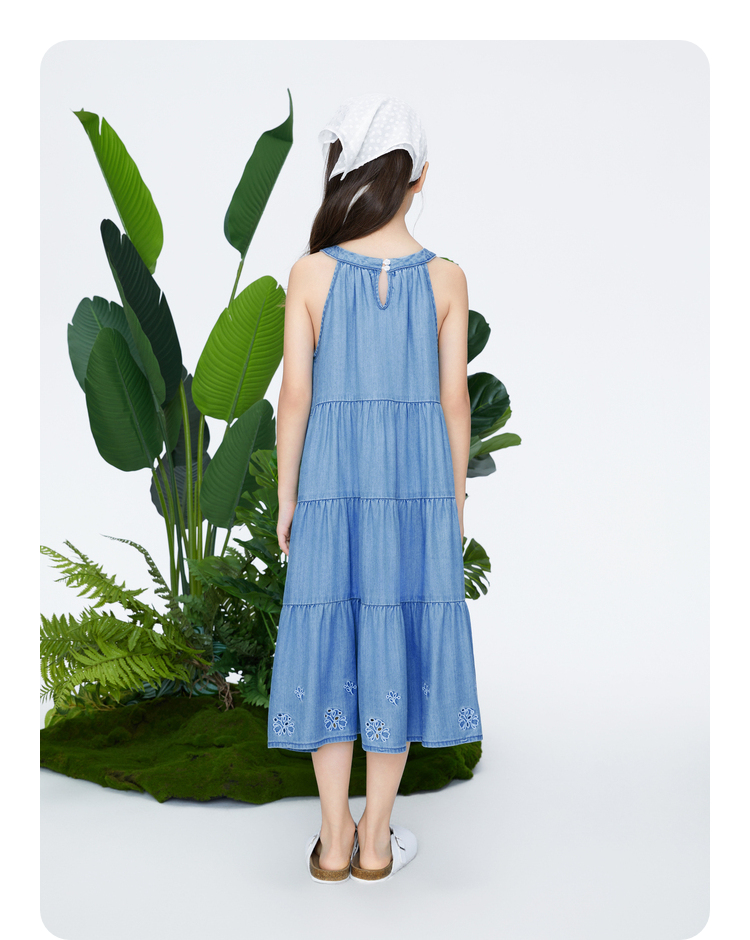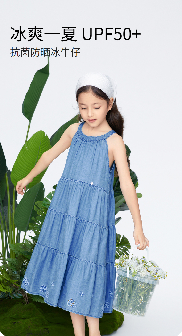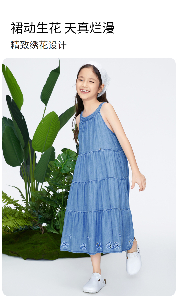安奈儿女童天丝薄款牛仔无袖连衣裙 ag423812