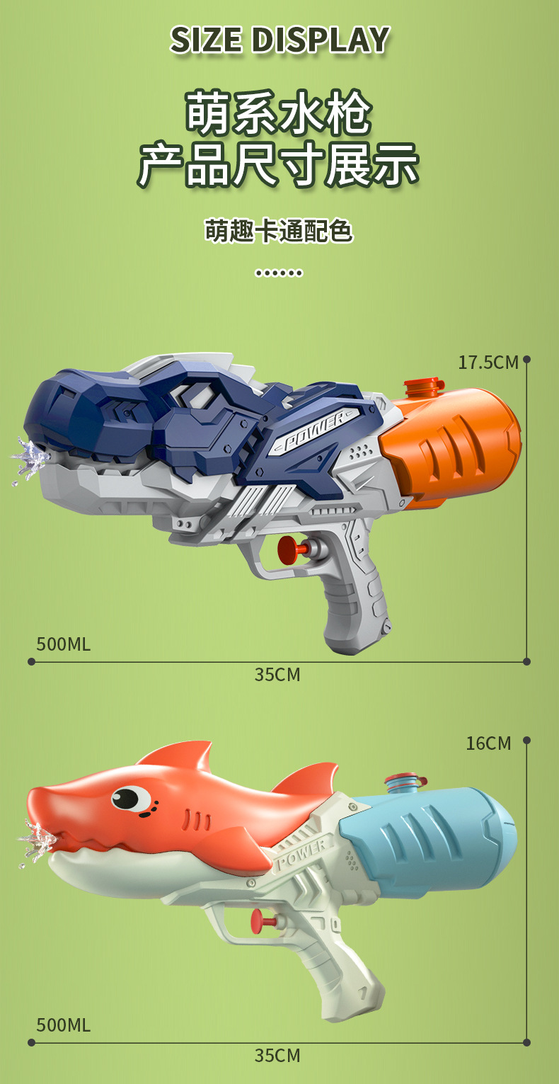 新款儿童水枪玩具【夏日水枪大战🔥】萌趣小马恐龙🦖小鸭鲨鱼🦈齐上阵!双喷设计💦500ML大容量,清凉一夏就靠它!