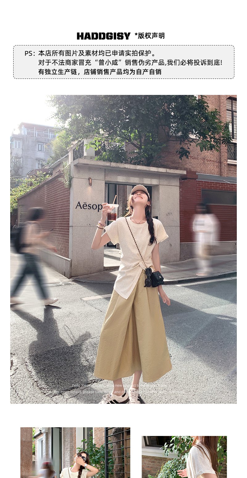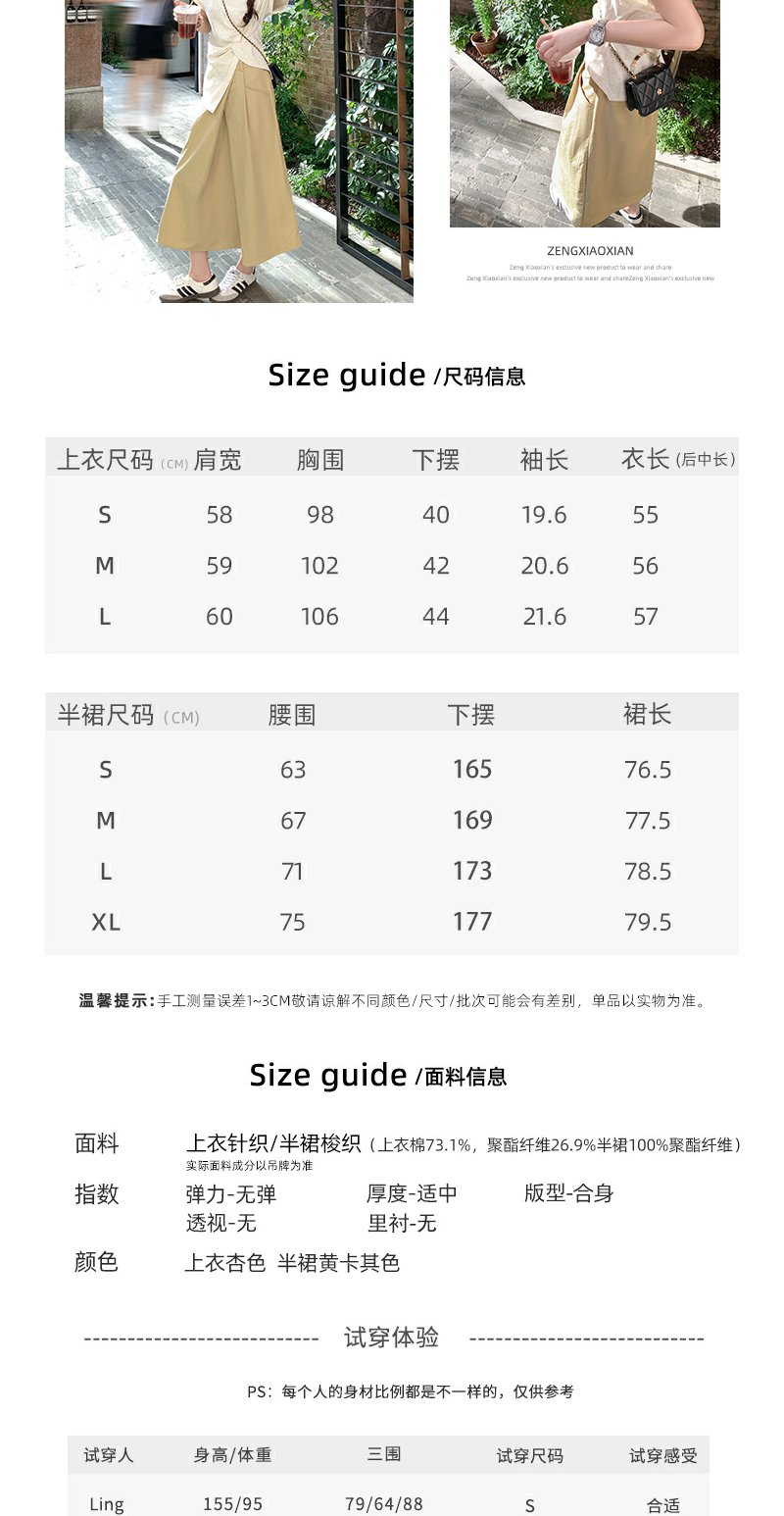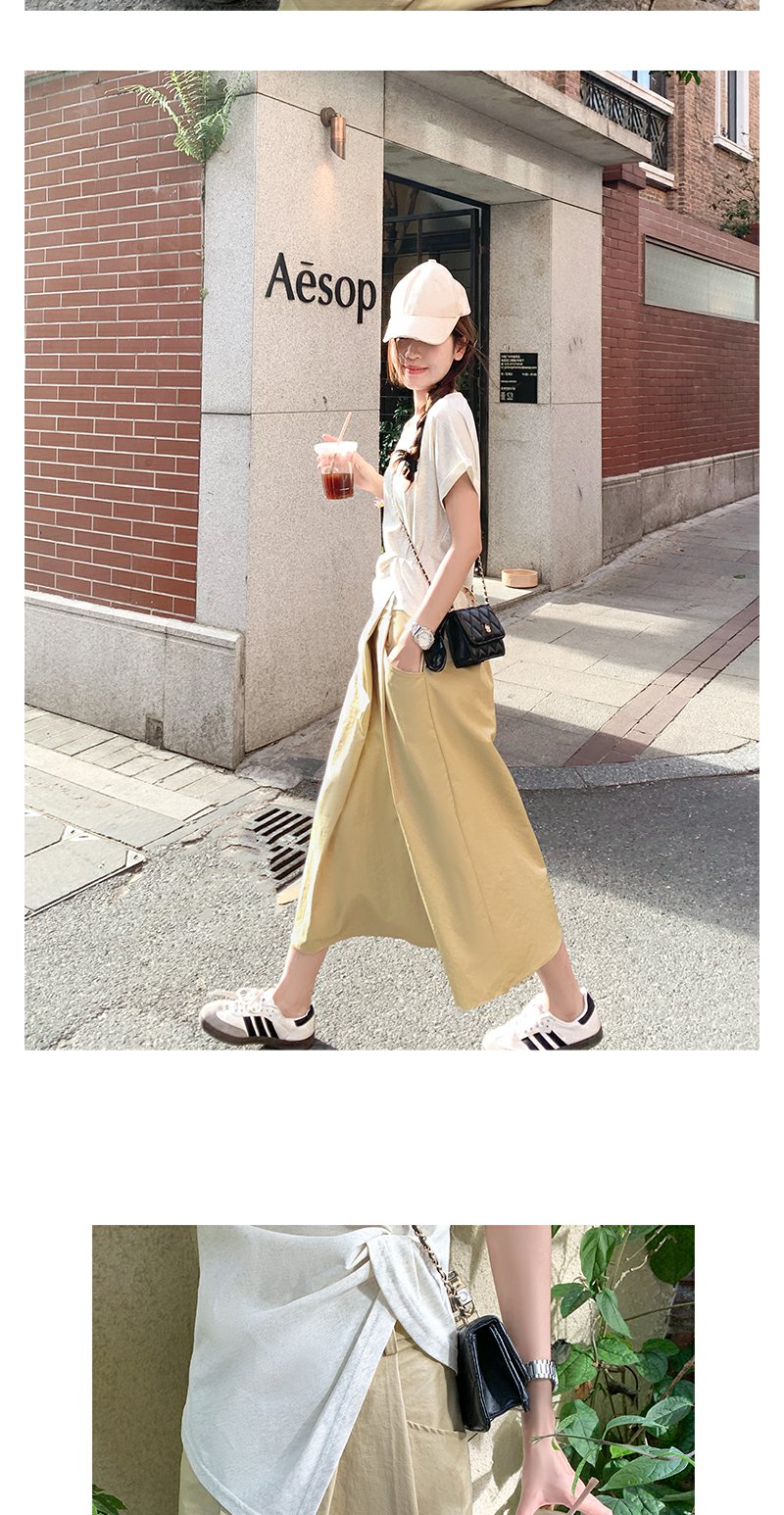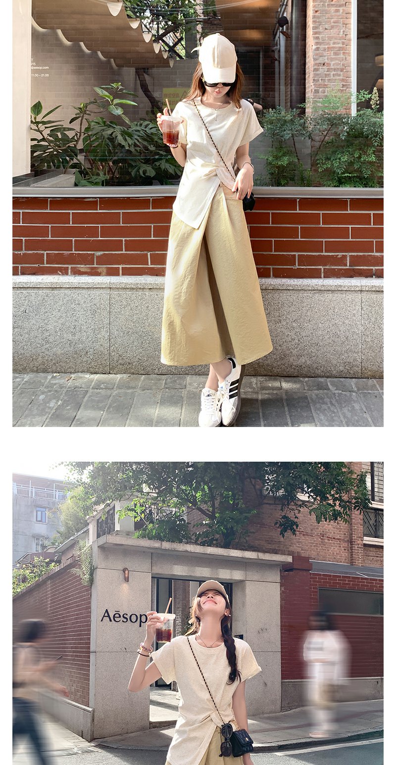 <曾小咸推荐>卡其色半身裙杏色下摆开叉短袖T恤