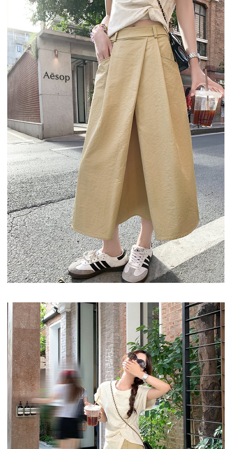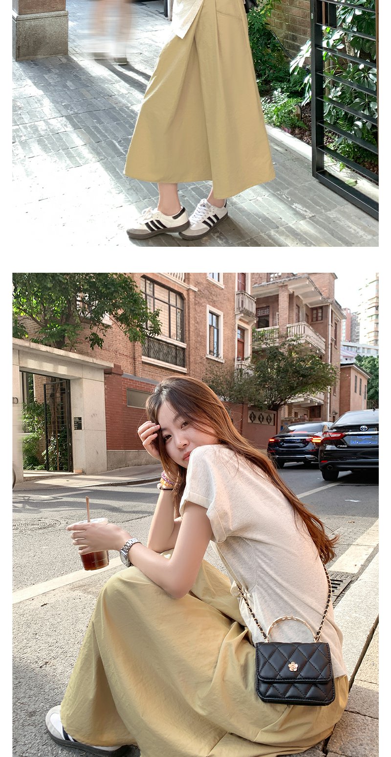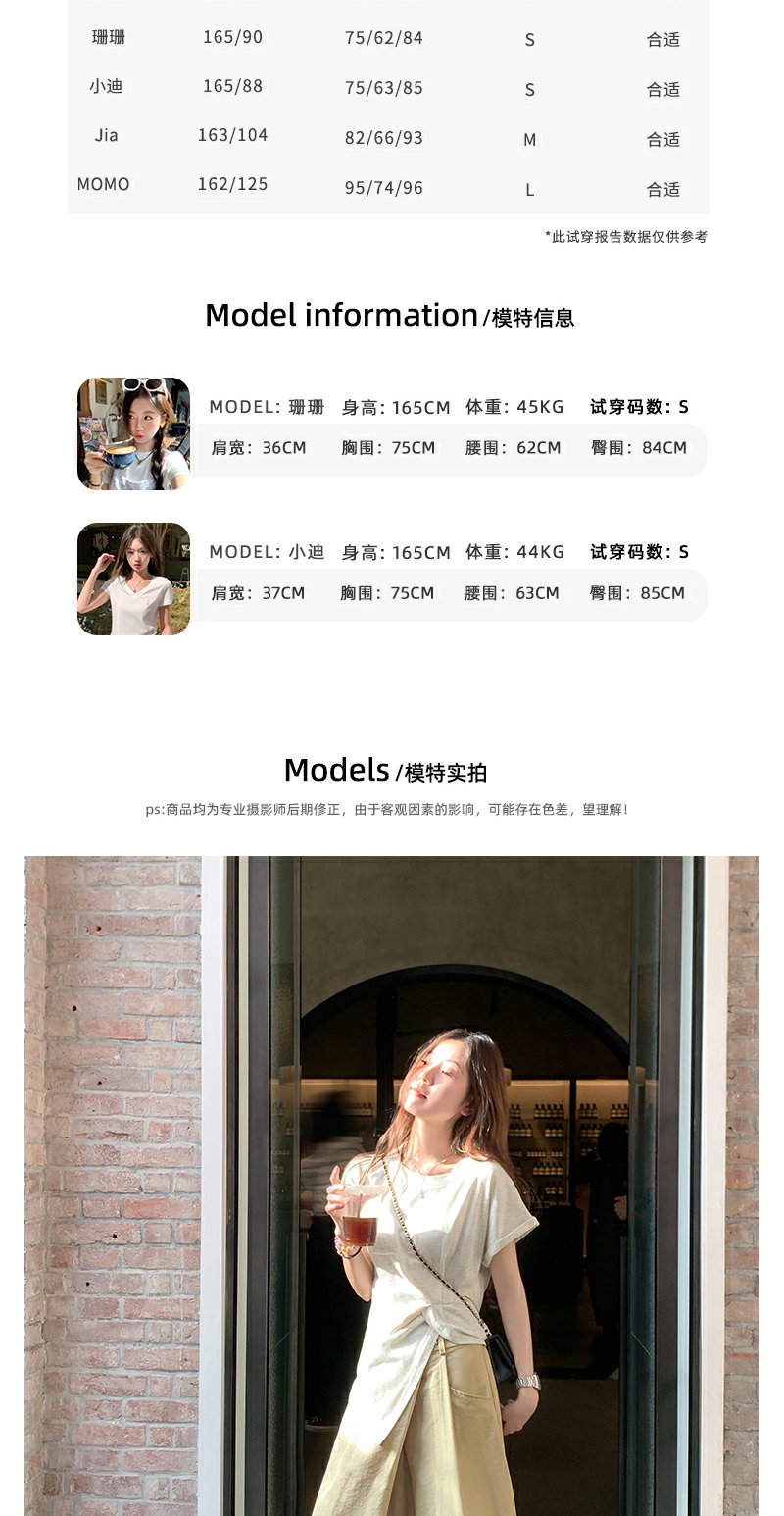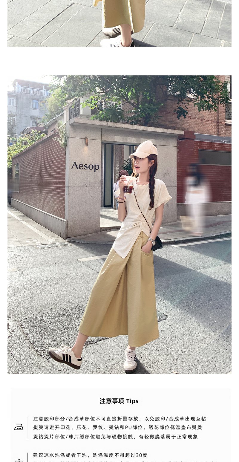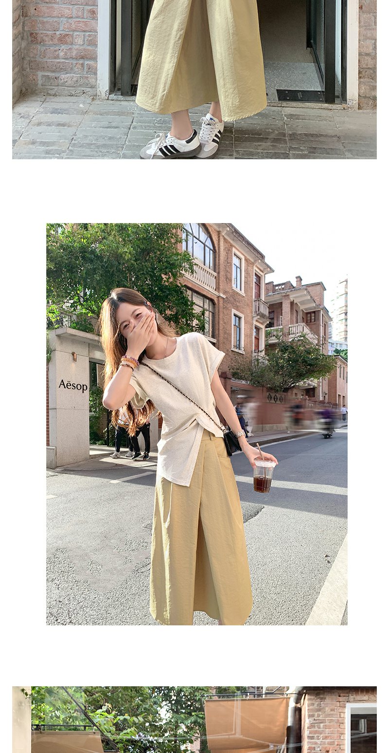 <曾小咸推荐>卡其色半身裙杏色下摆开叉短袖T恤