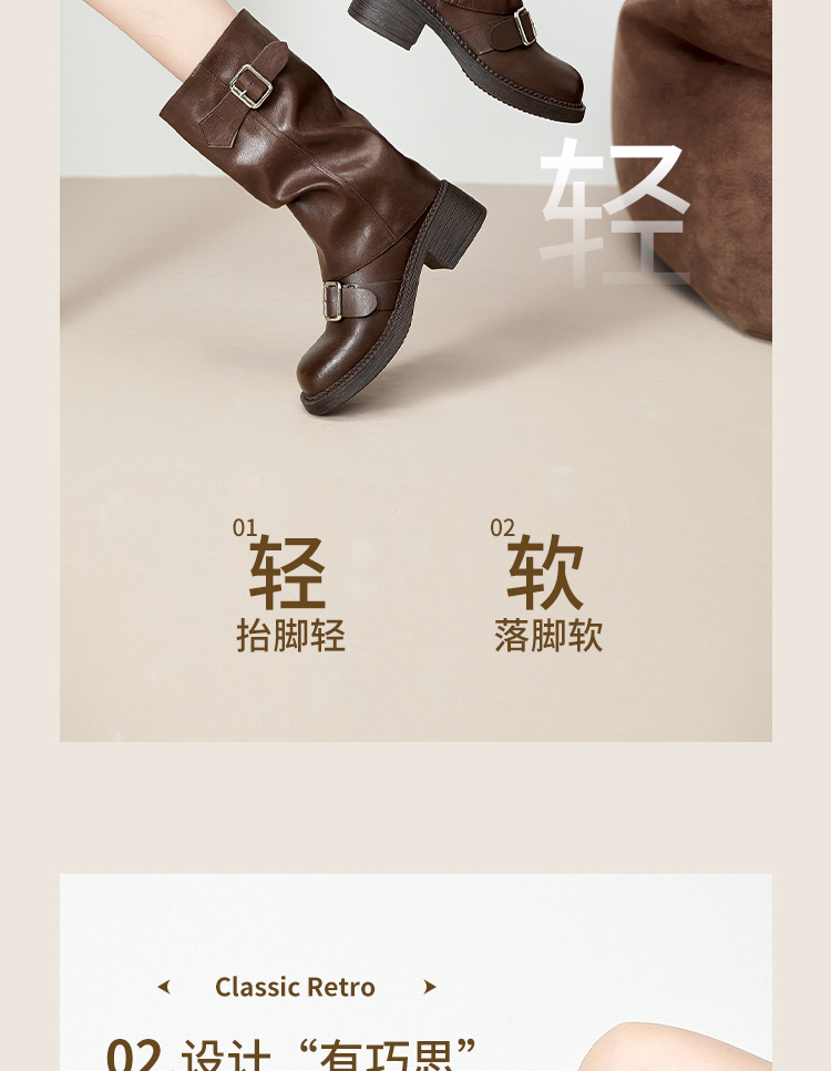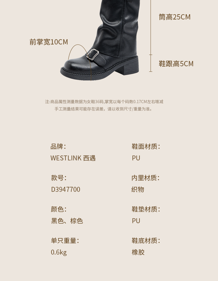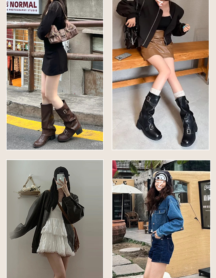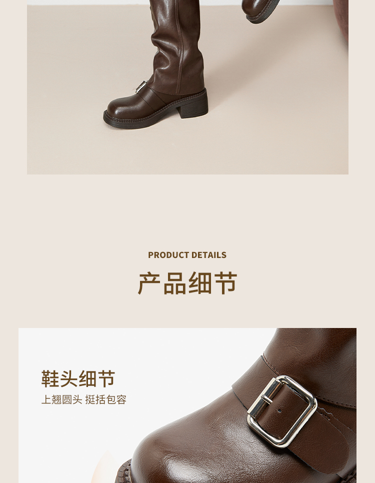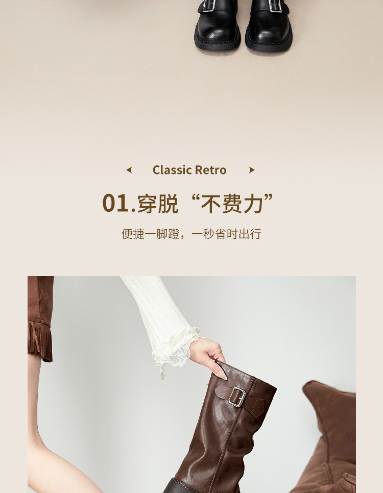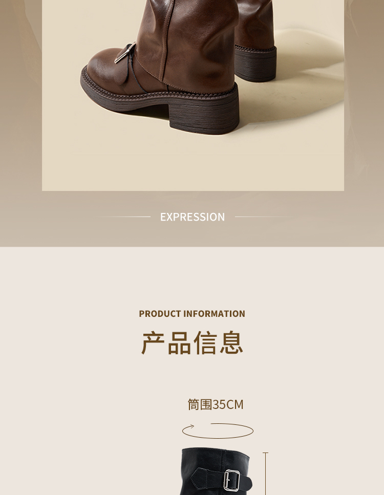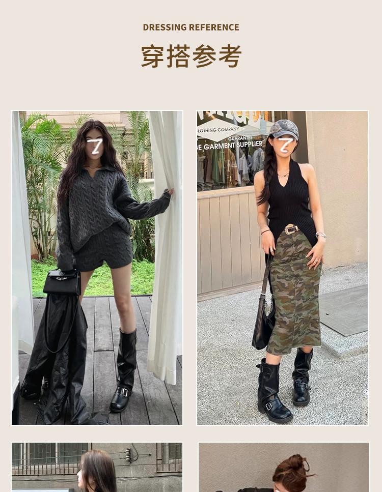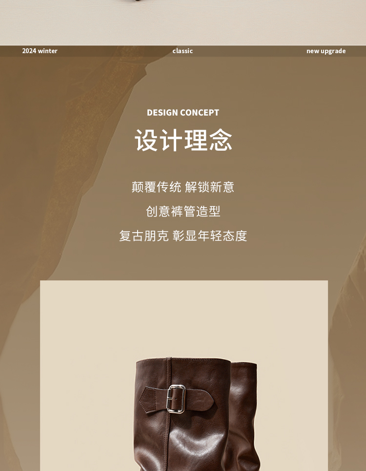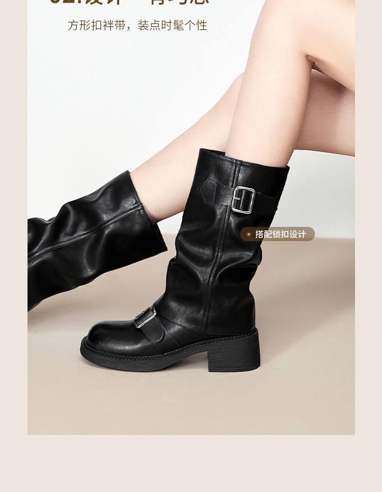 西遇复古裤管靴女新款秋冬西部牛仔堆堆靴小个子厚底中筒靴子D3947700