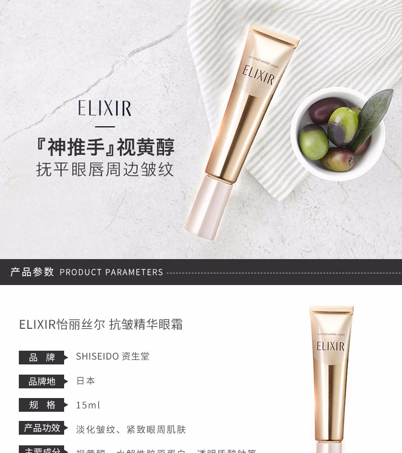日本 资生堂 ELIXIR 怡丽丝尔 抗皱精华眼霜 15g