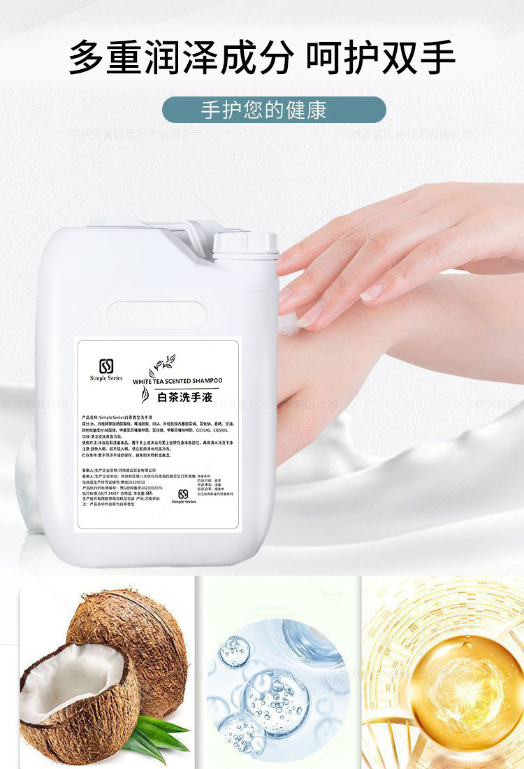 大桶20L白茶洗手液清洁温和泡沫补充液 家用酒店餐厅商用大瓶批发