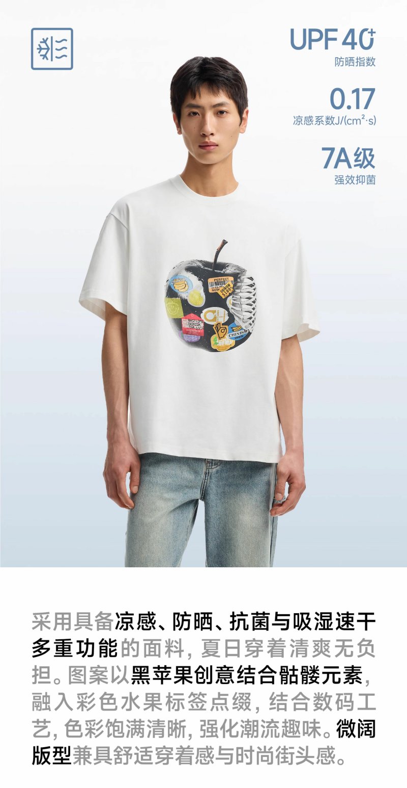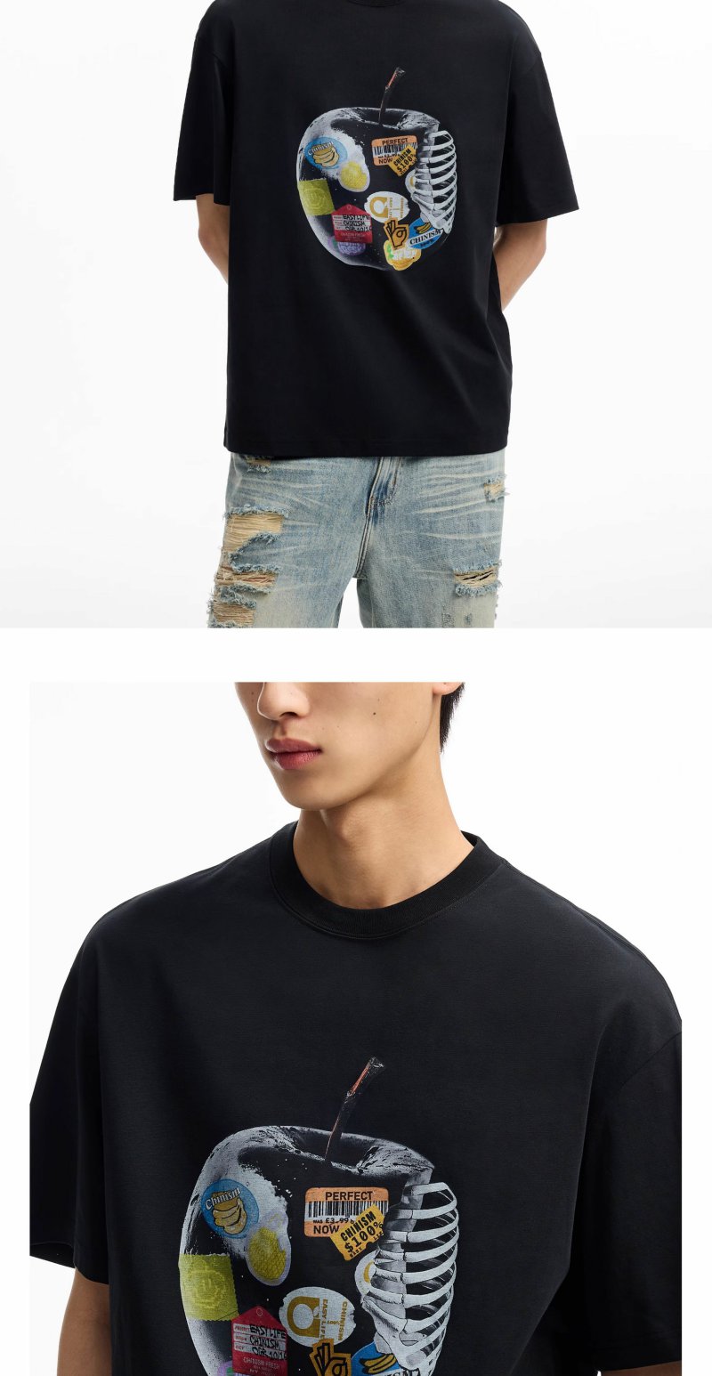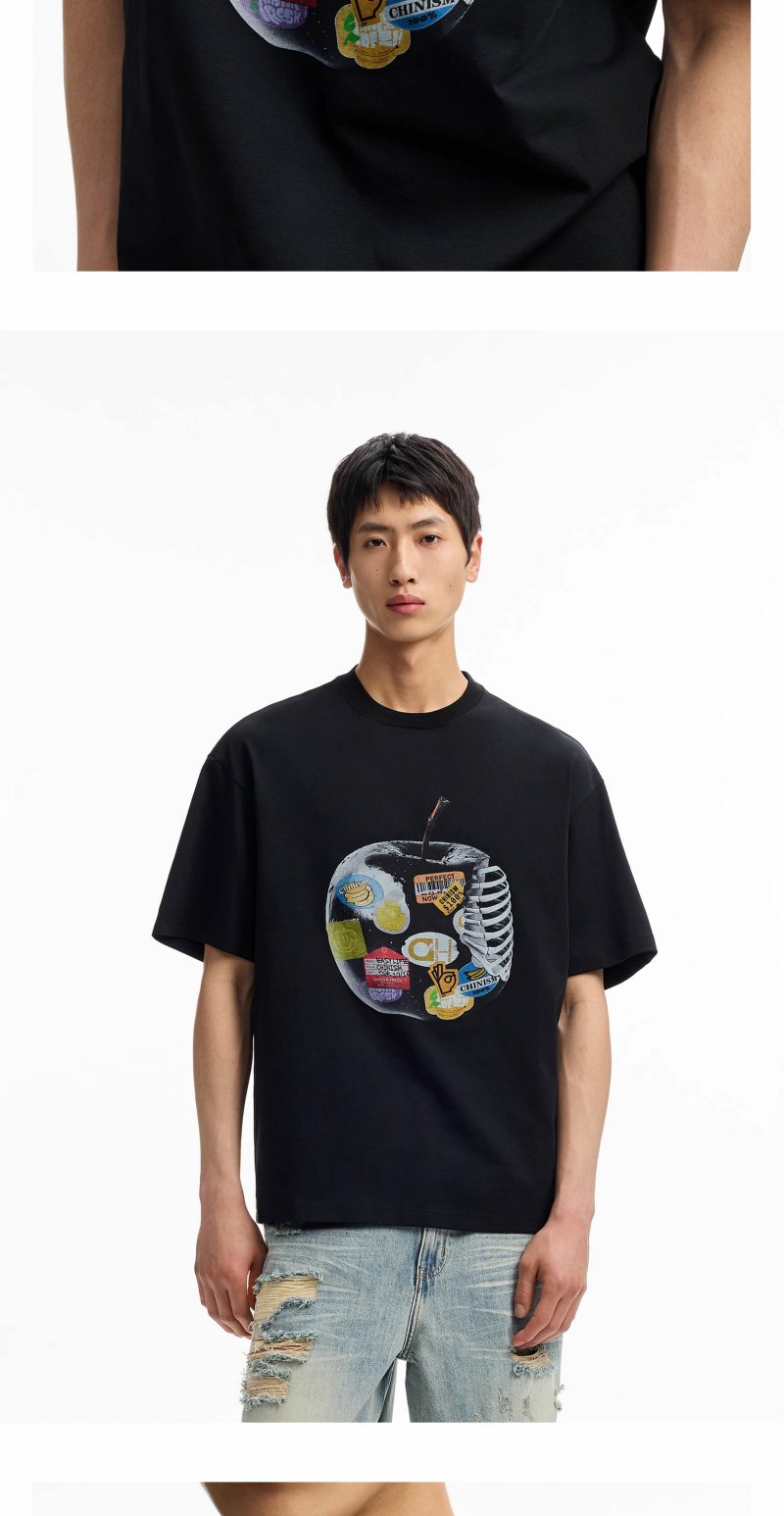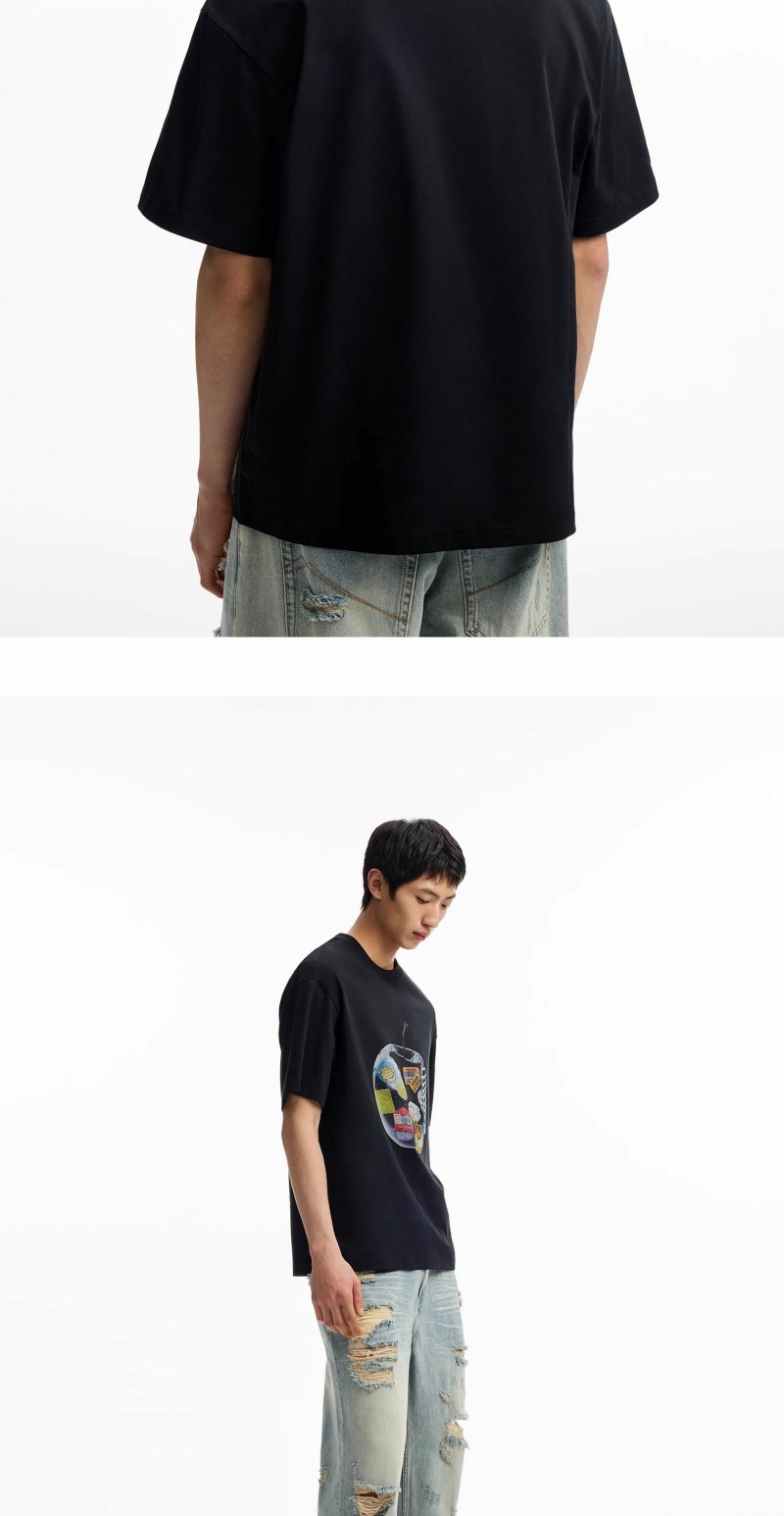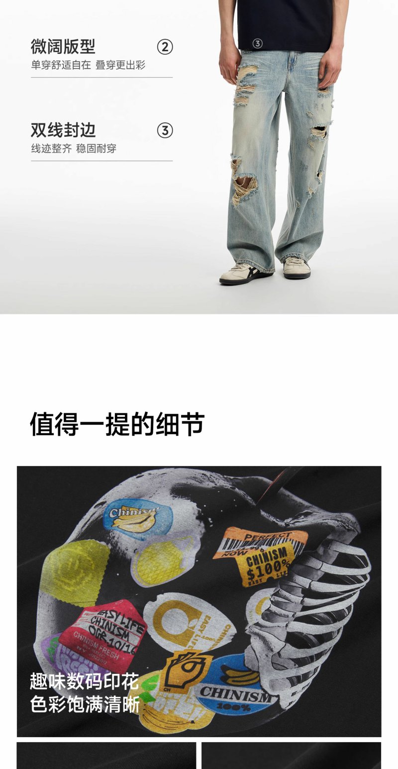 CHINISM赤尘 黑色凉感短袖t恤男夏季新款美式印花男士休闲半袖