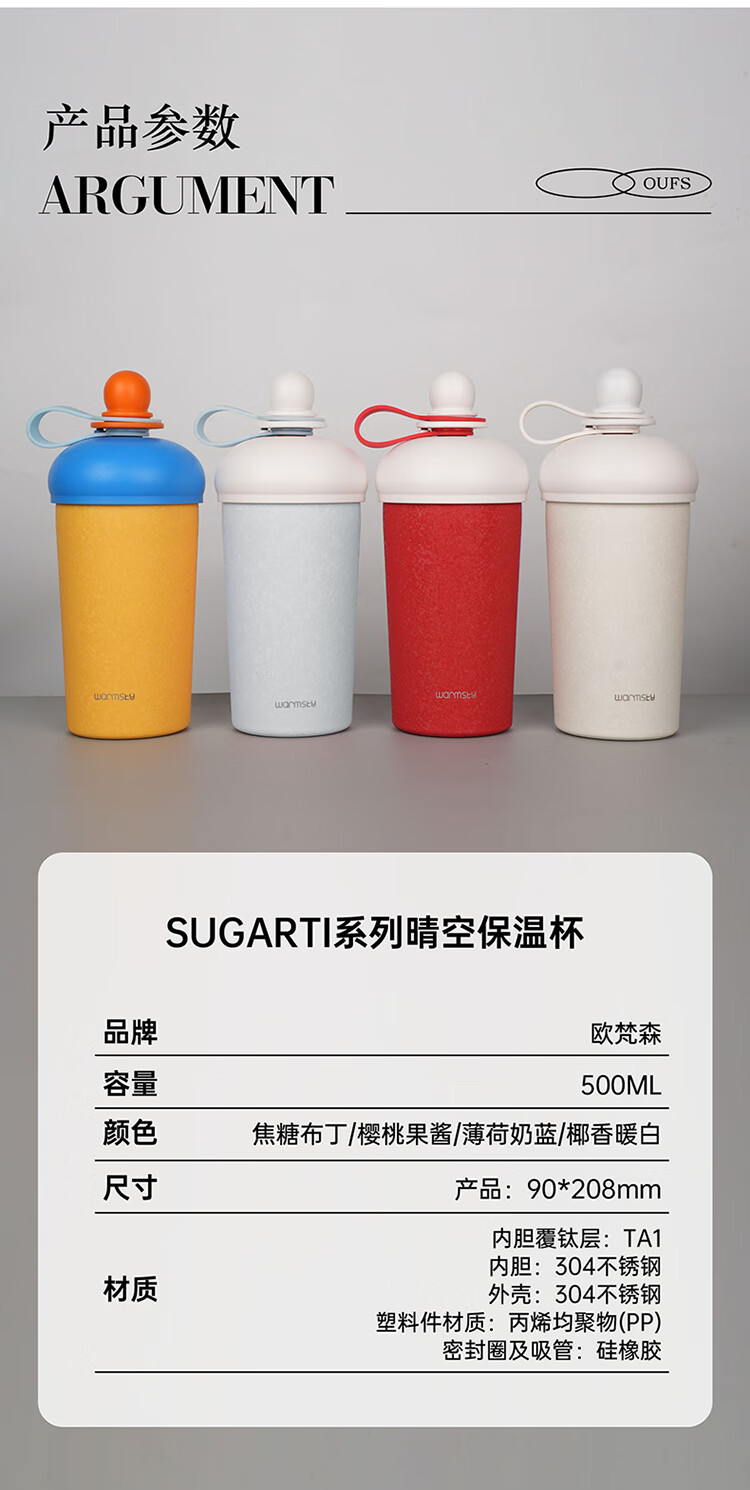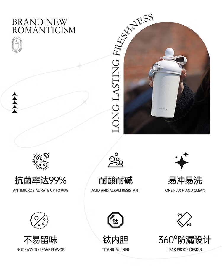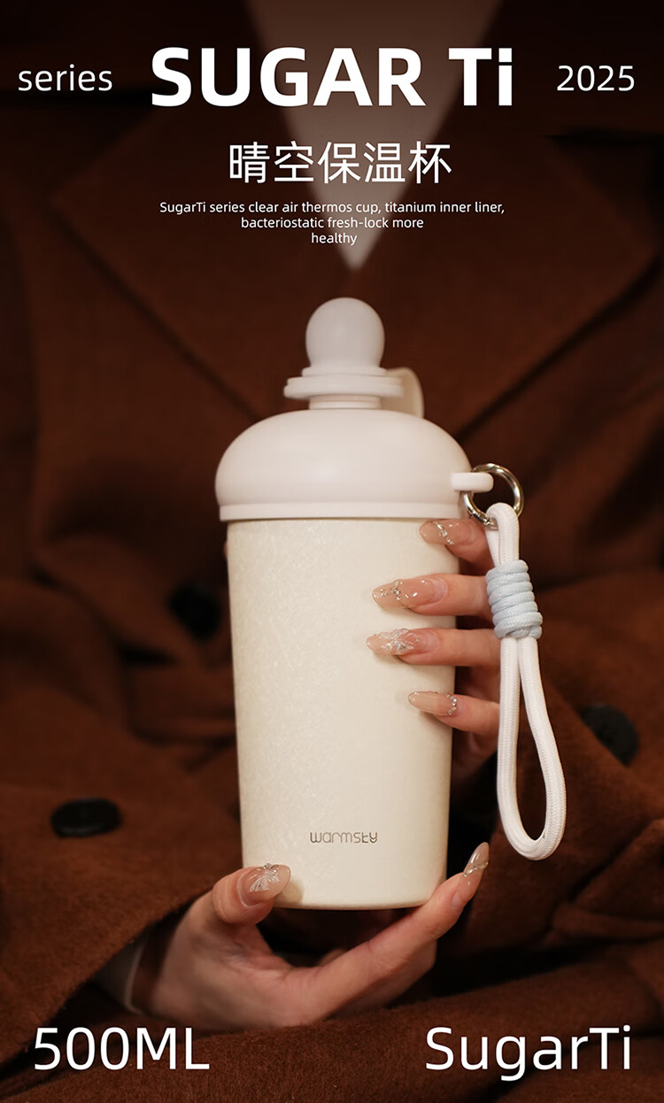 WARMSKY真健康覆钛内胆保温杯 抗菌99%水杯高颜值男女士生日礼物吸管杯 500ml