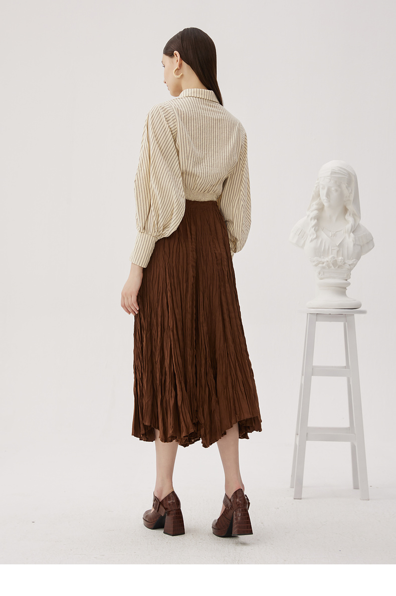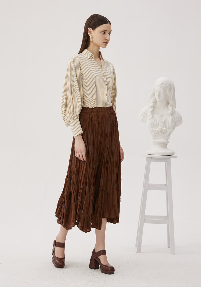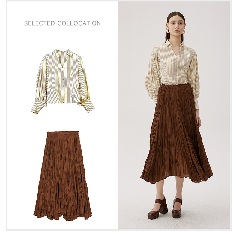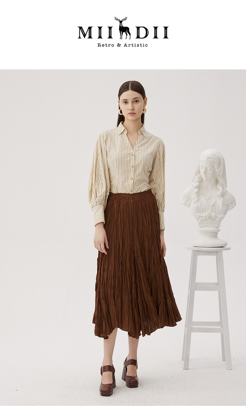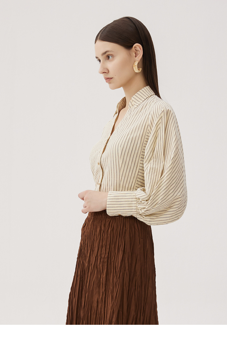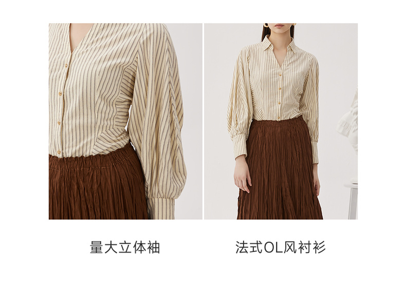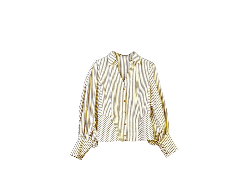 谜底宫廷风衬衫长袖女2024秋新品优雅V领灯笼袖修身衬衣243MC1042