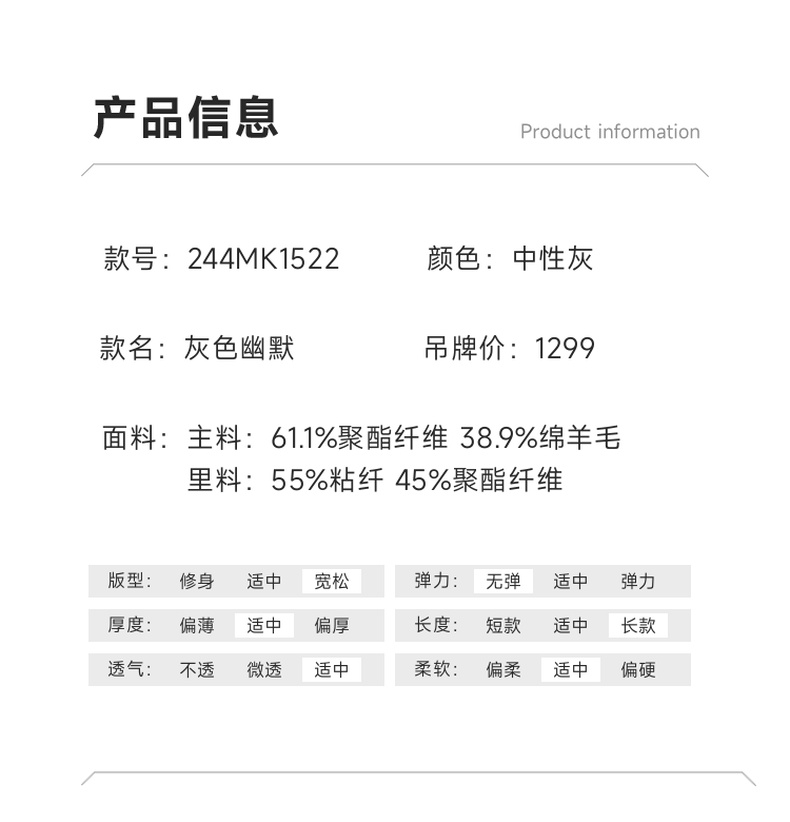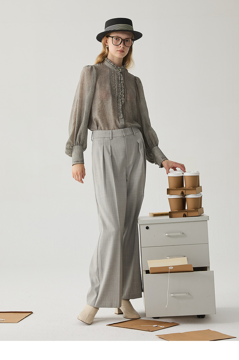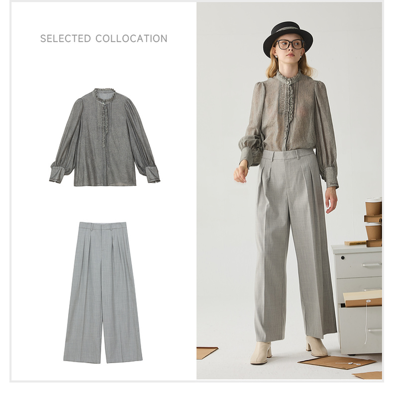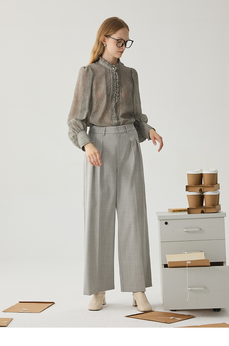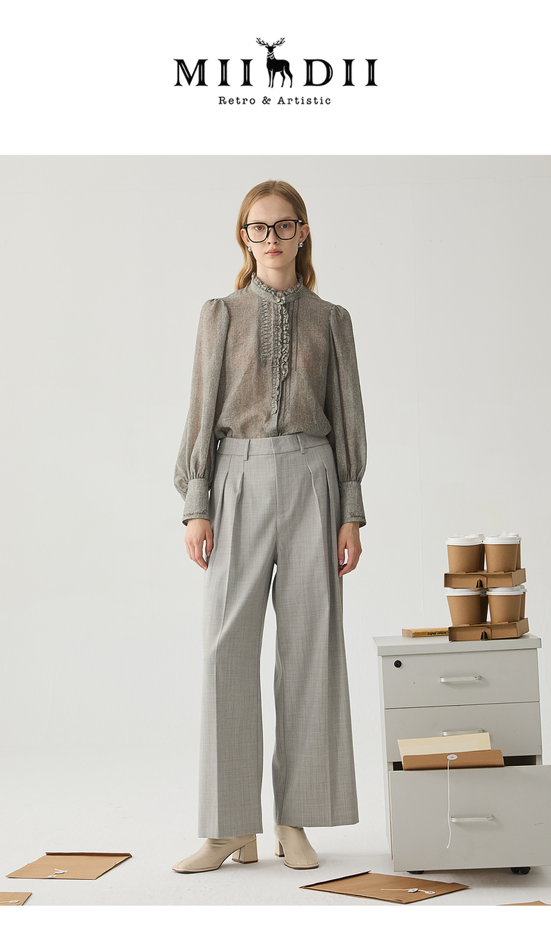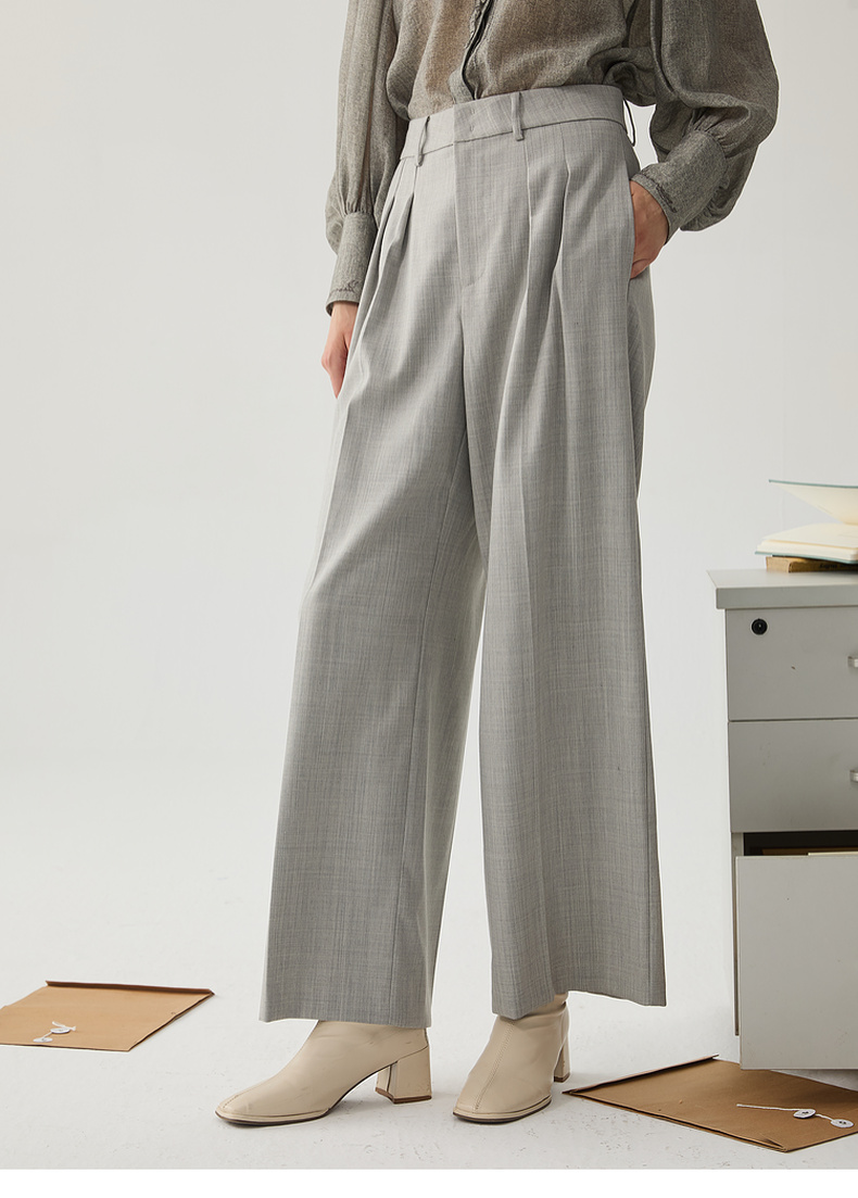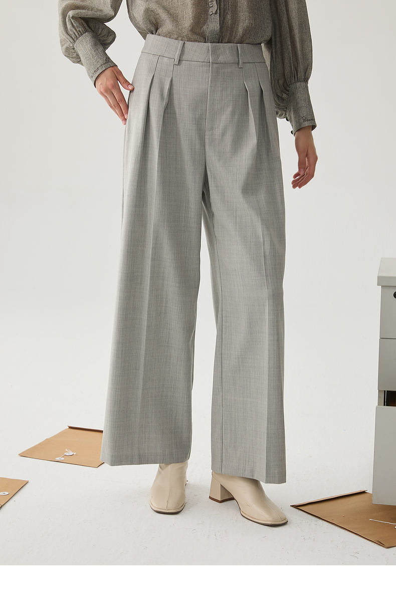 谜底阔腿裤女2024冬季新品通勤风优雅气质高腰西裤长裤244MK1522