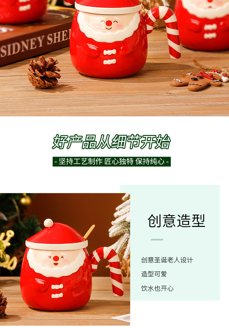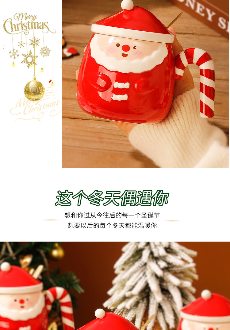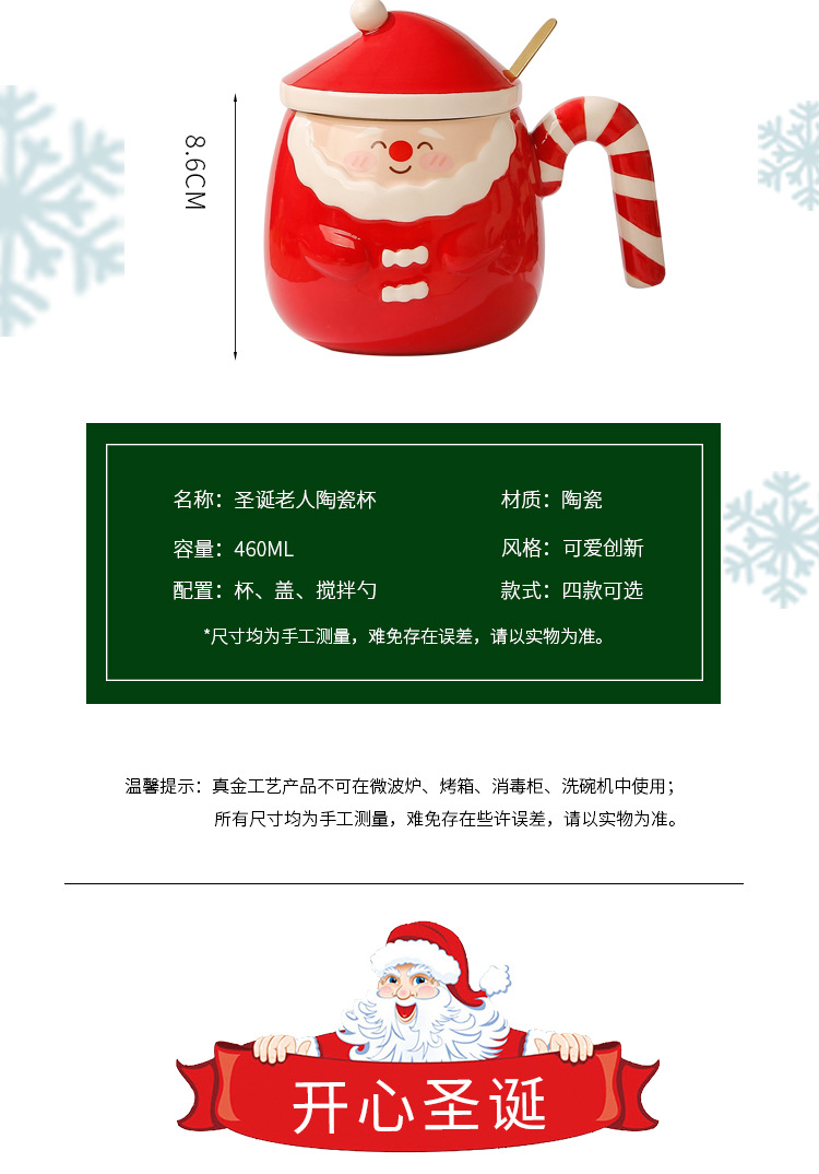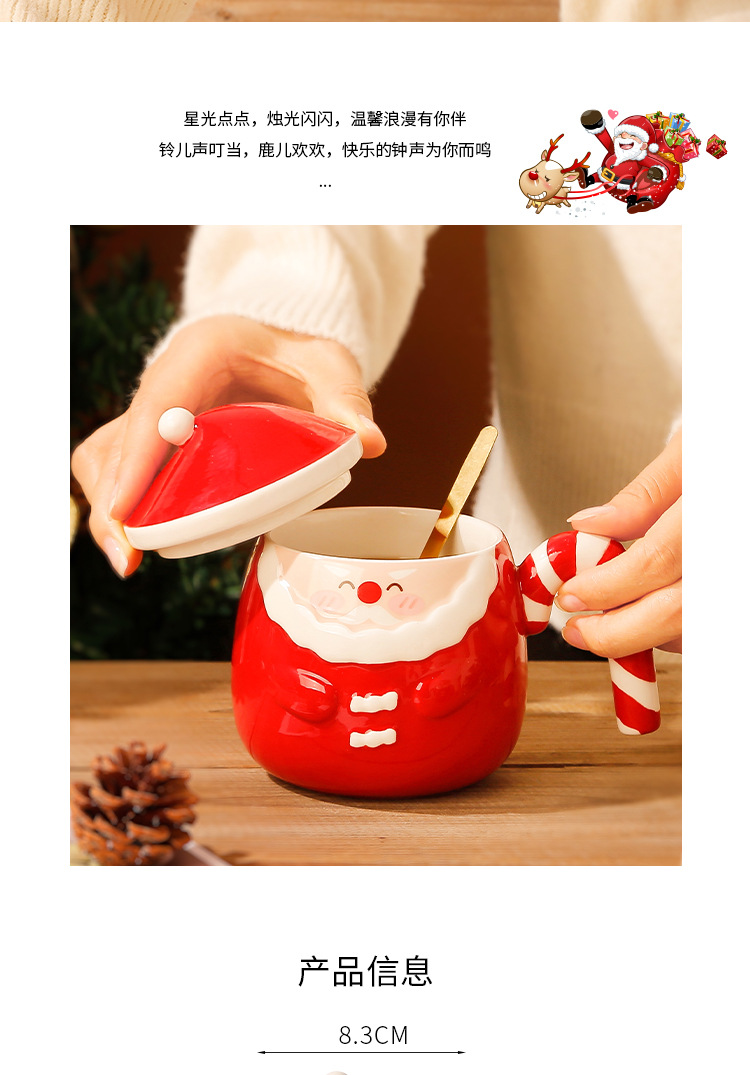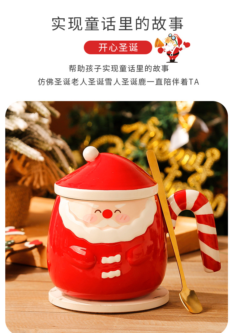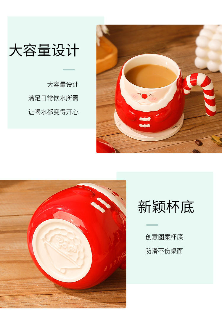 【圣诞好礼!生动萌趣~】圣诞老人马克杯 创意手绘圣诞陶瓷杯礼盒 家用带盖勺咖啡杯礼品-QQ