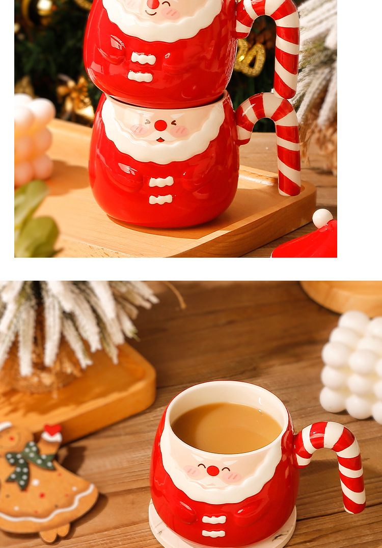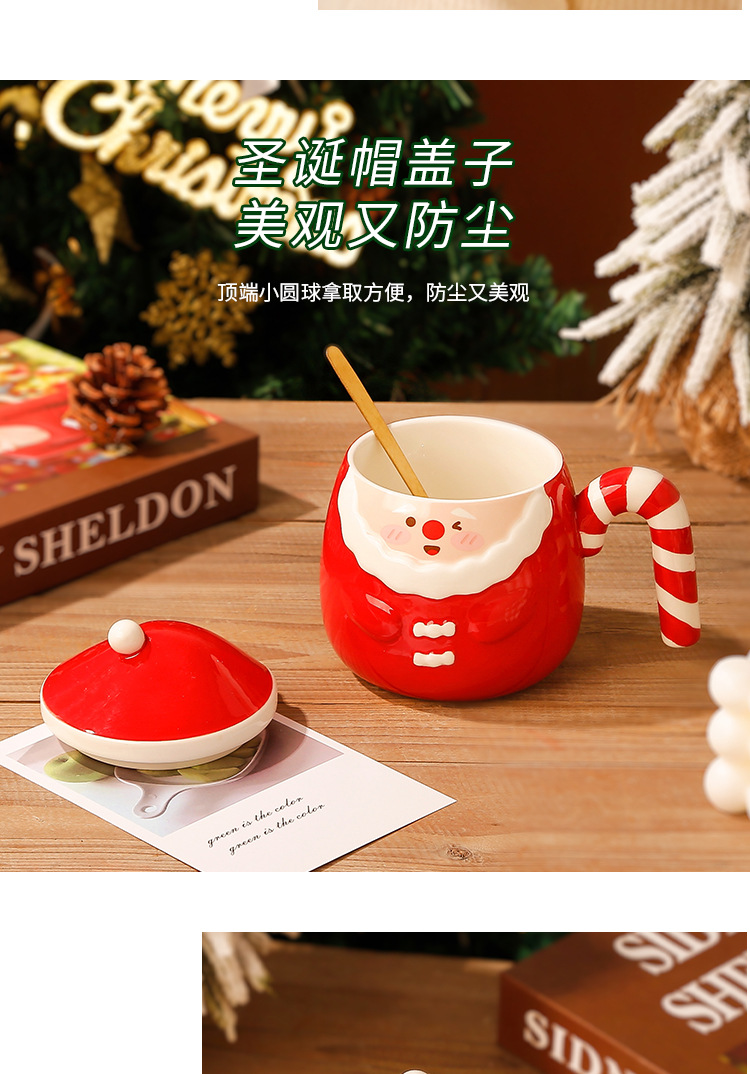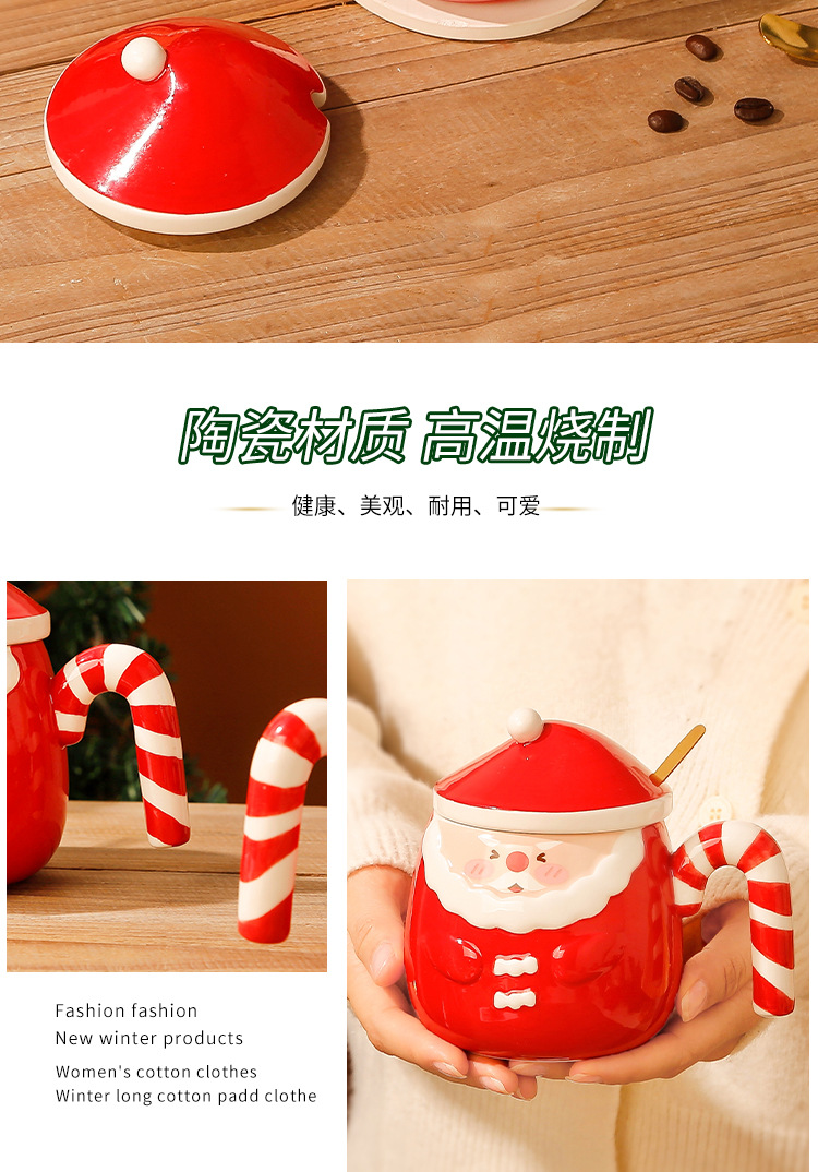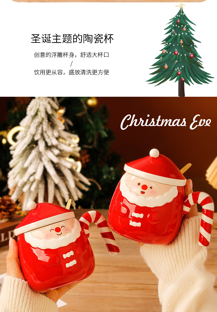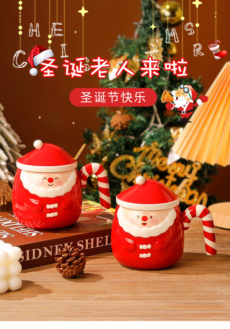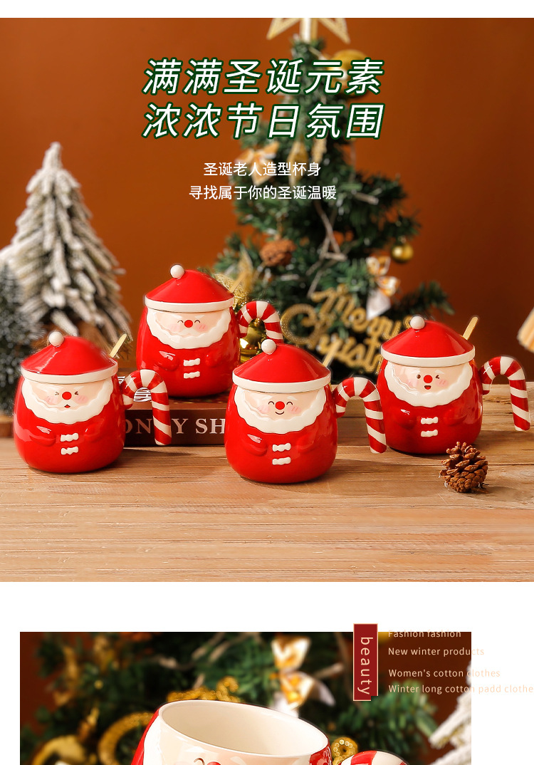 【圣诞好礼!生动萌趣~】圣诞老人马克杯 创意手绘圣诞陶瓷杯礼盒 家用带盖勺咖啡杯礼品-QQ