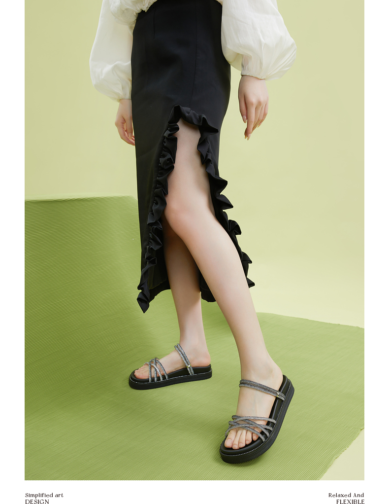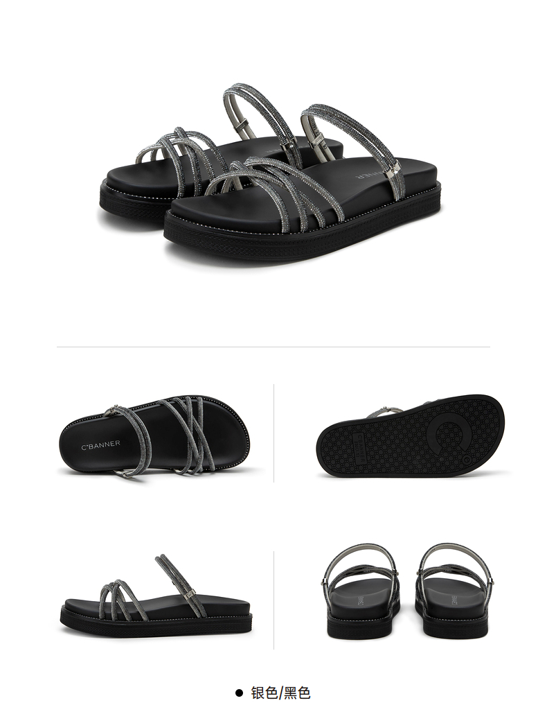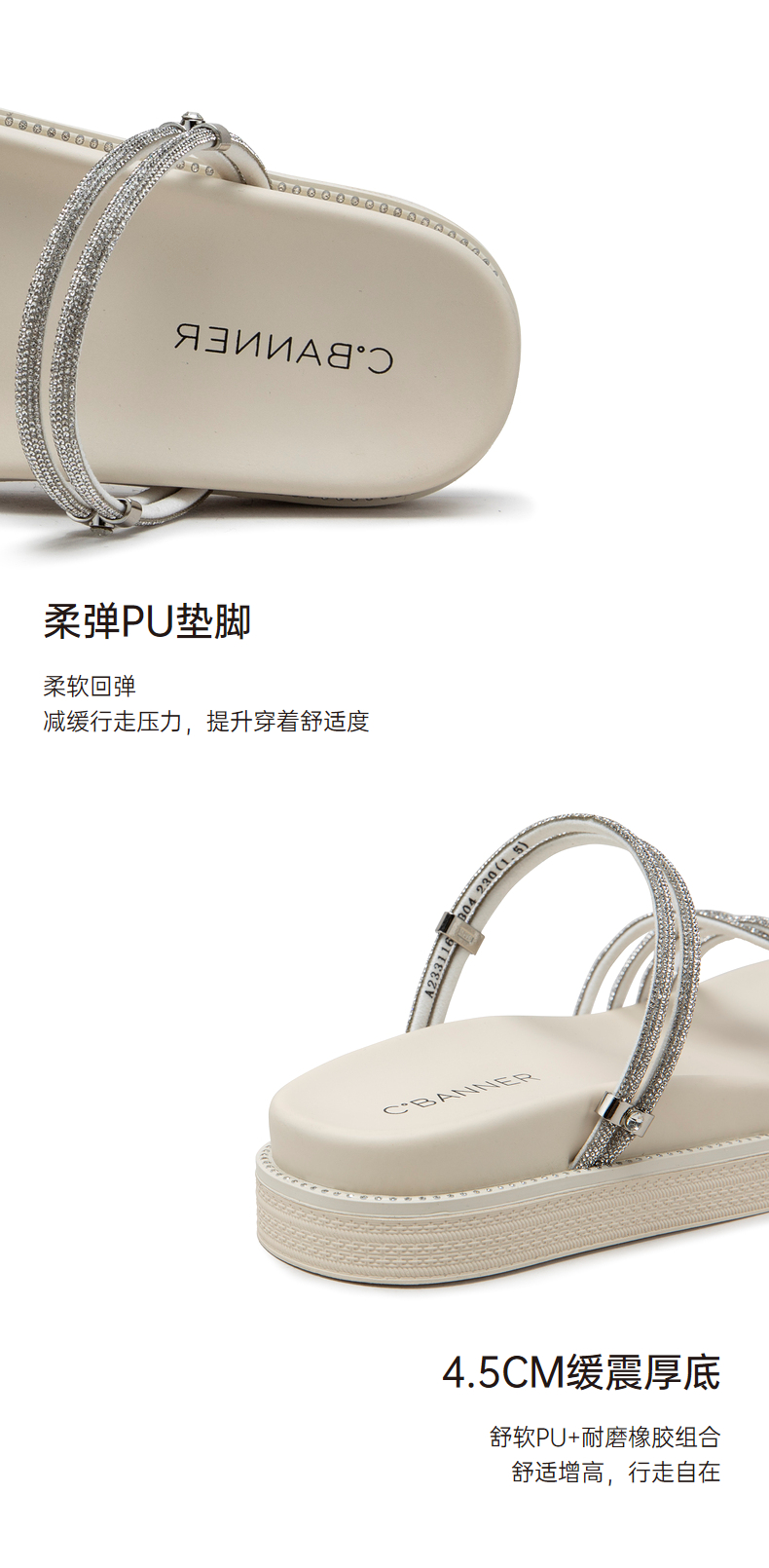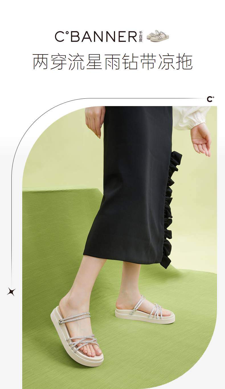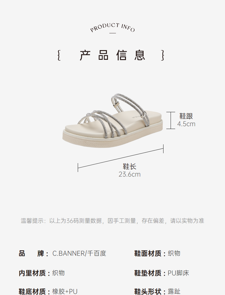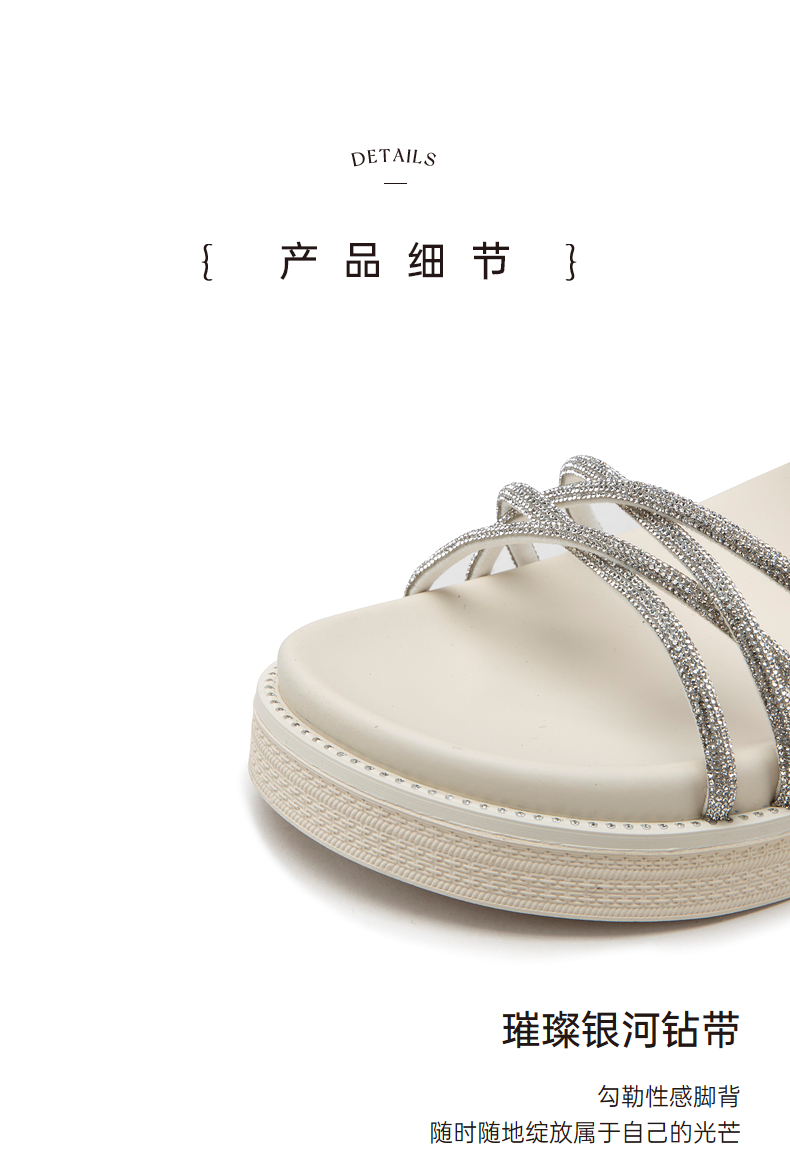千百度女鞋夏季凉拖鞋厚底踩屎感拖鞋外穿气质配裙子 A23311605
