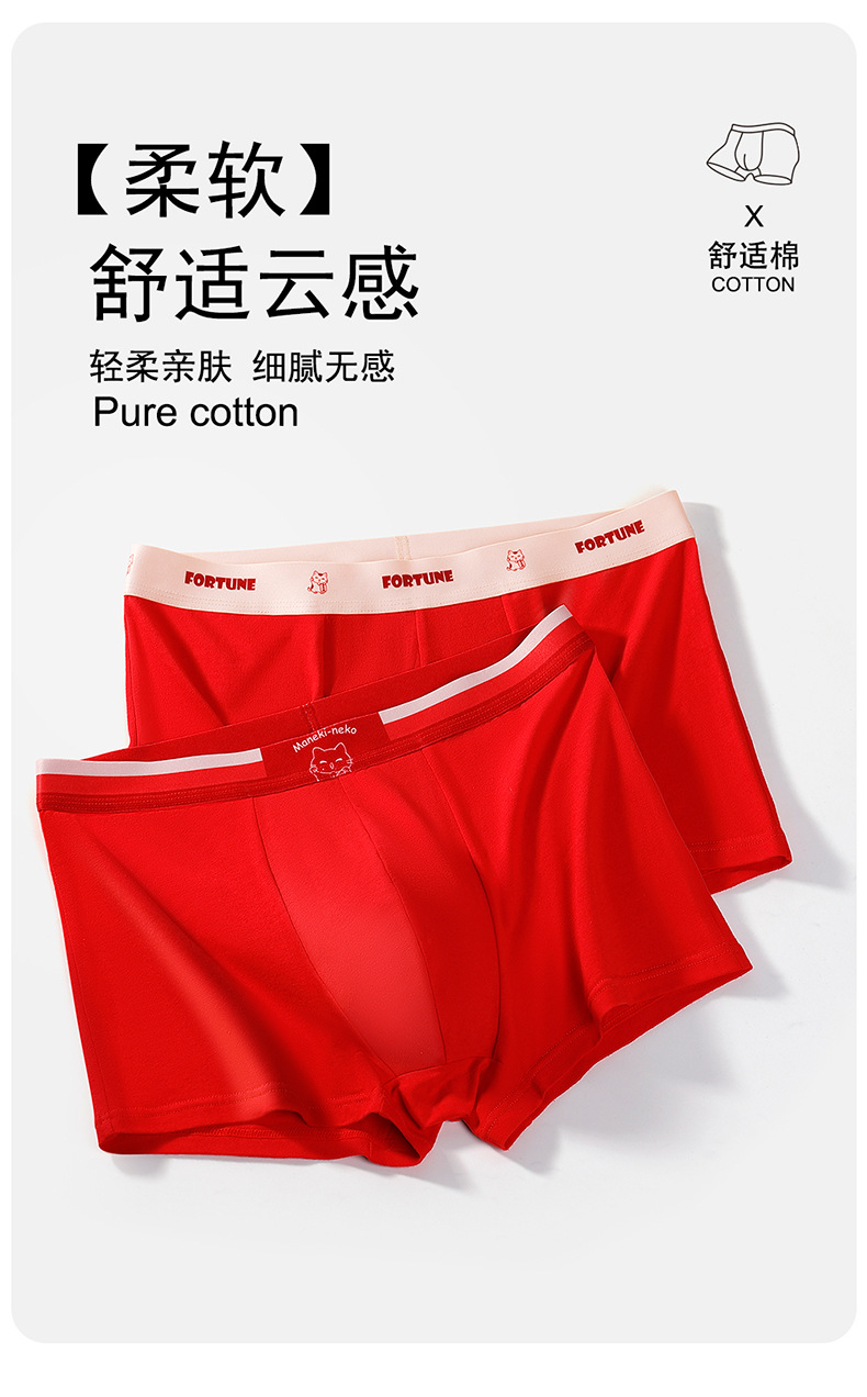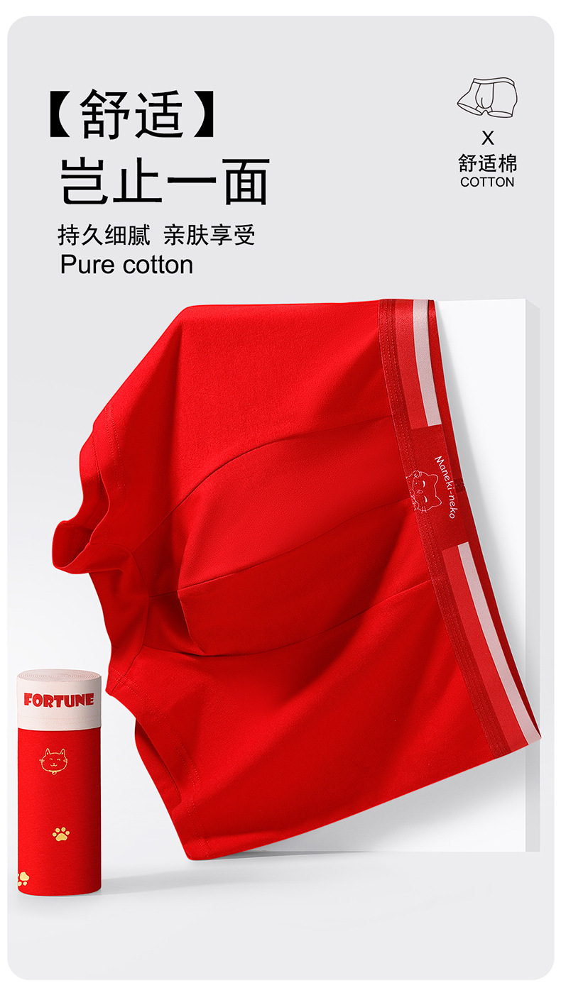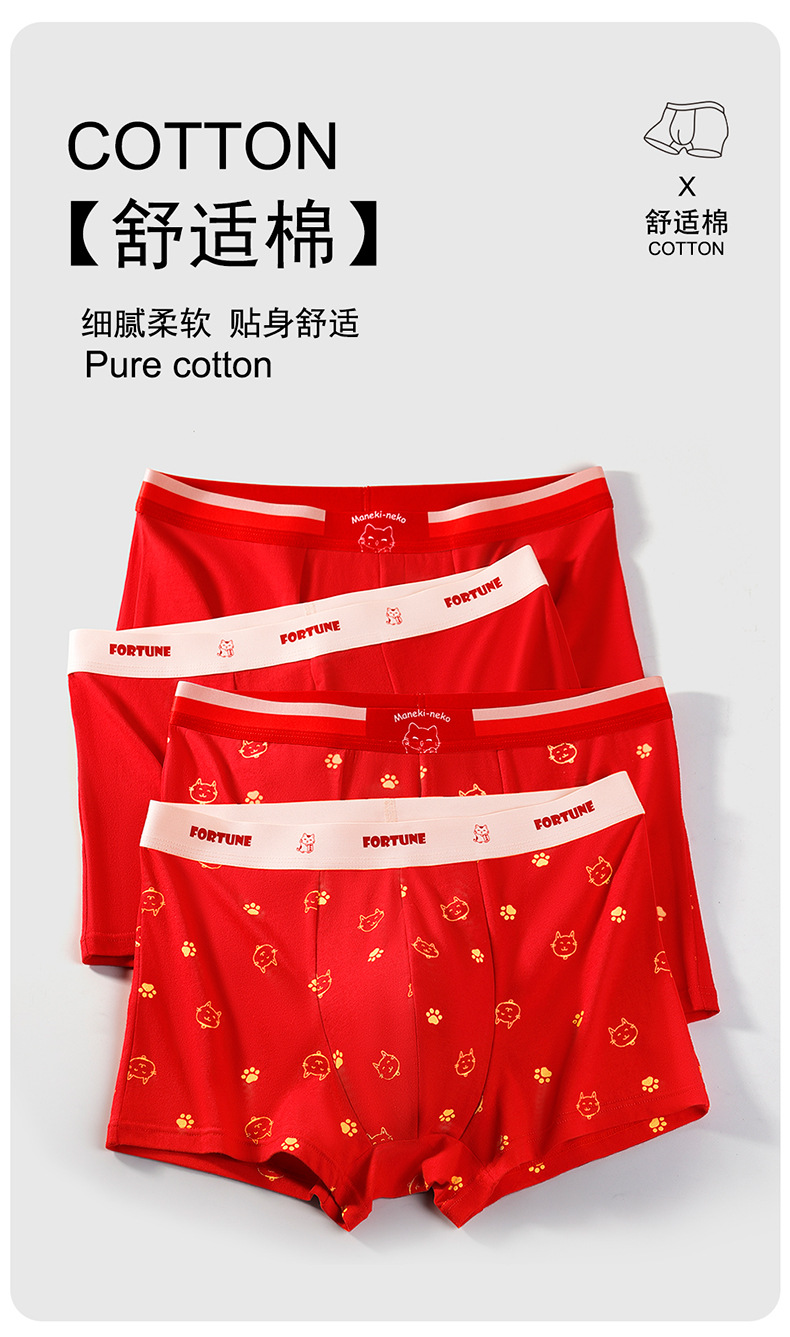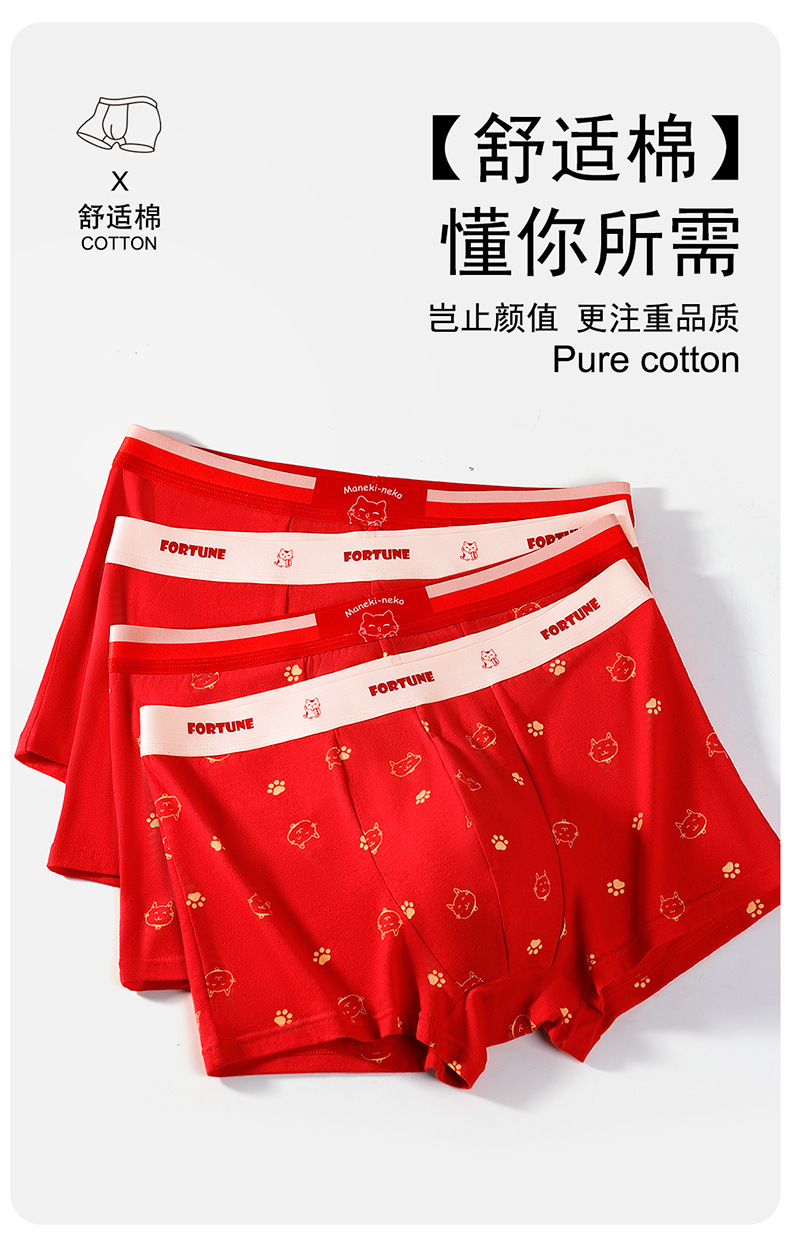 蛇年纯棉男士红色内裤冬天结婚喜庆本命年平角裤大红四角裤头裤衩