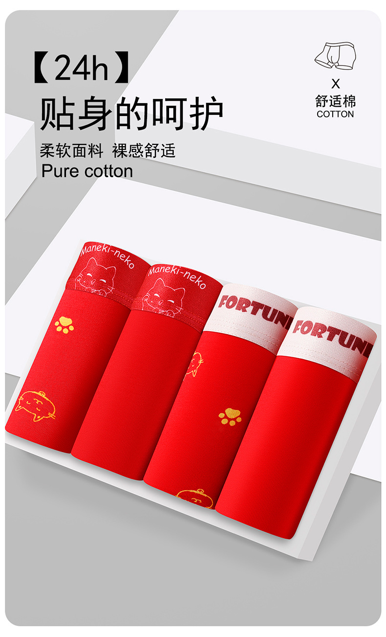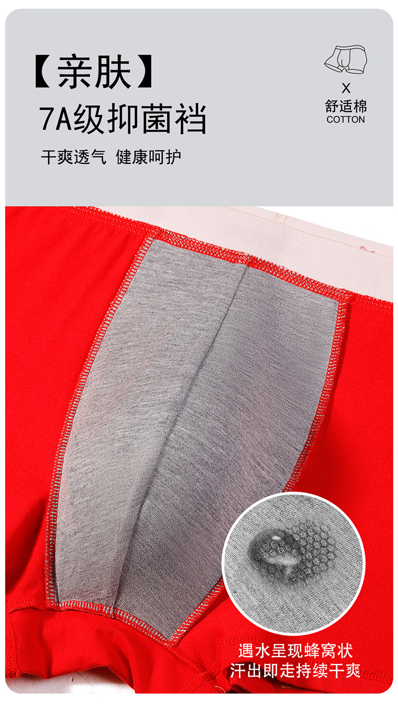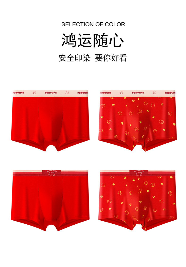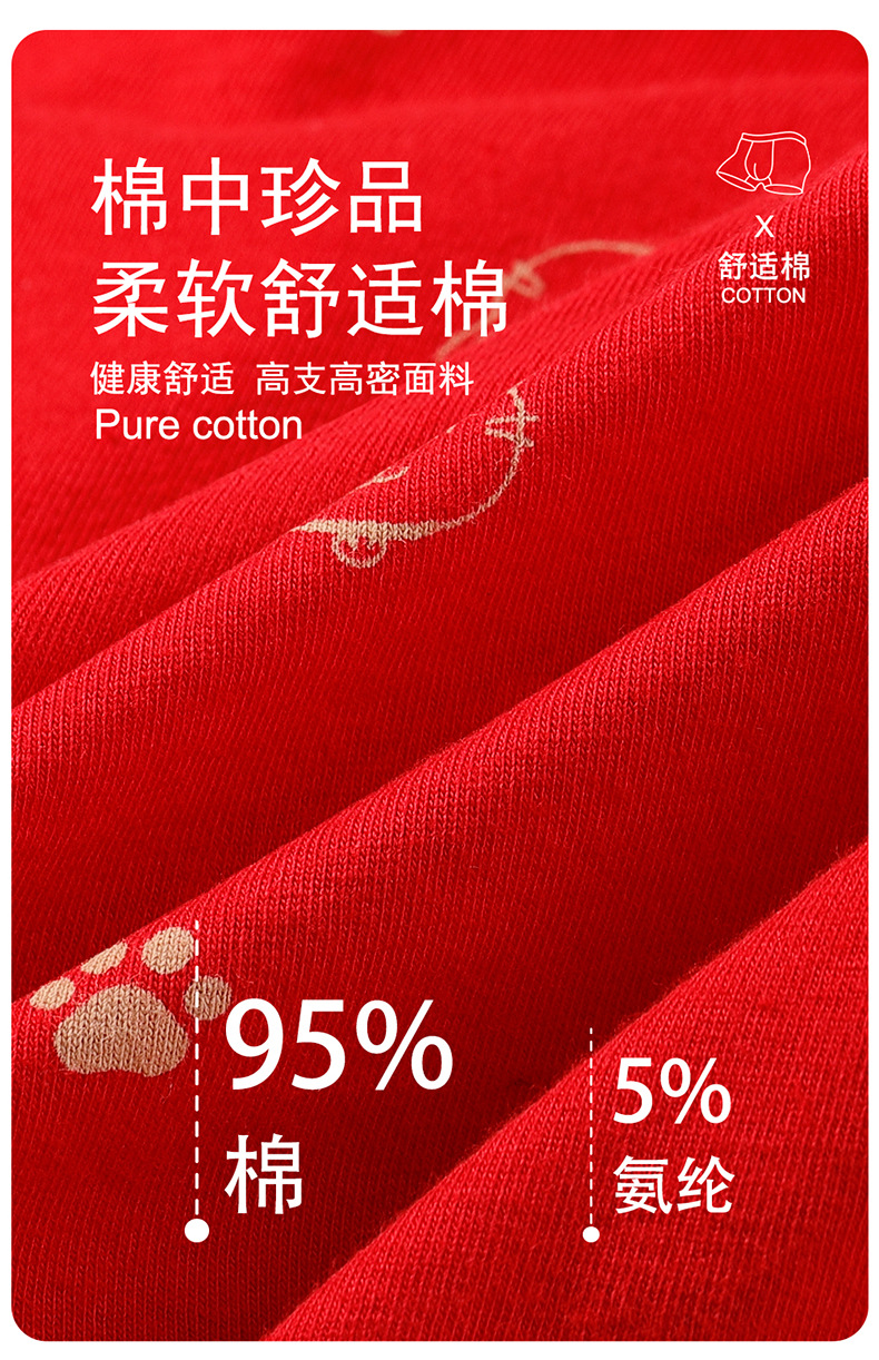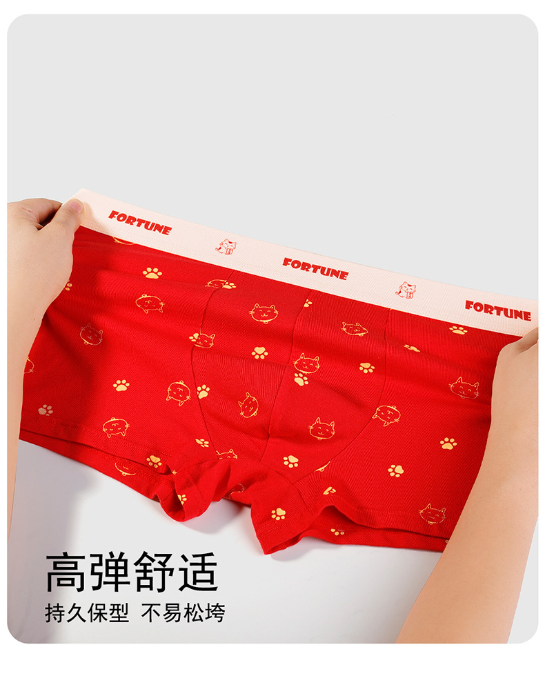 蛇年纯棉男士红色内裤冬天结婚喜庆本命年平角裤大红四角裤头裤衩