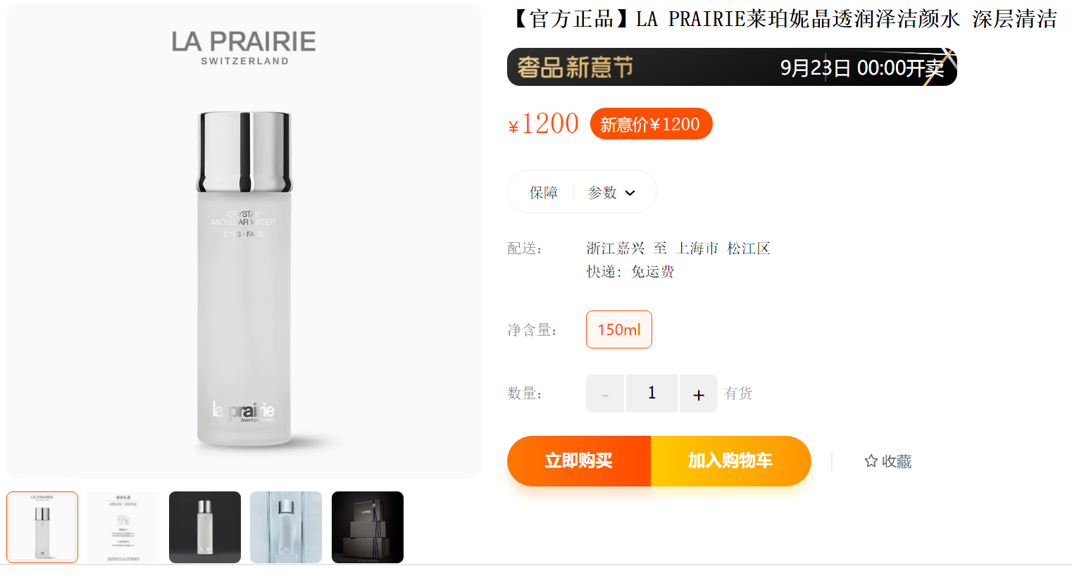 商品名称:La Prairie/莱珀妮晶透润泽洁颜水60ml*2