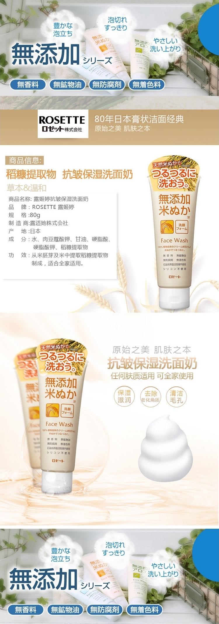 露姬婷抗皱保湿洗面奶80g 日本