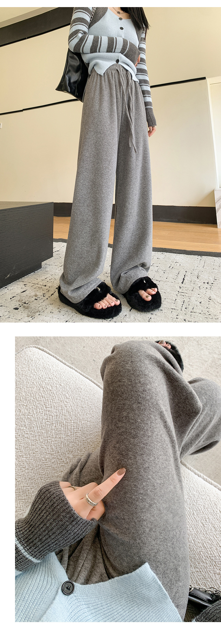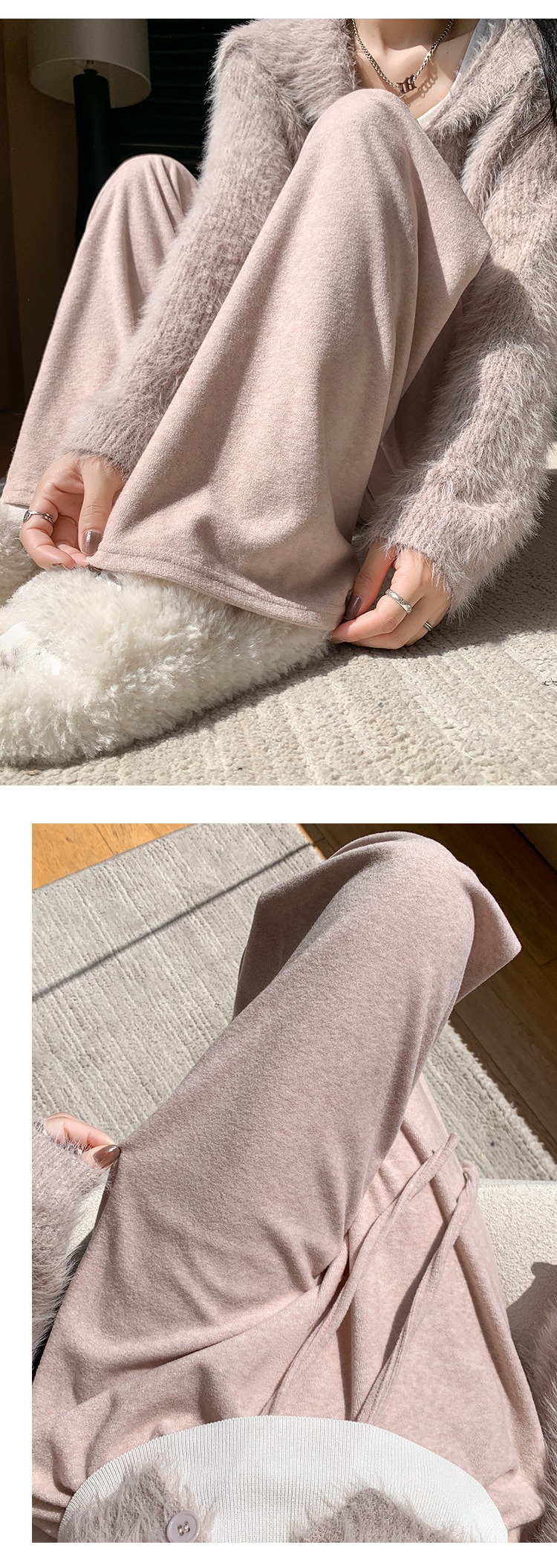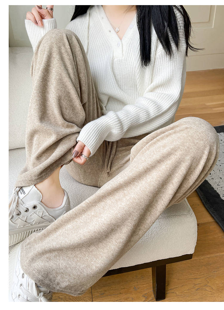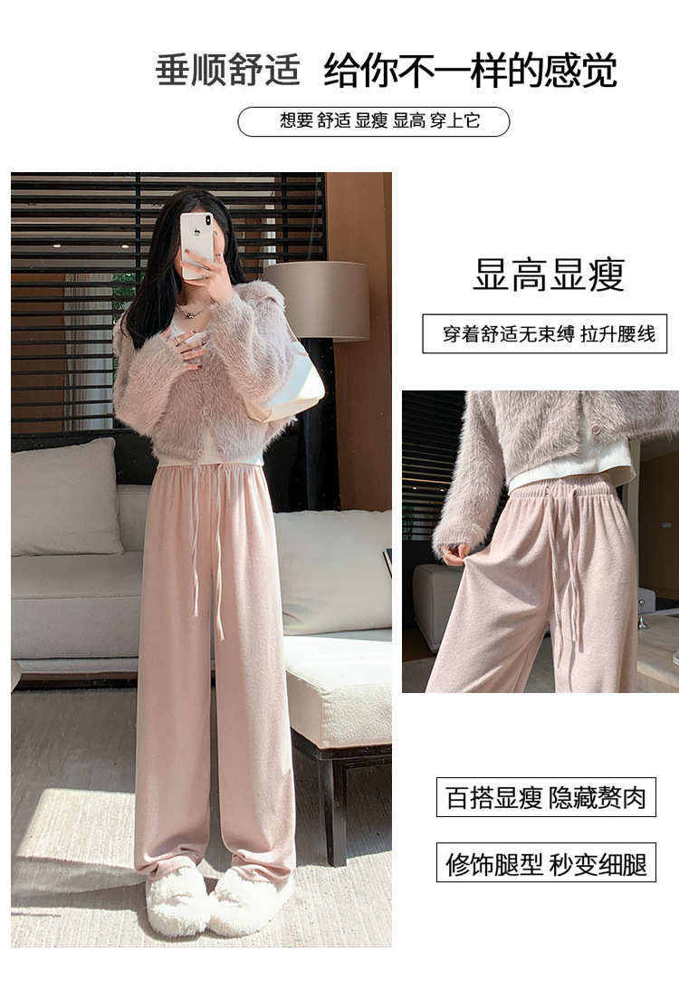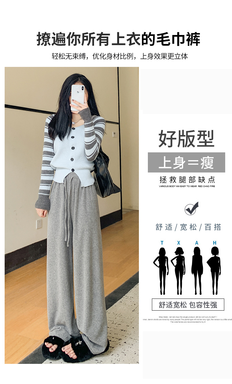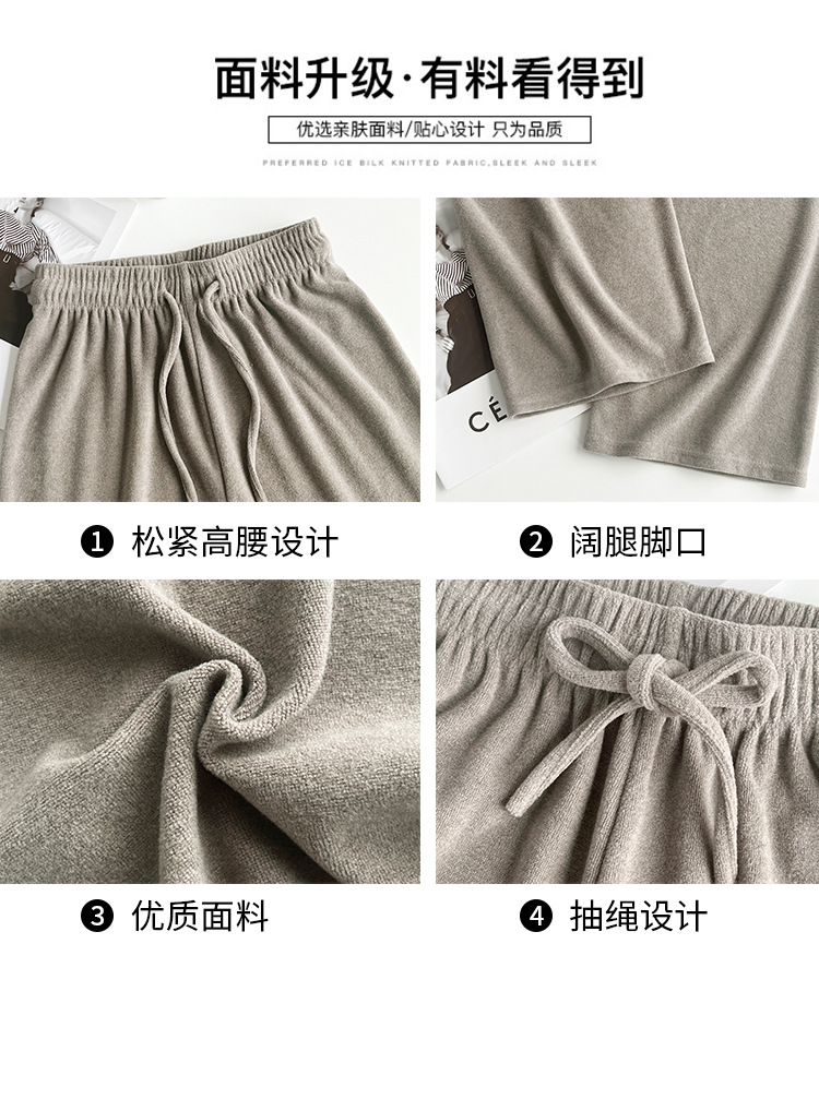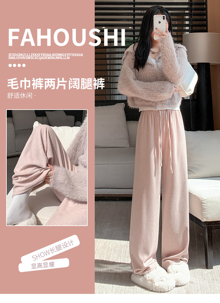 【柔软毛巾贴肤,温暖宽松阔腿】毛巾阔腿裤女加绒裤子,宽松高腰设计,慵懒休闲裤舒适又有型!垂感直筒拖地长裤,时尚百搭,带来梦幻般的穿搭体验。给你暖冬的同时,更展现你的流行态度!