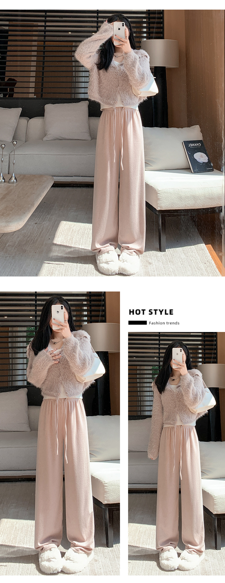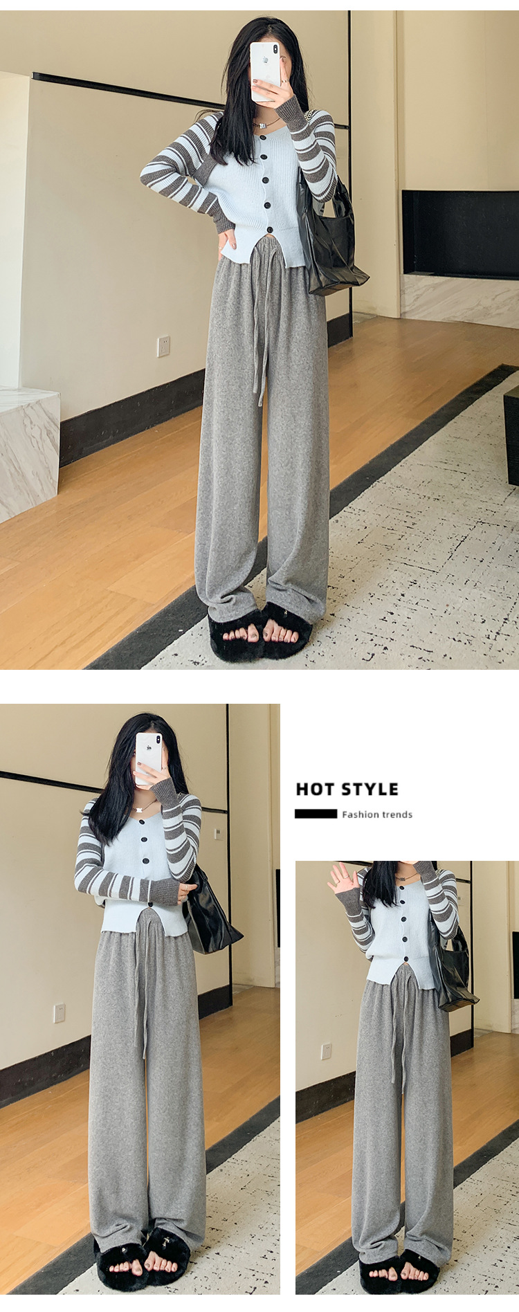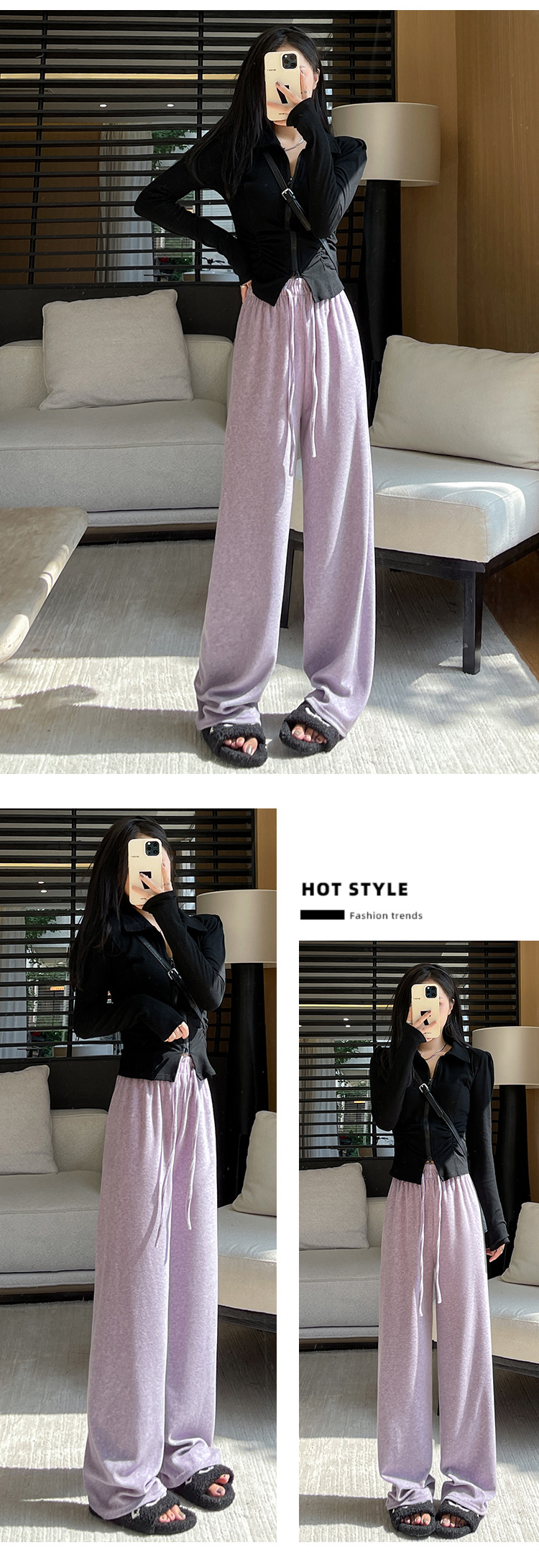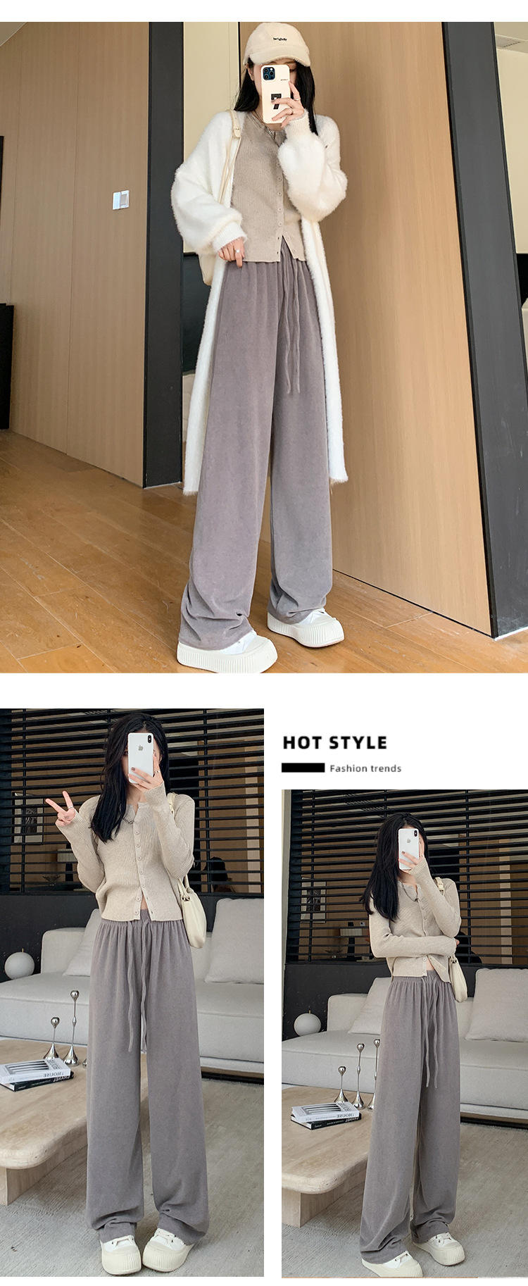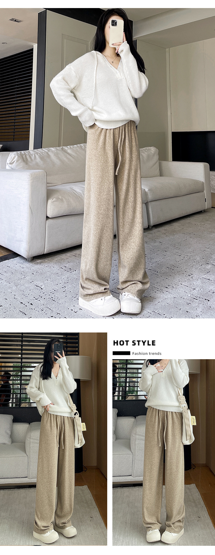 【柔软毛巾贴肤,温暖宽松阔腿】毛巾阔腿裤女加绒裤子,宽松高腰设计,慵懒休闲裤舒适又有型!垂感直筒拖地长裤,时尚百搭,带来梦幻般的穿搭体验。给你暖冬的同时,更展现你的流行态度!