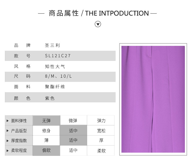 圣三利女装春夏款微喇开叉西装裤SL121C27