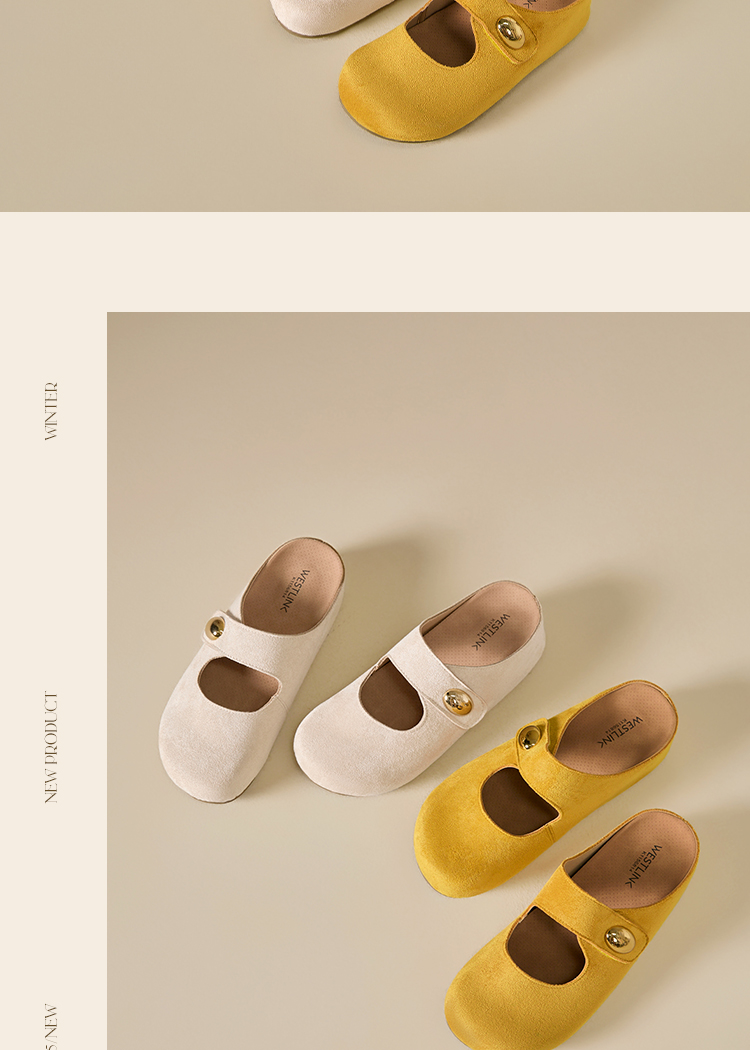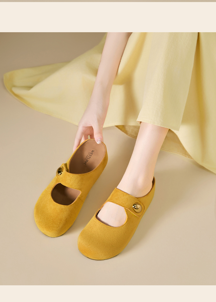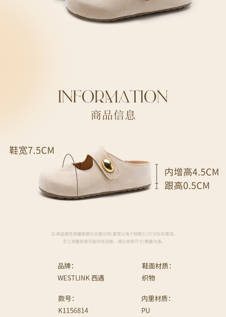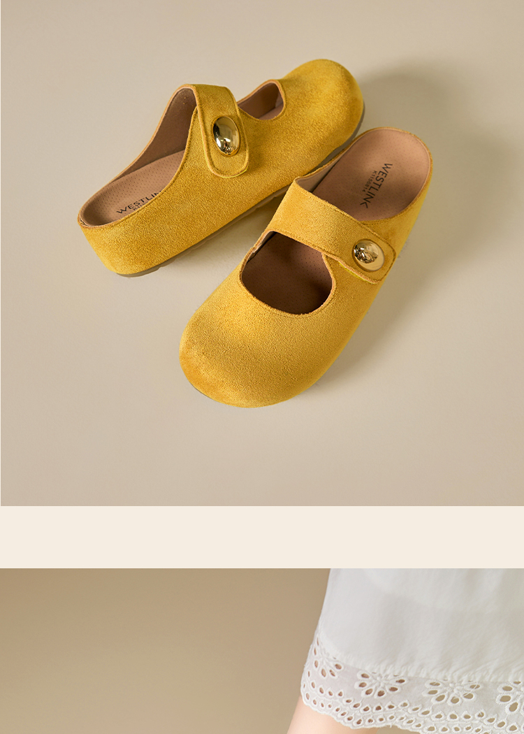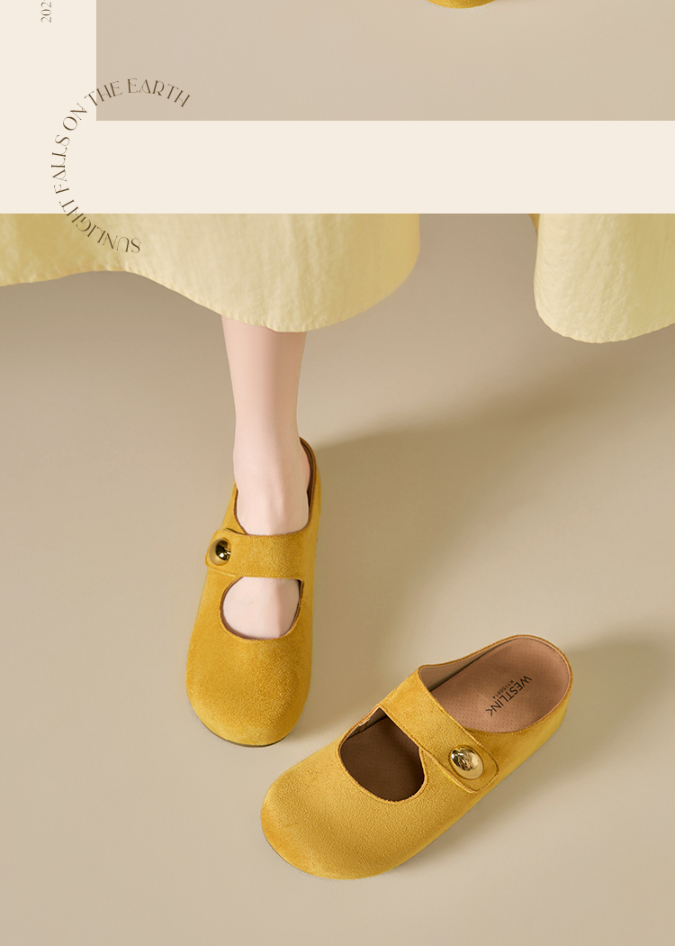 西遇厚底勃肯鞋女新款丑萌黄色玛丽珍鞋内增高包头半拖鞋K1156814
