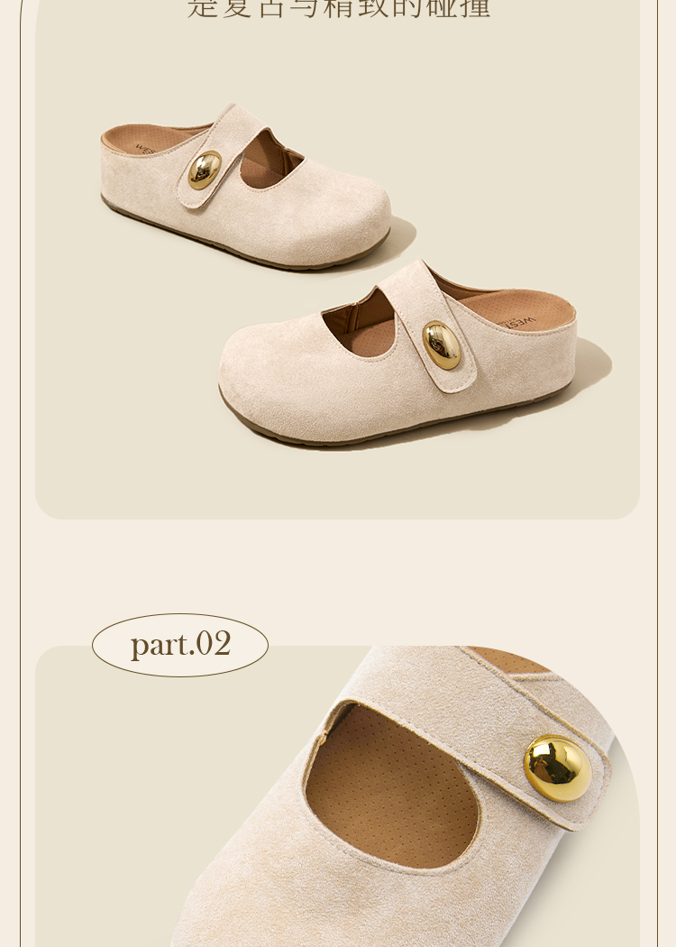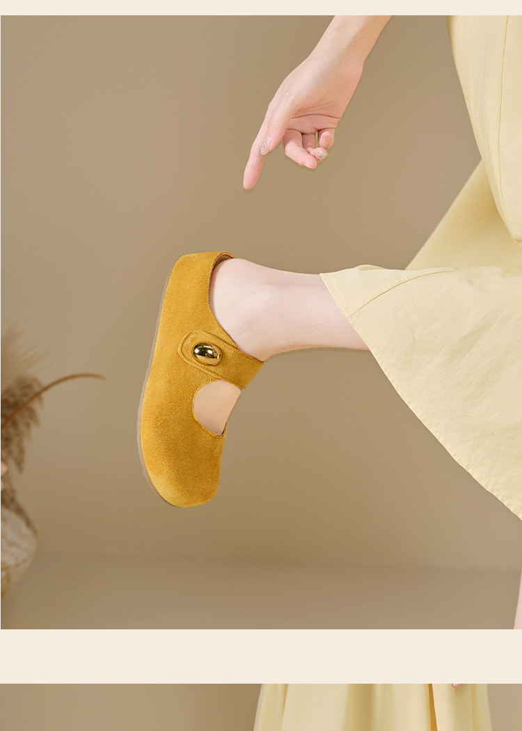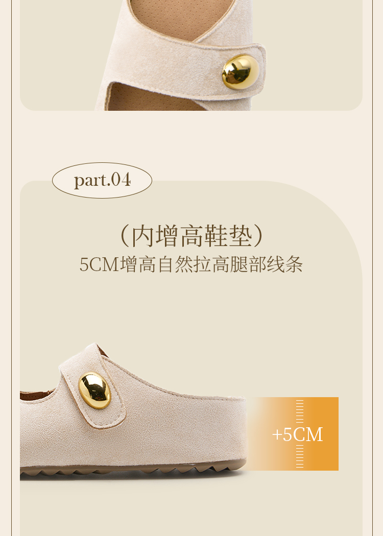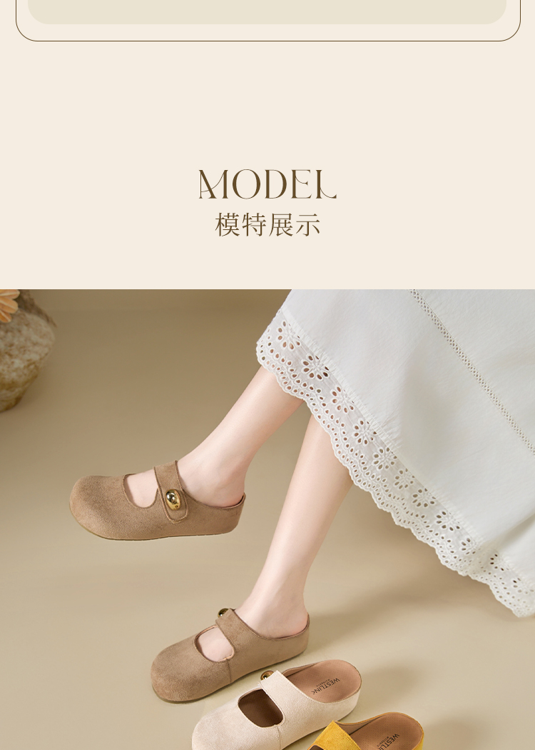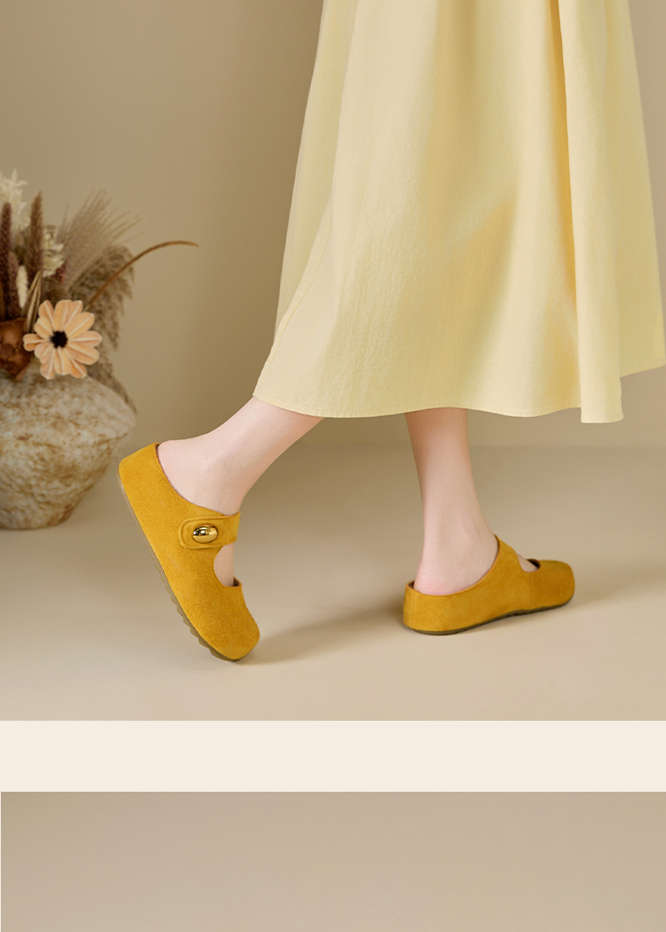 西遇厚底勃肯鞋女新款丑萌黄色玛丽珍鞋内增高包头半拖鞋K1156814