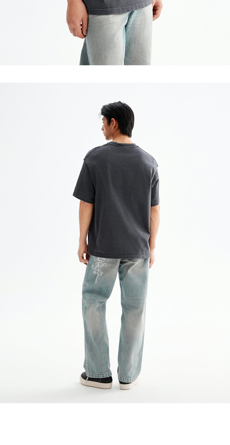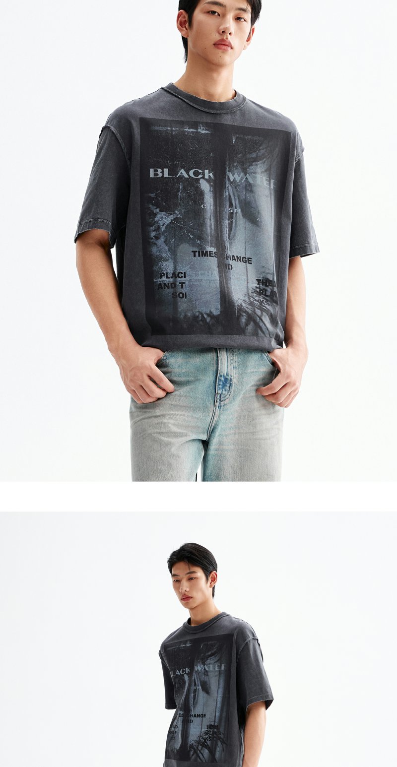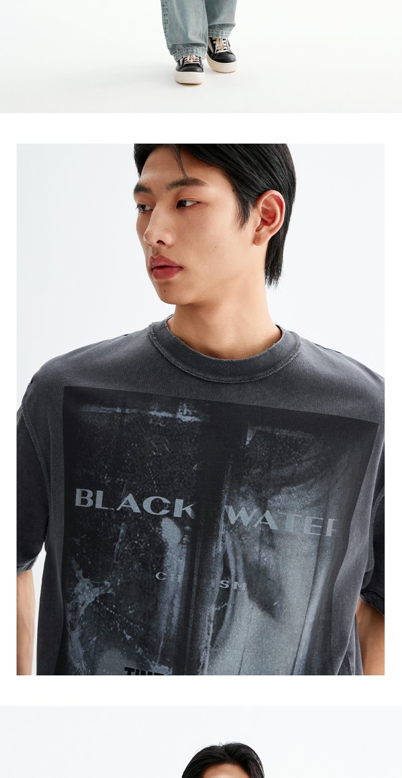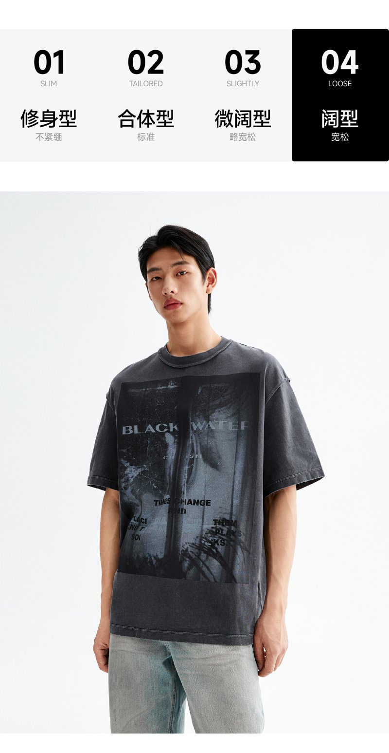 CHINISM赤尘 喷墨印花水洗短袖T恤男夏季美式复古男士宽松半袖 商品图4