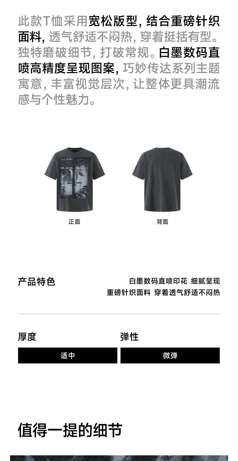 CHINISM赤尘 喷墨印花水洗短袖T恤男夏季美式复古男士宽松半袖 商品图2