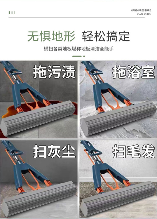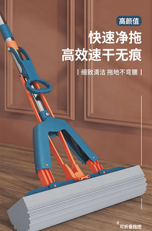 【自营】好司净 对折式胶棉拖把 强力吸水 蓝色 1拖2胶头