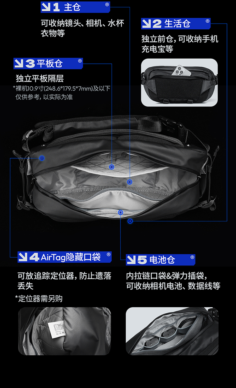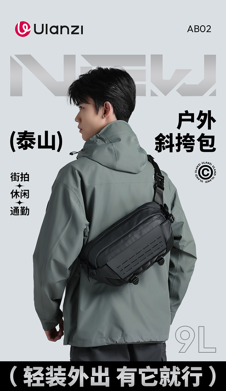 Ulanzi优篮子AB02泰山户外斜挎包摄影相机包潮流骑行通勤斜挎包男士机能单肩邮差包防水大容量电脑包