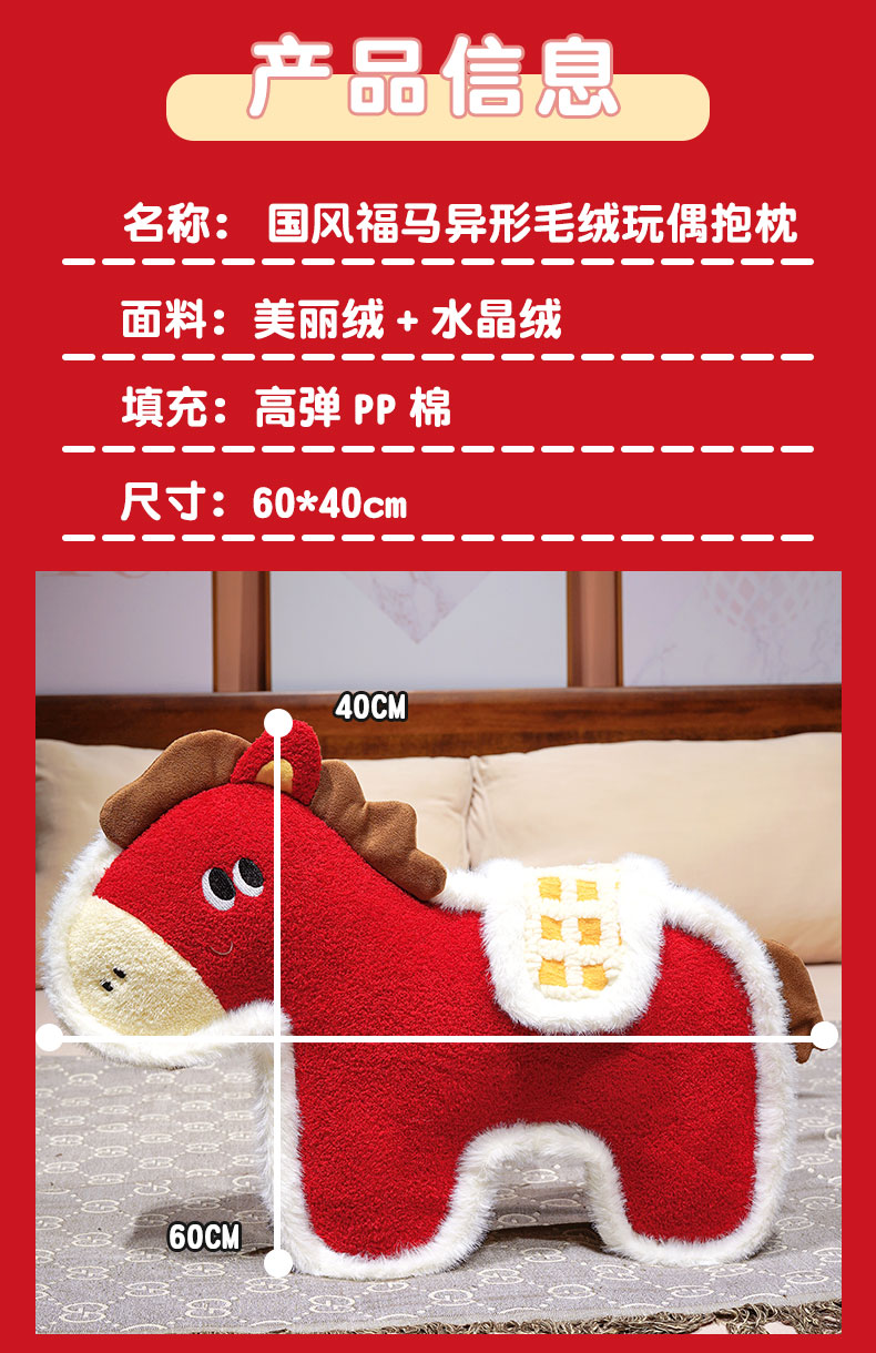 【品牌直发】加倍生活 国风福马异形毛绒玩偶抱枕 4色可选 马年限定系列 春节焕新季