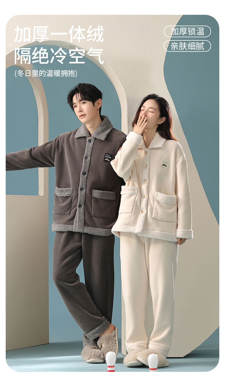 【米菲一体绒】自然醒「初见心动」情侣睡衣冬季加厚保暖家居服套装可外穿JLM