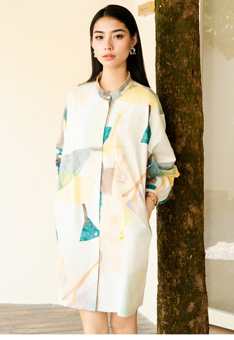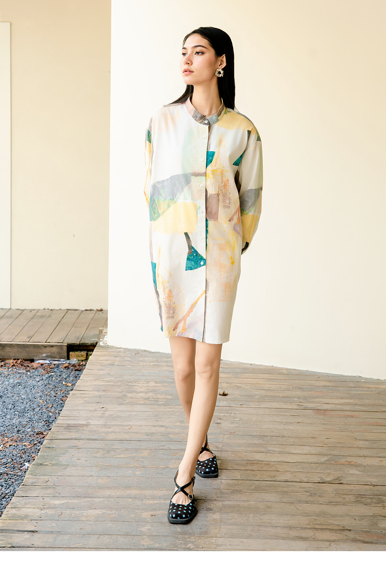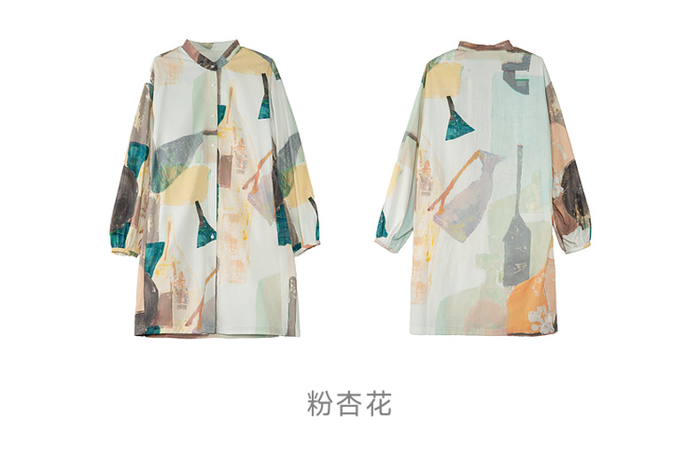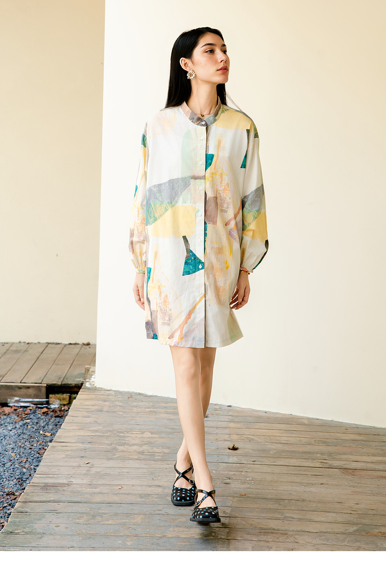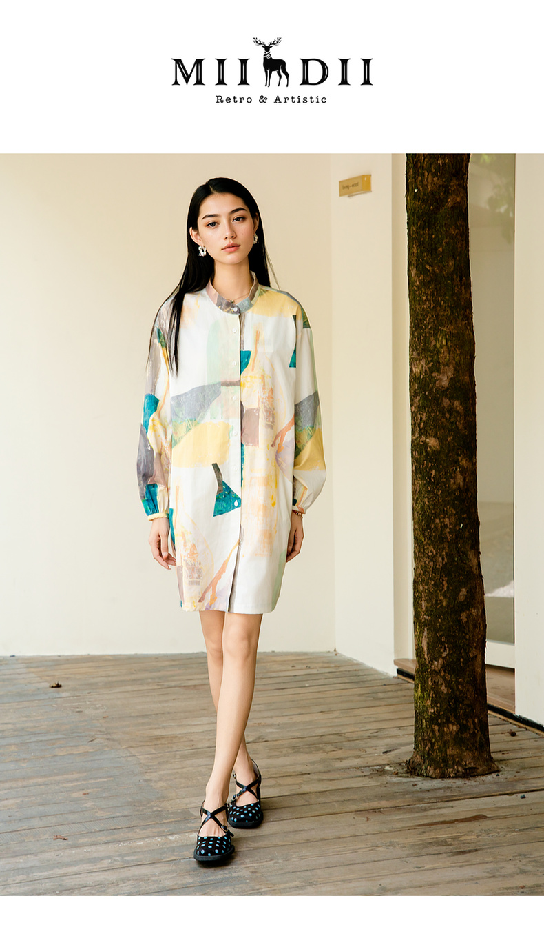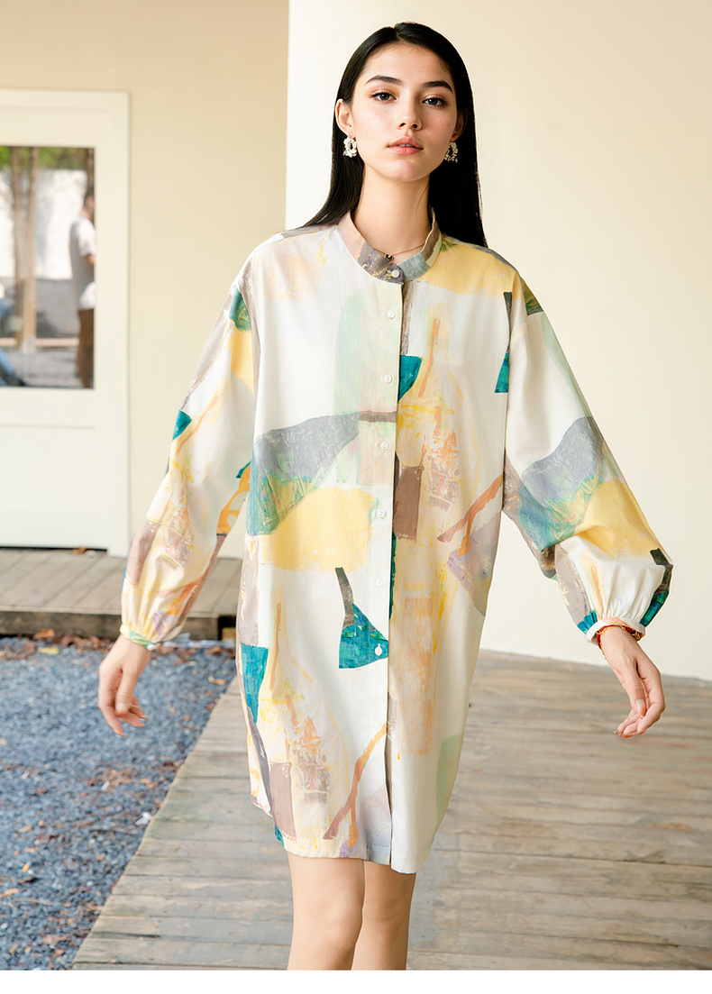 谜底花色连衣裙长袖2025秋款复古风抽象印花宽松衬衫257ML7816