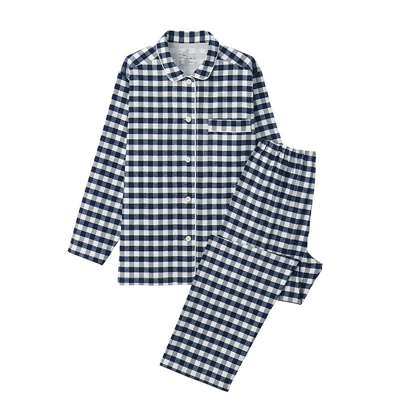 日式无印西川法兰绒家居服良品全棉家居服格纹格子情侣睡衣冬加厚 商品图0