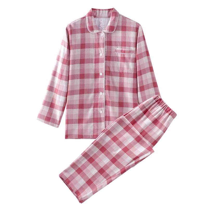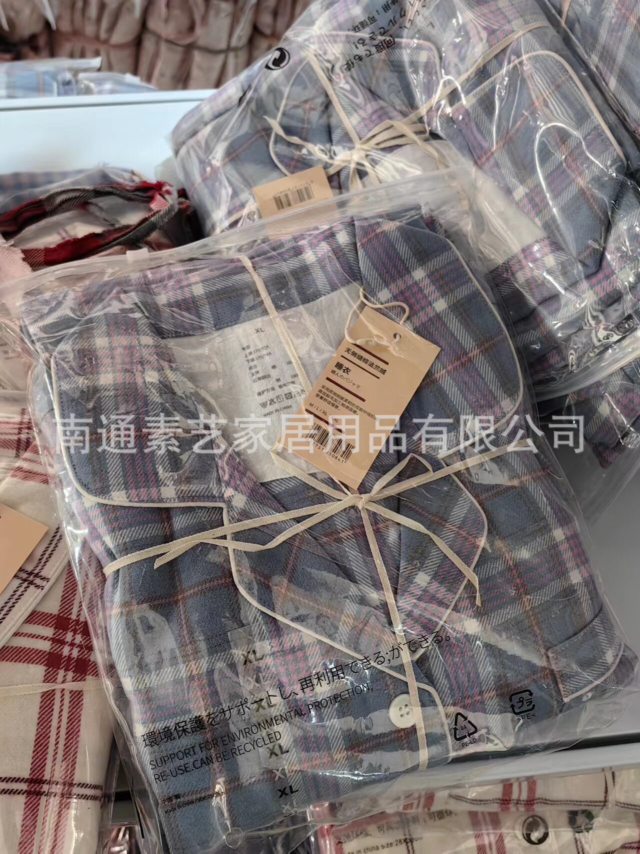 日式无印西川法兰绒家居服良品全棉家居服格纹格子情侣睡衣冬加厚