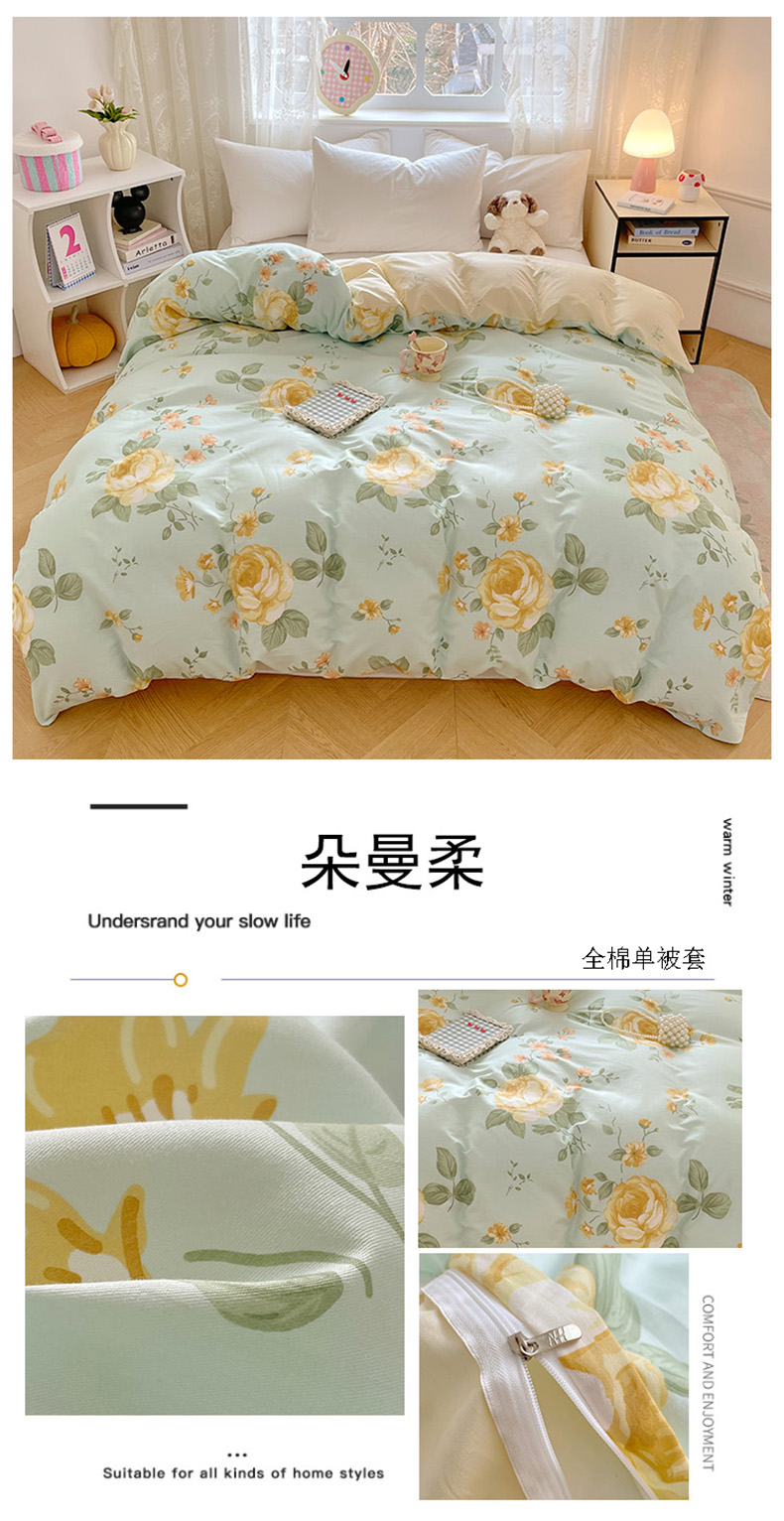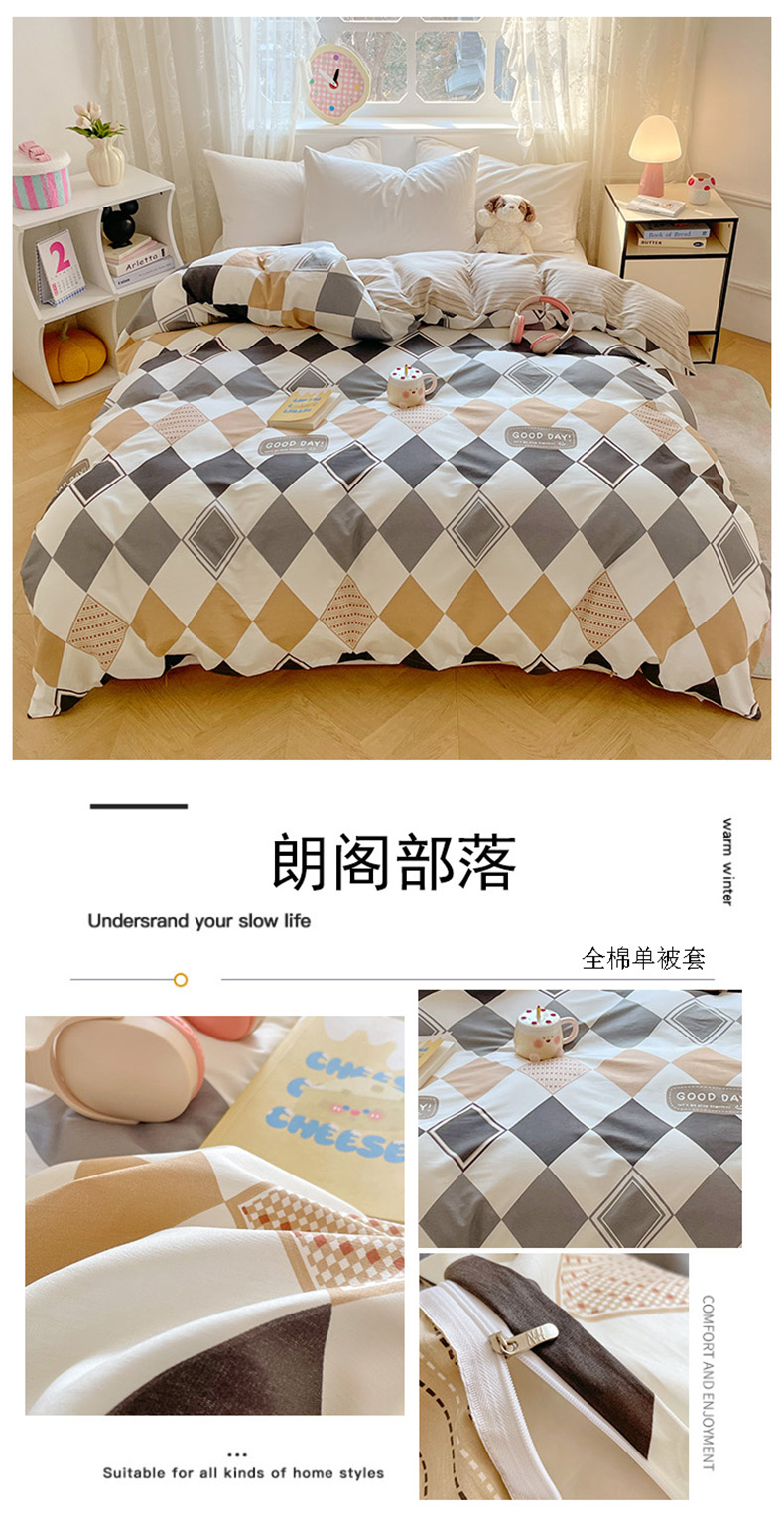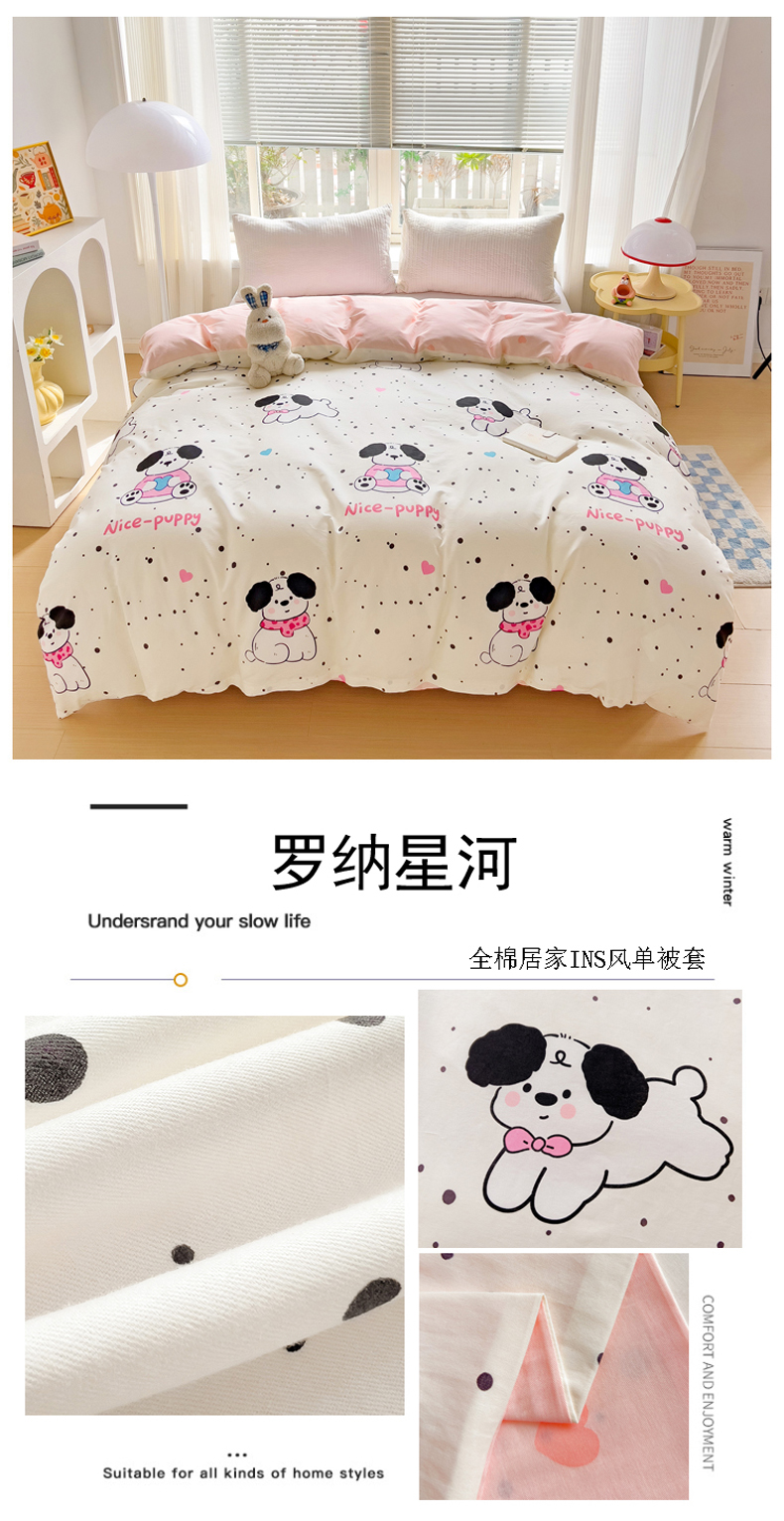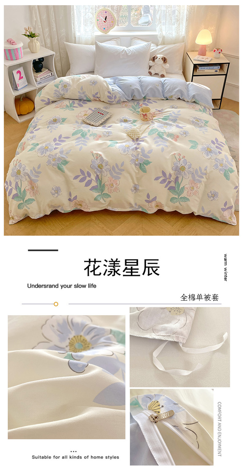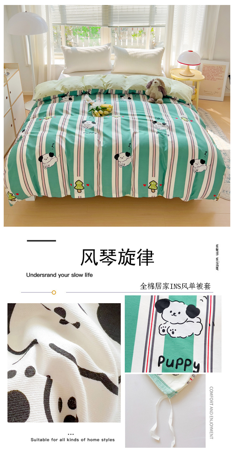 自然醒居家ins风纯棉被套单件100全棉床单床笠床裙150x200单人儿童卡通1.5被罩200x230被单枕套NH151