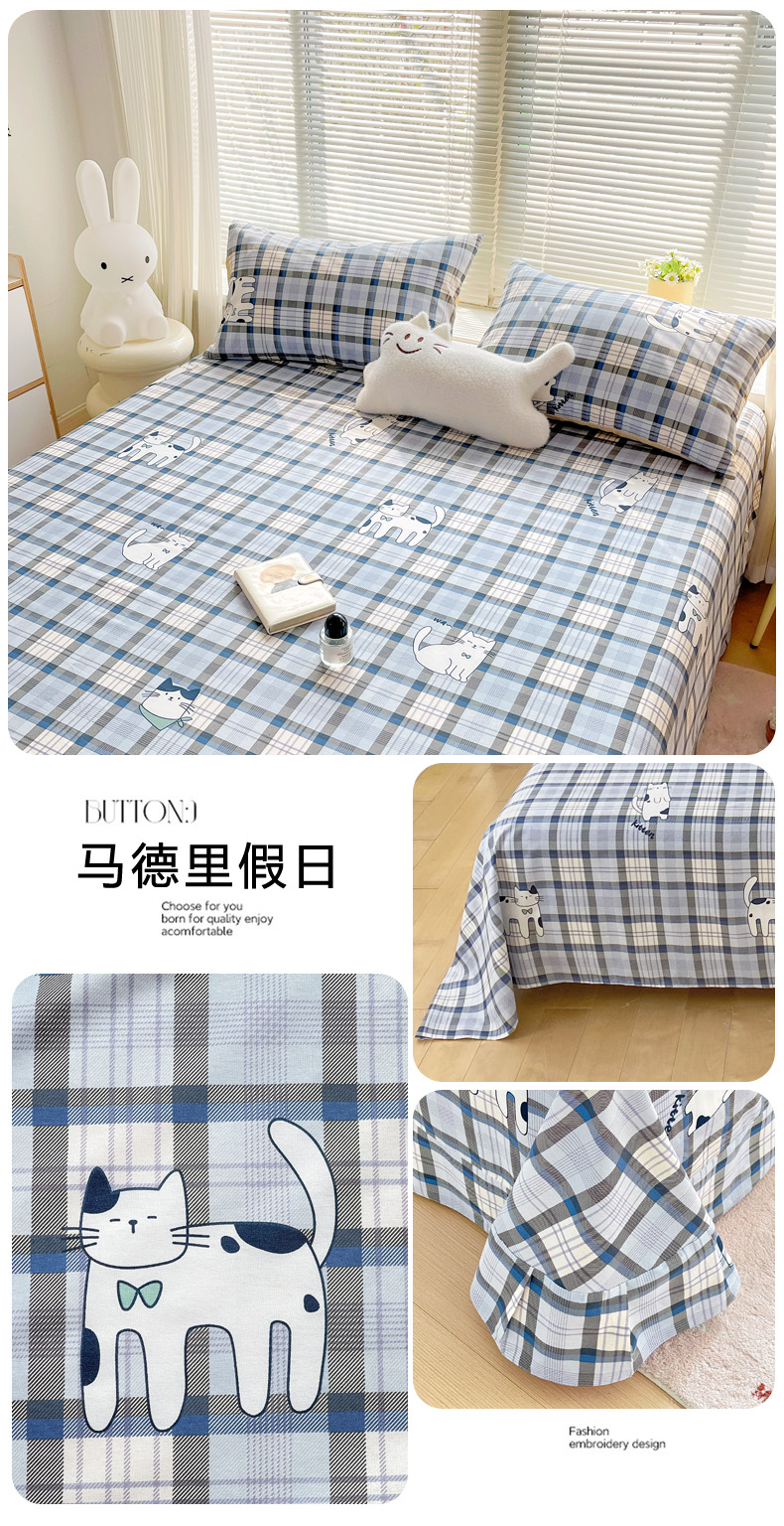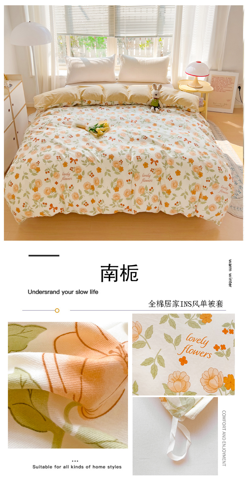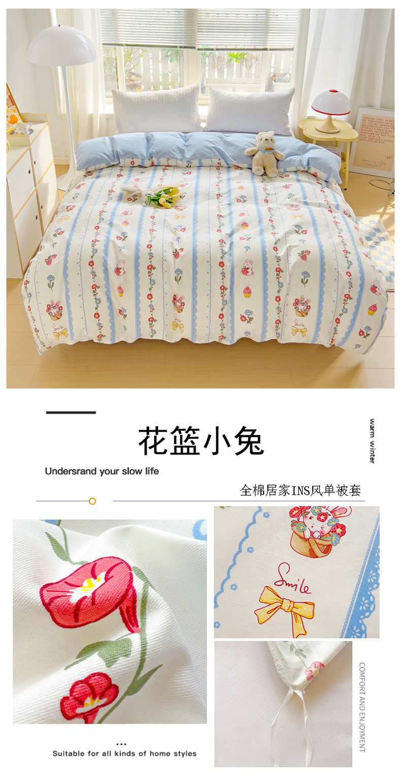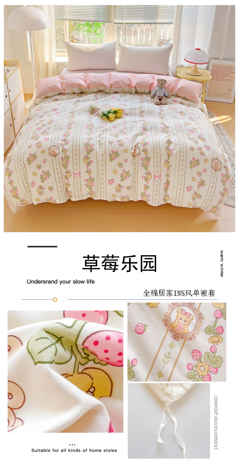 自然醒居家ins风纯棉被套单件100全棉床单床笠床裙150x200单人儿童卡通1.5被罩200x230被单枕套NH151